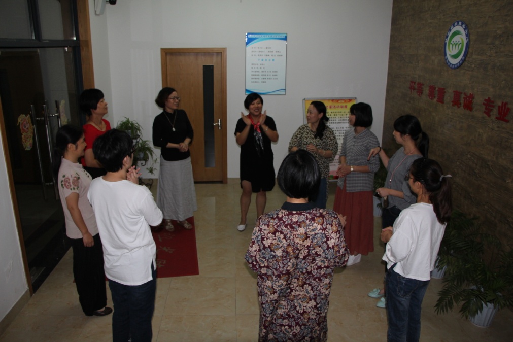 这次活动特邀了乔梁老师和新街桥社区的巴卫珍书记。陈艳红老师主持此次活动,先由戴海香老师带领大家做了团体小游戏,再由巴书记先跟大家介绍出访美国,学习的社区工作的先进经验,而后吴文英老师、孙铮老师、潘雪英老师先跟大家分享了参加“护航G20服务队助力社区心理矫正”活动的收获,最后乔梁老师跟大家分享了他这么多年来的心理工作,大家还一起探讨了分队今后的发展方向。