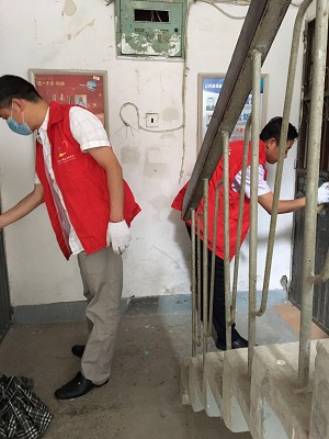 2017年6月5日,湖州红十字心理健康志愿服务队1名志愿者组织龙泉、飞英街道社区矫正人员在湖州市市陌二社区和白渔潭小区举行社区服务活动。