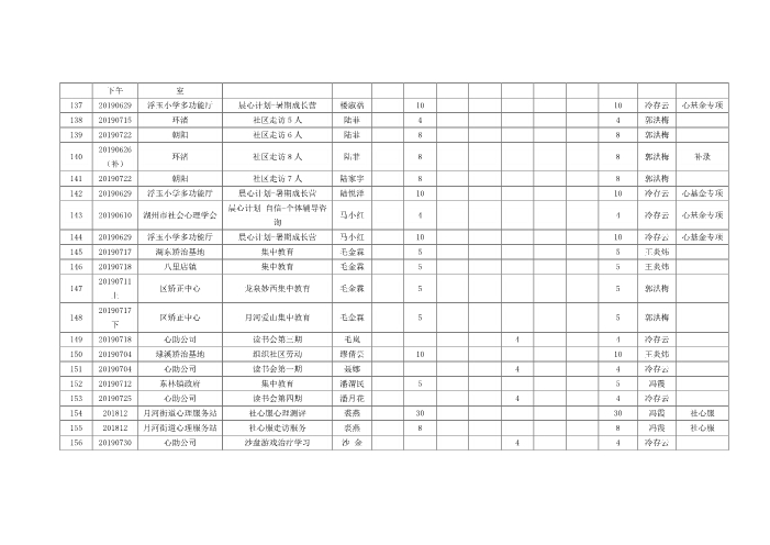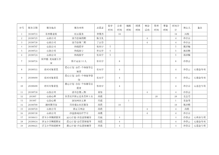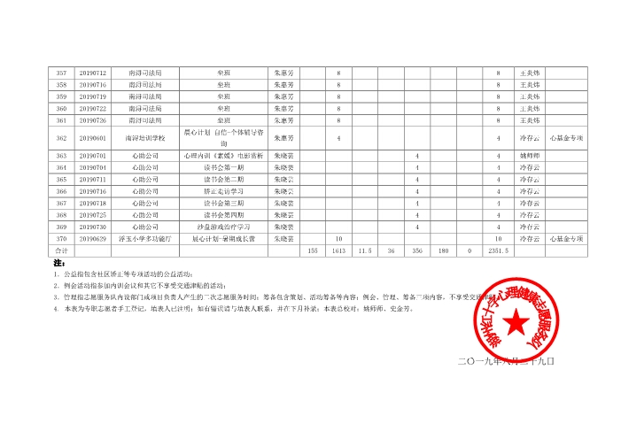 2019年7月湖州红十字心理健康志愿服务队榜单