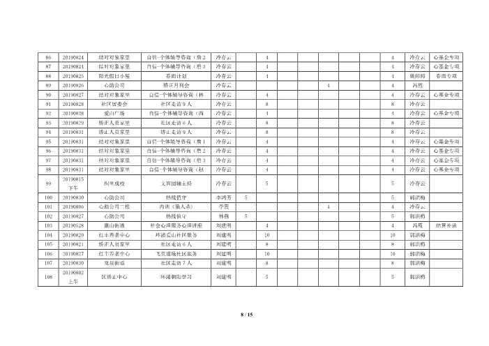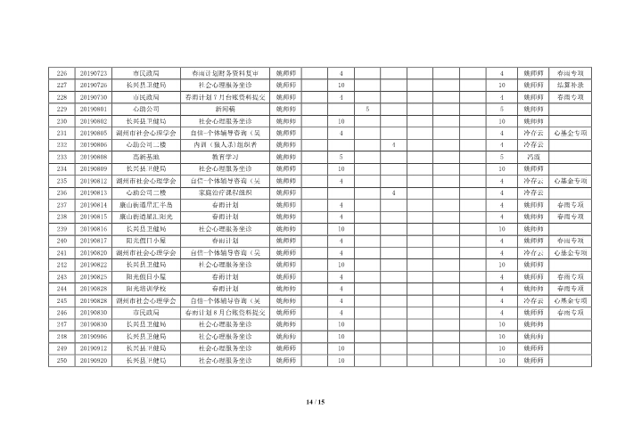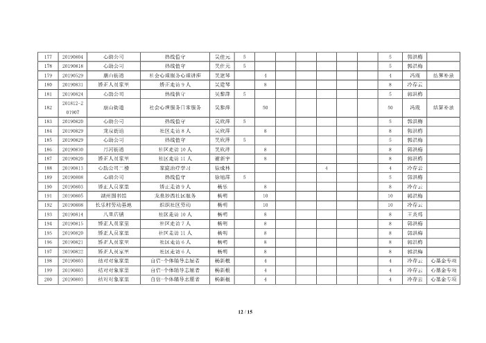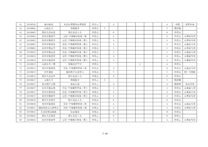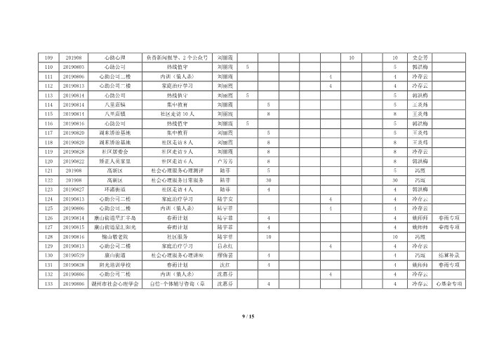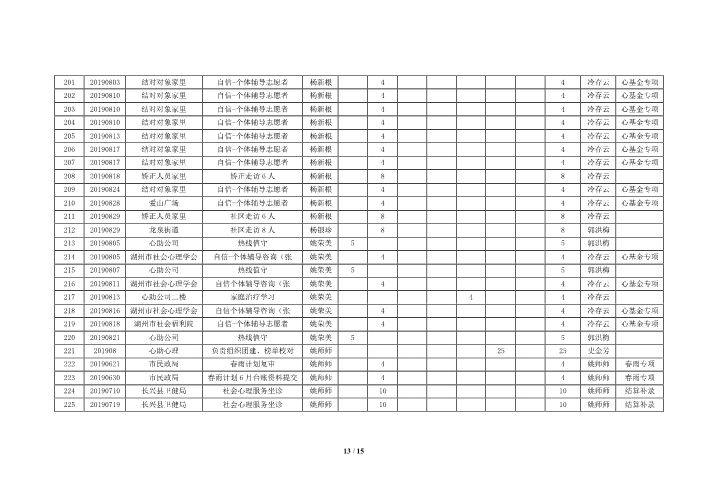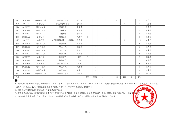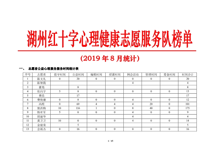 2019年8月湖州红十字心理健康志愿服务队榜单
