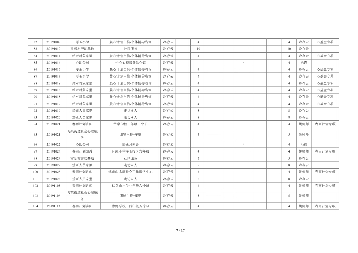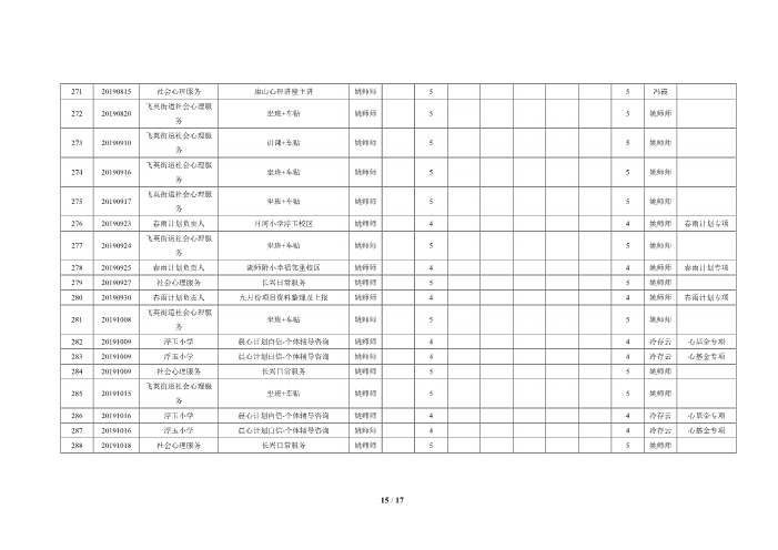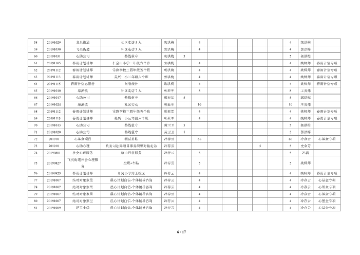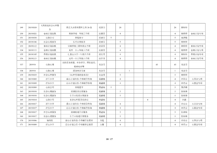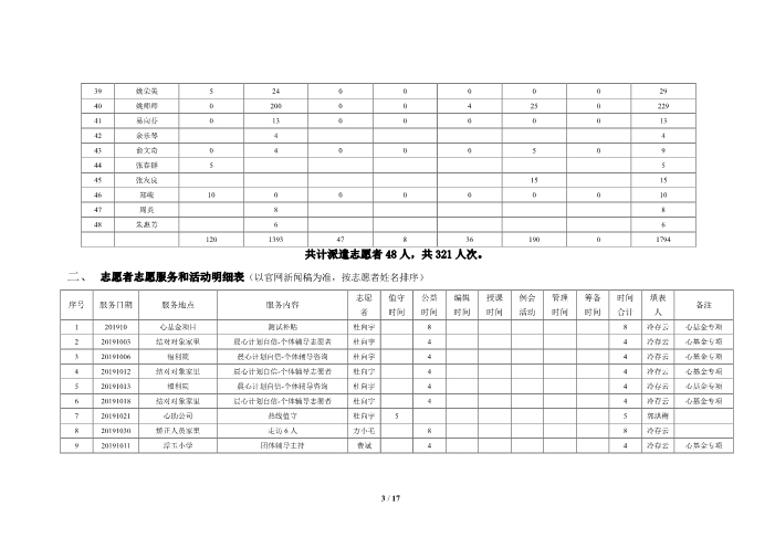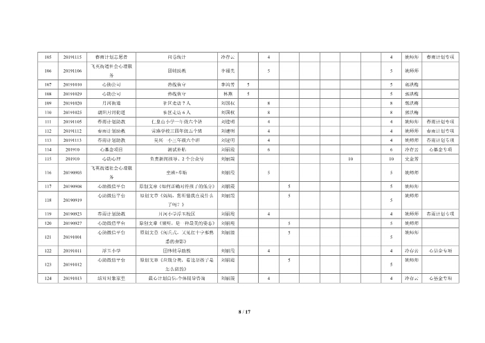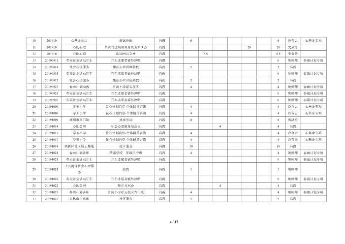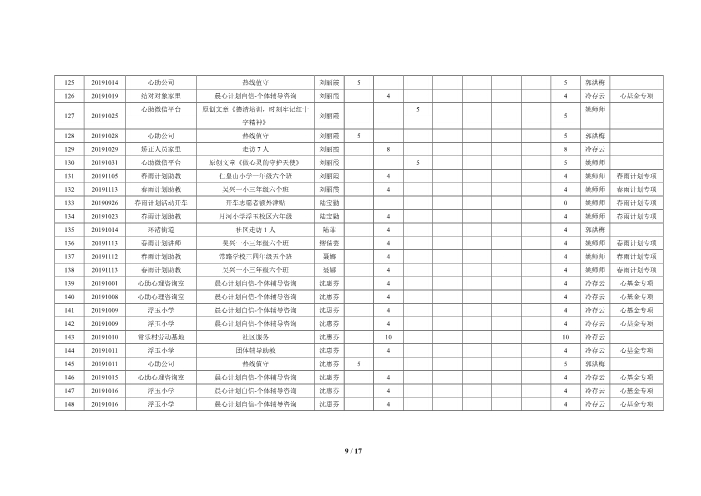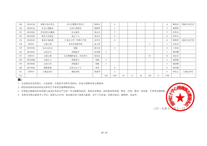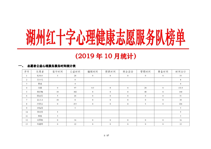 2019年10月湖州红十字心理健康志愿服务队榜单
