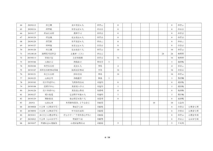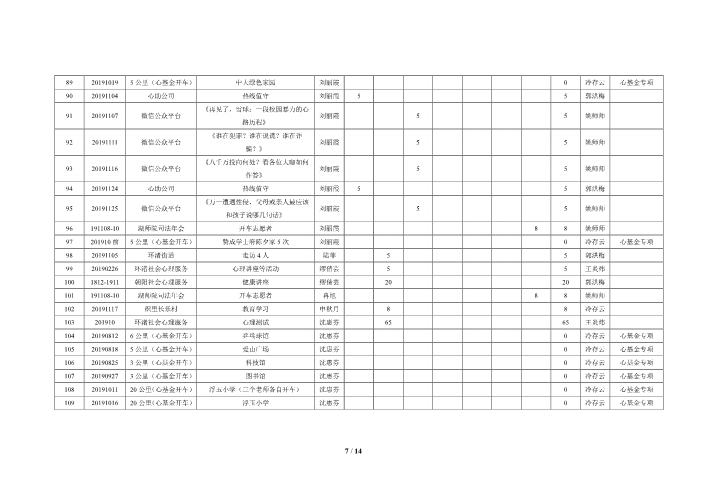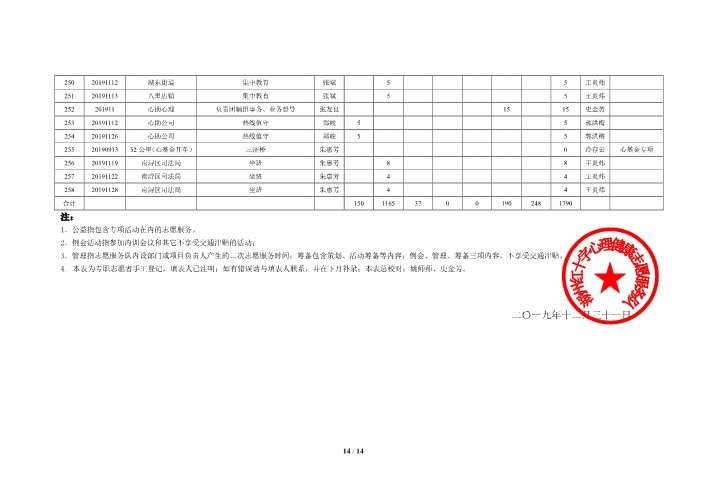 2019年11月湖州红十字心理健康志愿服务队榜单