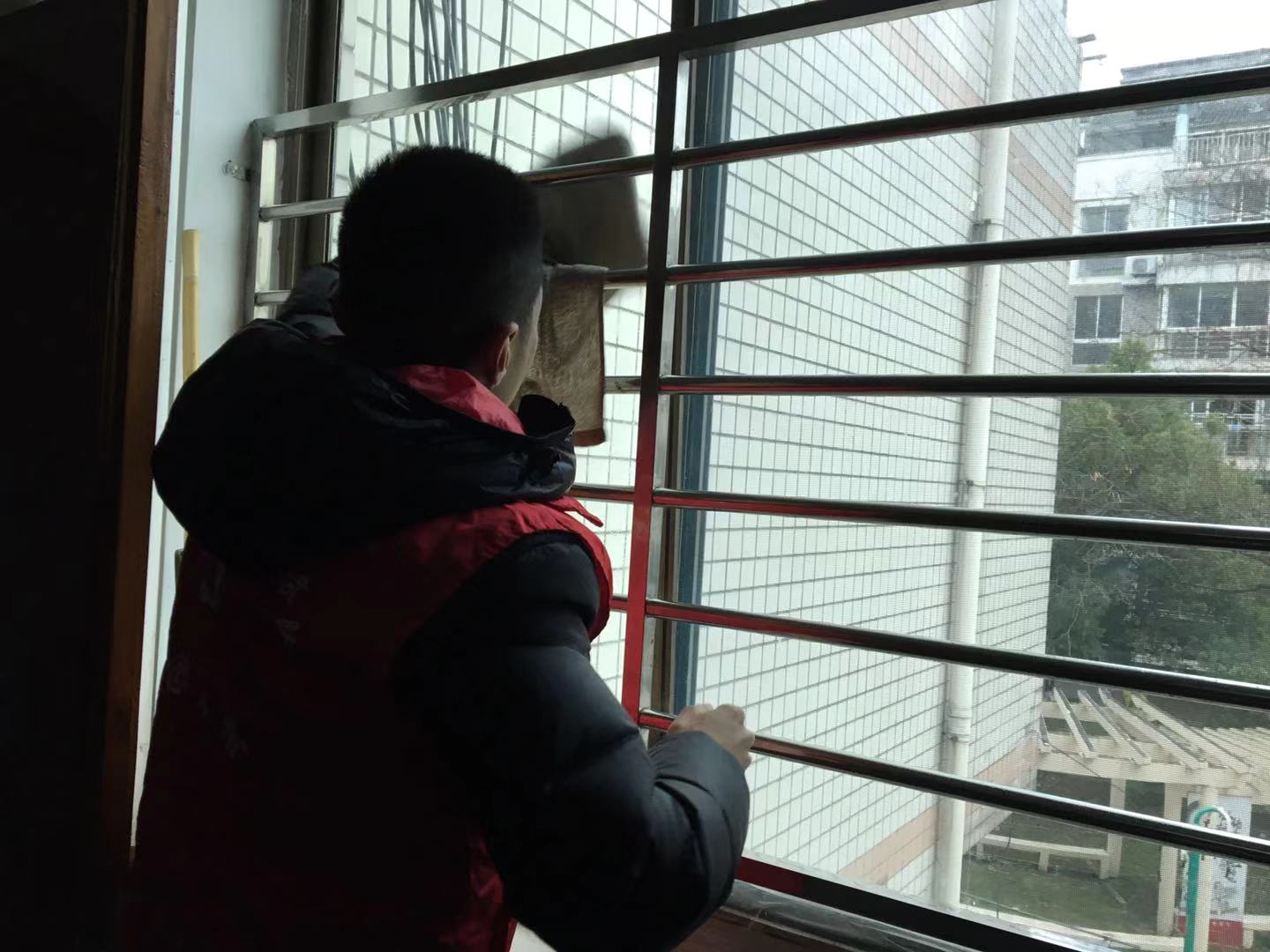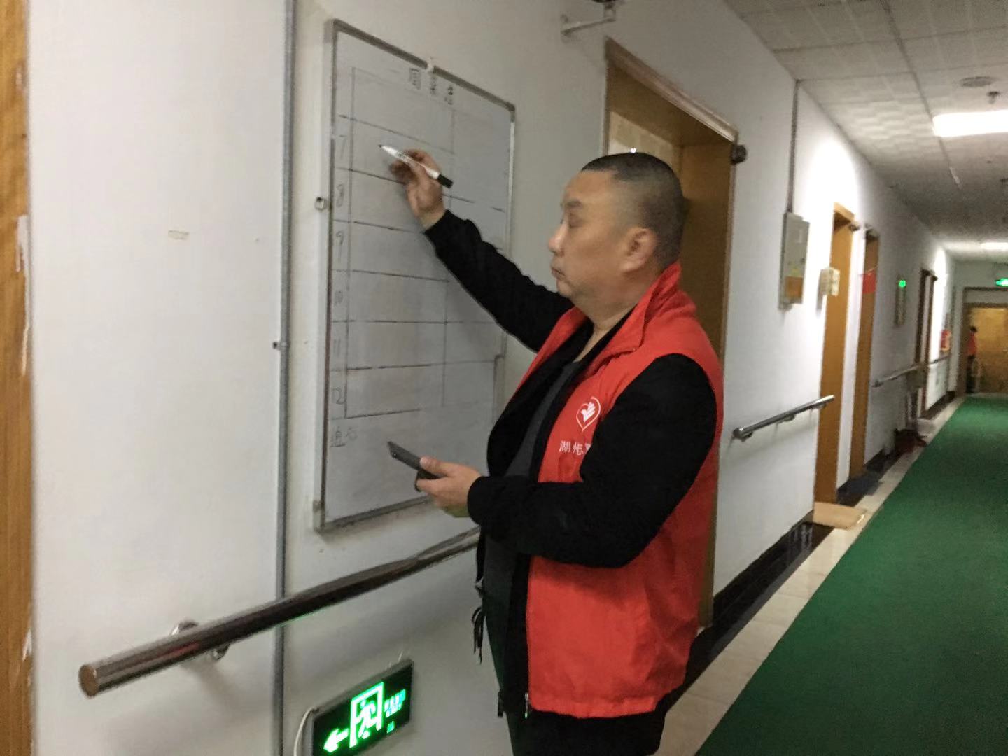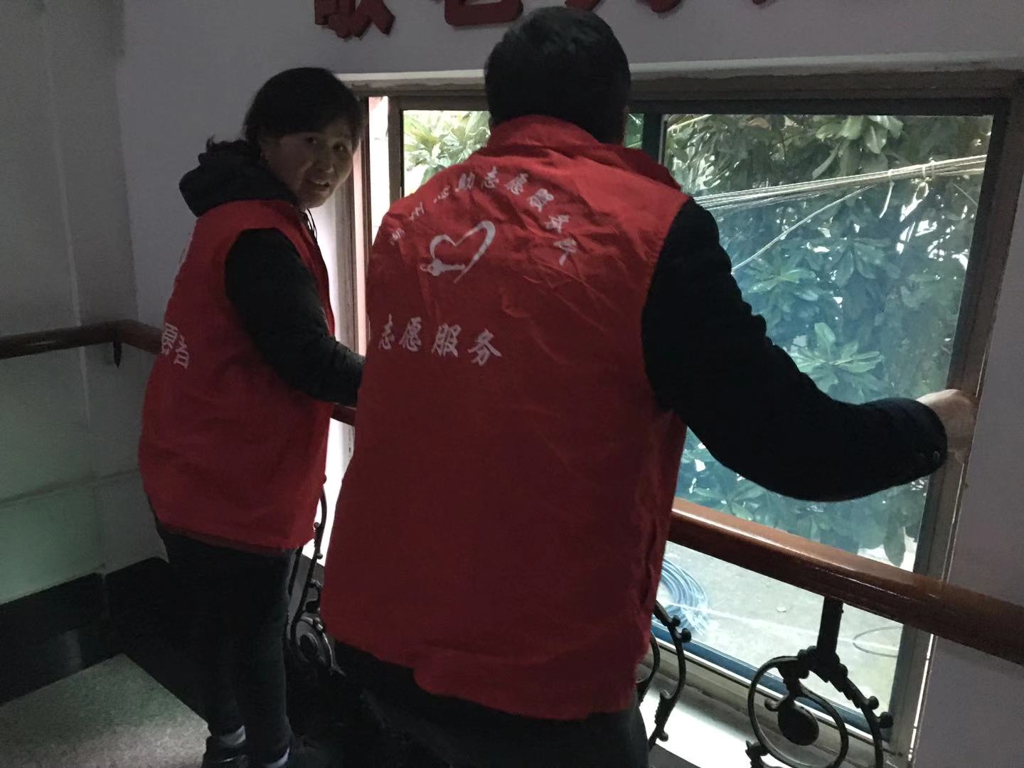 当日现场组织社区矫正人员分小组清洁了房间玻璃和纱窗,并对敬老院楼梯做了清扫。还组织了人员对电梯进行了擦拭。安排了部分具有一定文化程度的社区矫正人员誊抄了走廊的菜单板报,安排了具有水电维修技能的社区矫正人员协助敬老院工作人员对故障电灯做了修缮。