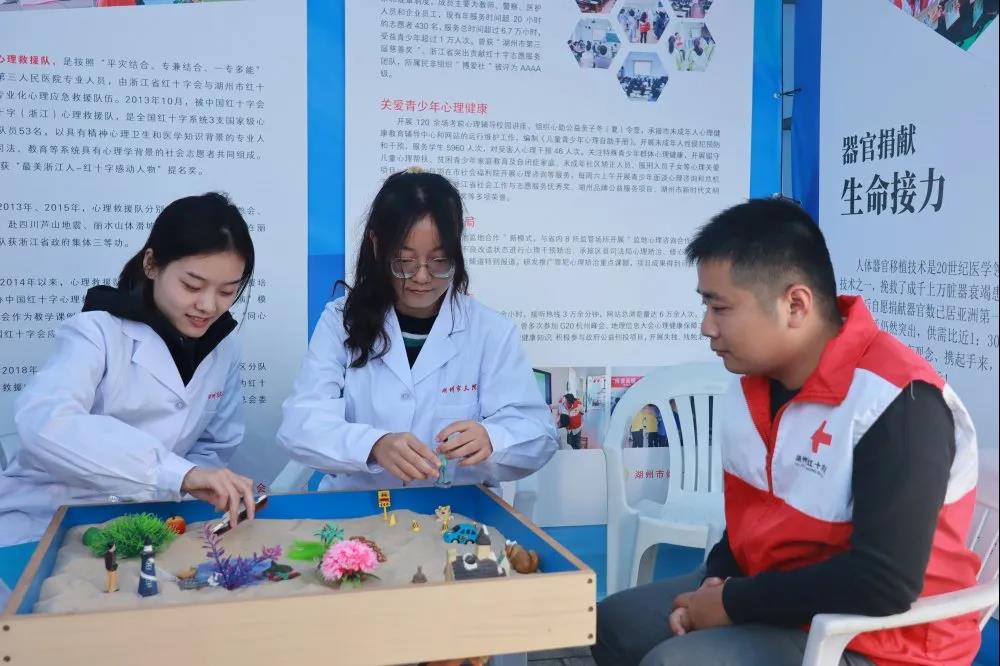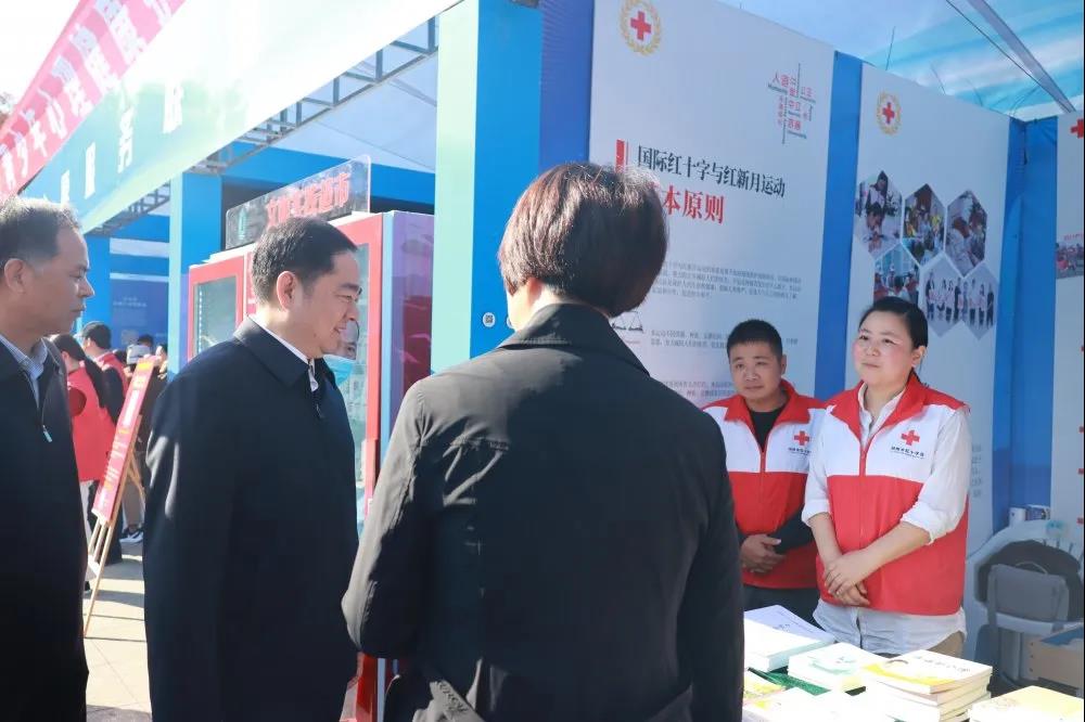 湖州红十字心理健康志愿服务队派员布展,市委书记马晓辉一行参观了我单位展区。
