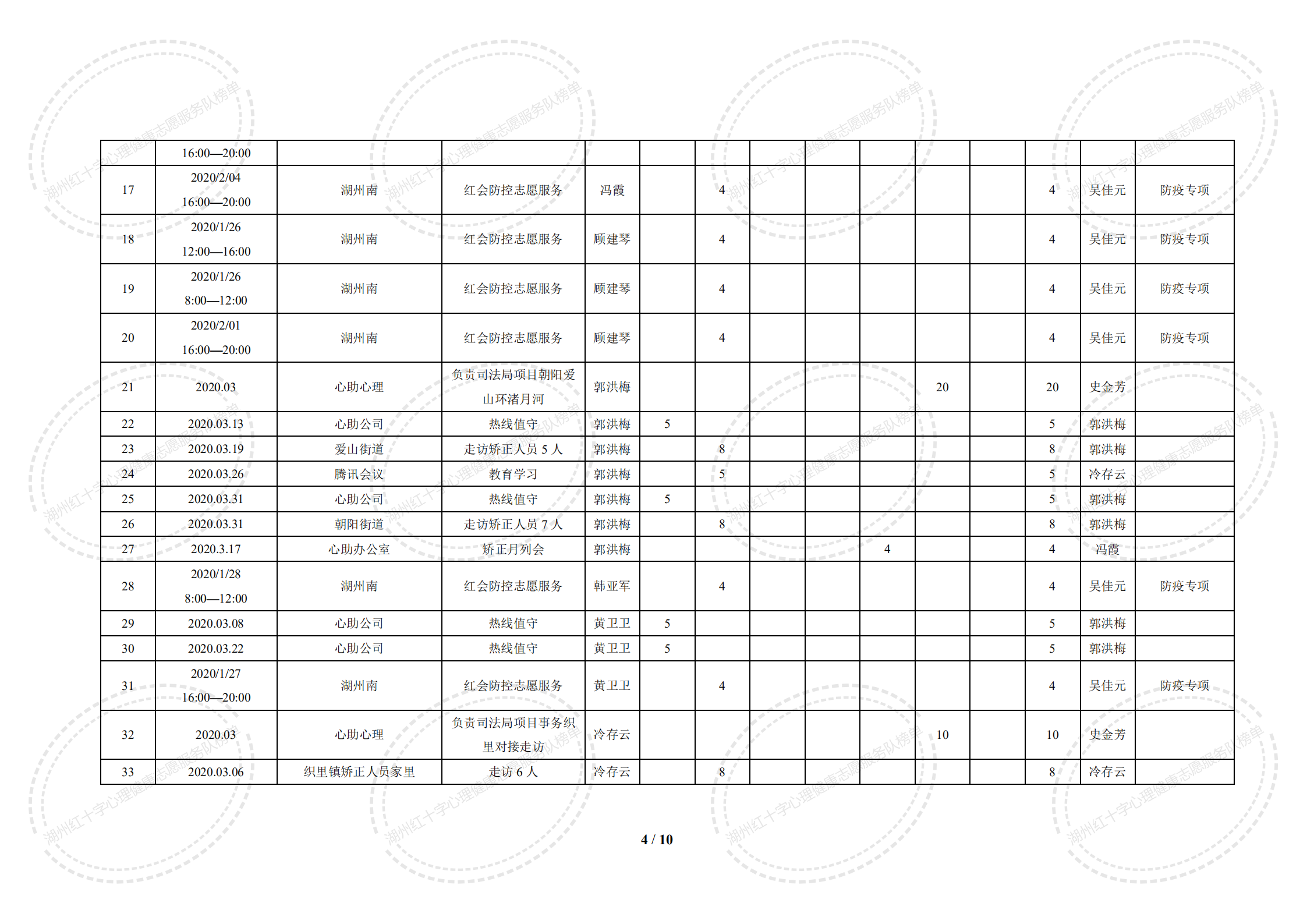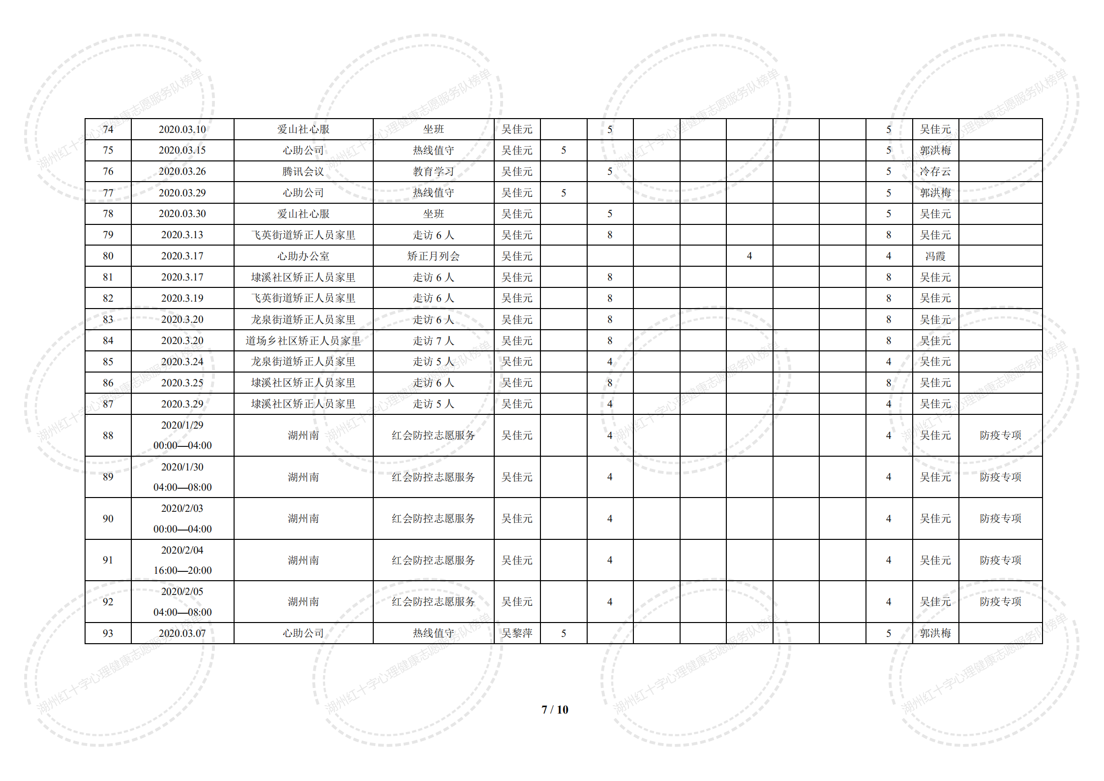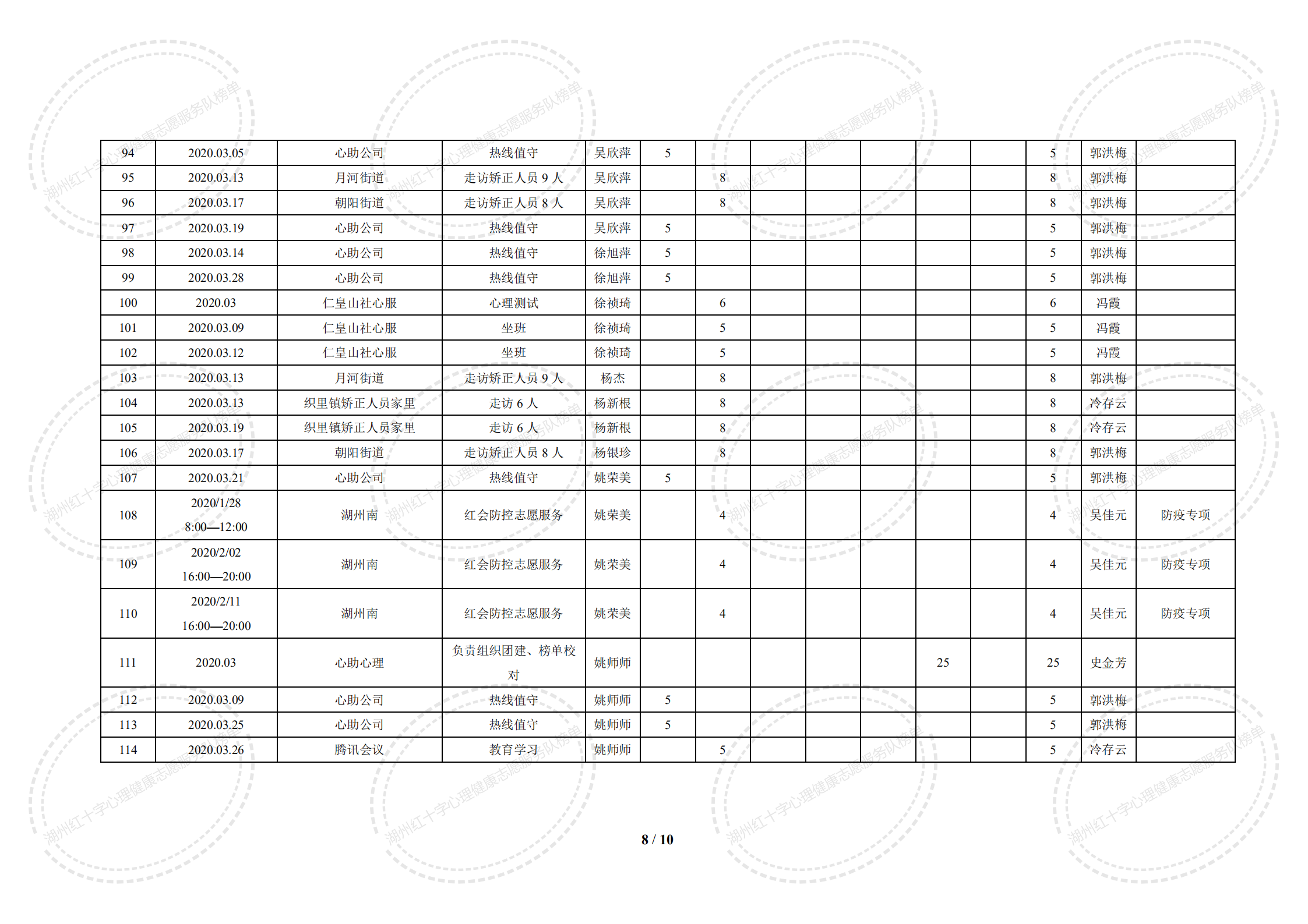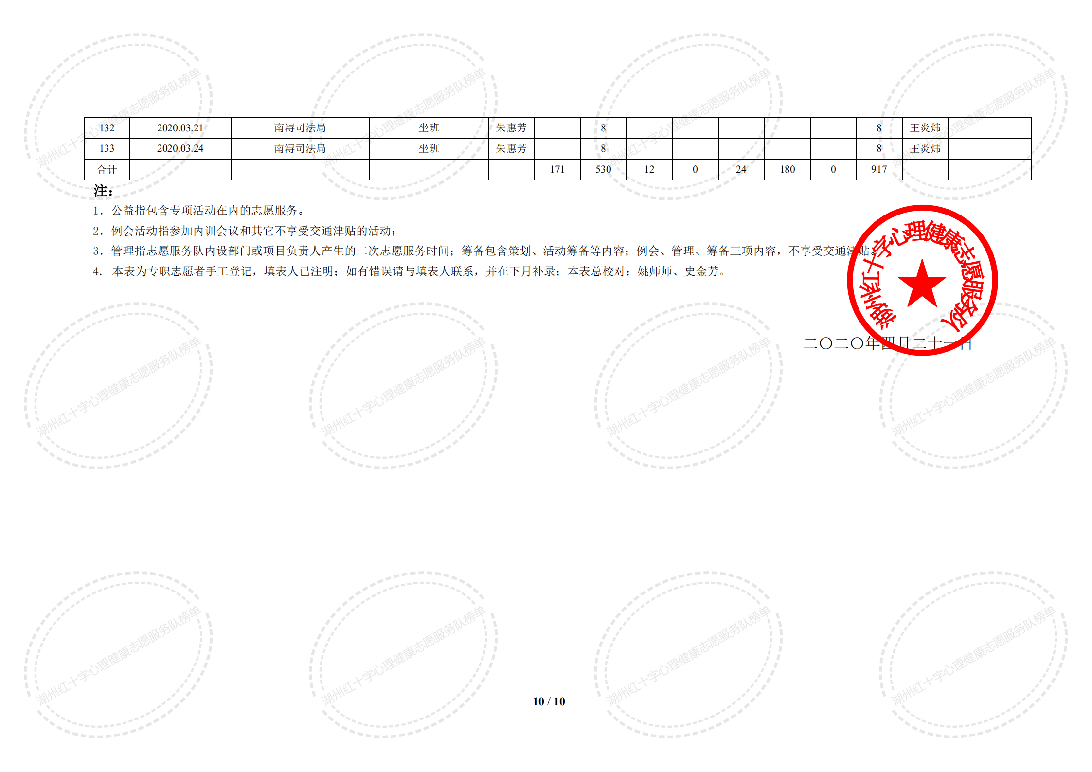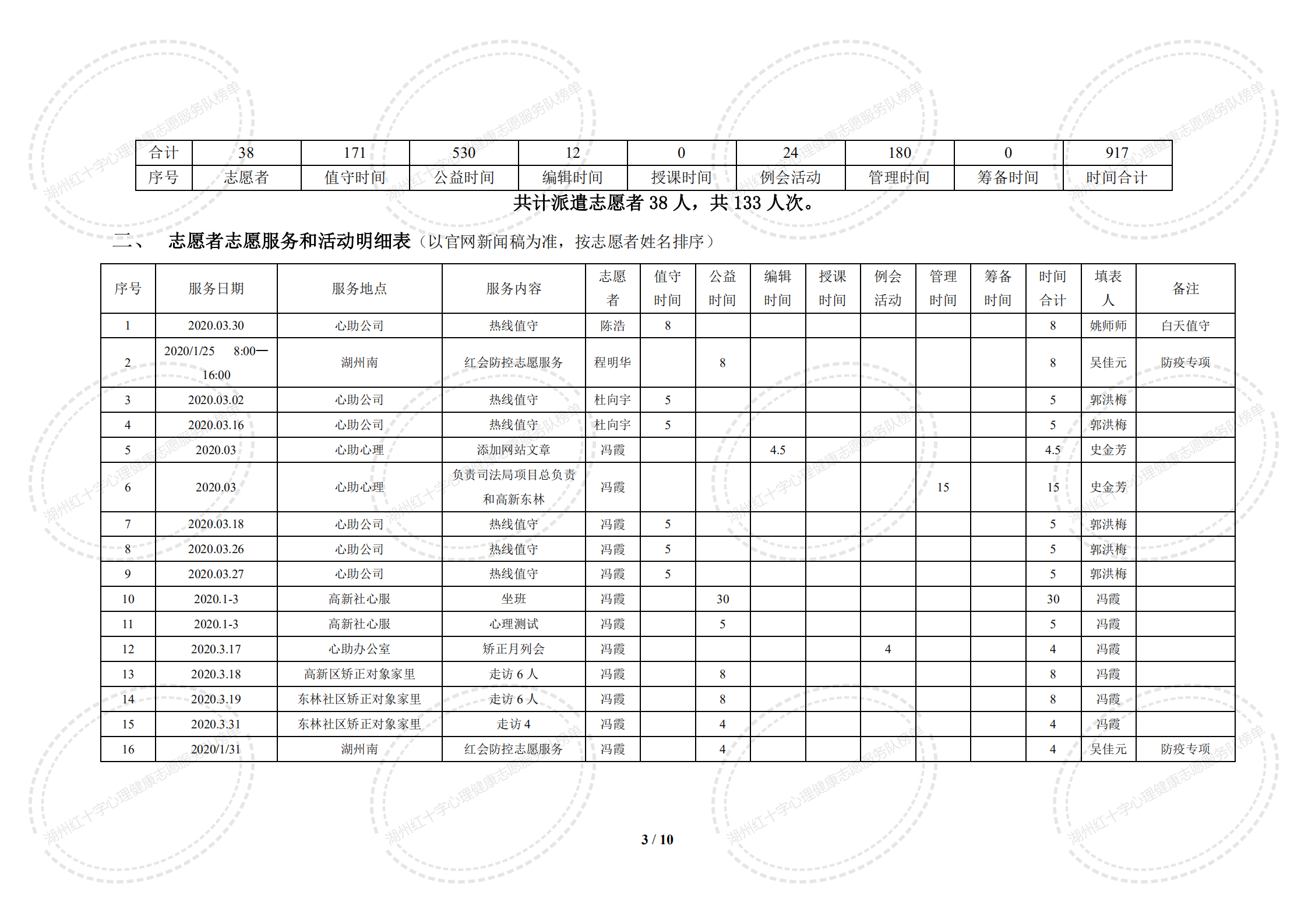 2020年3月湖州红十字心理健康志愿服务队榜单
