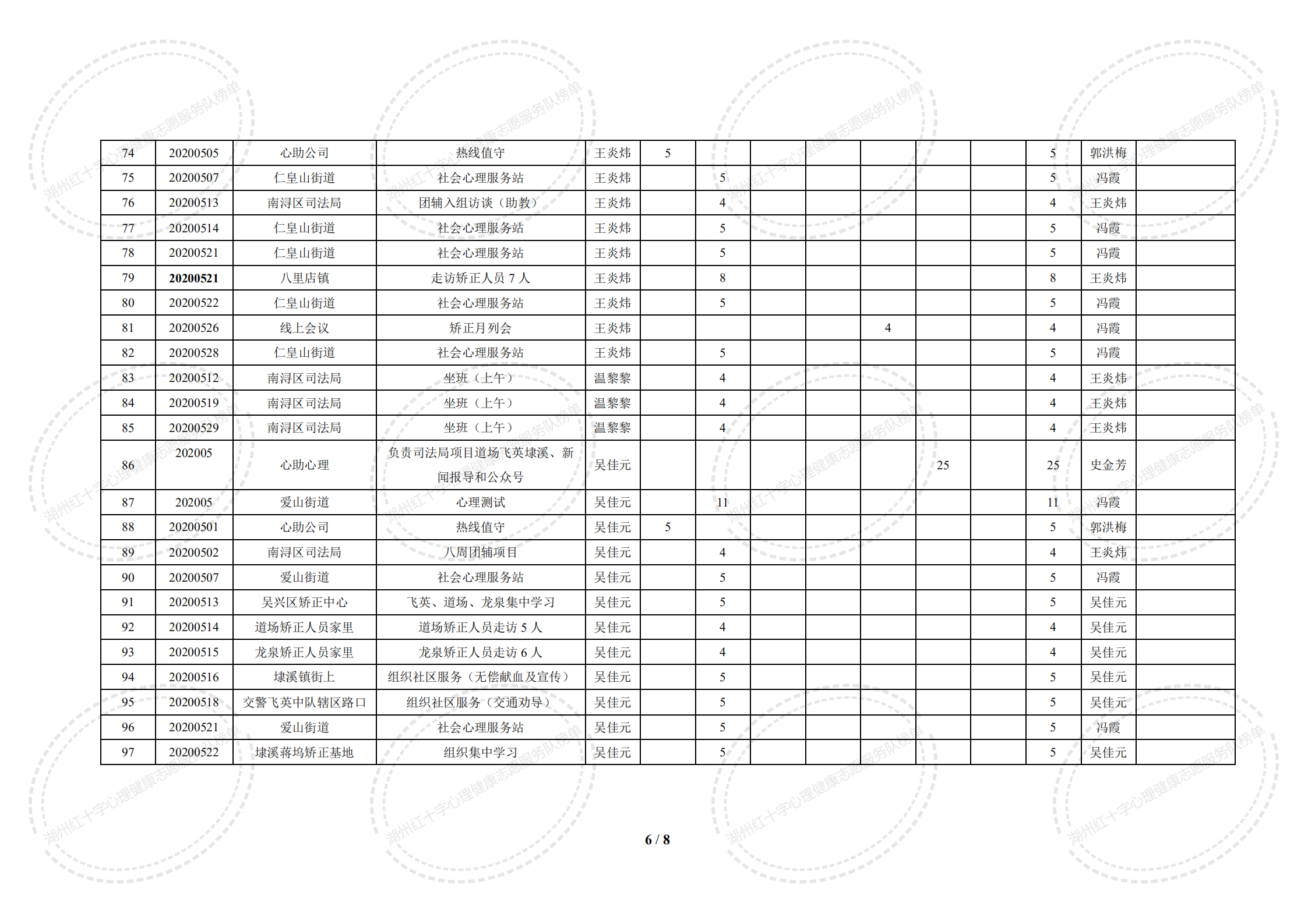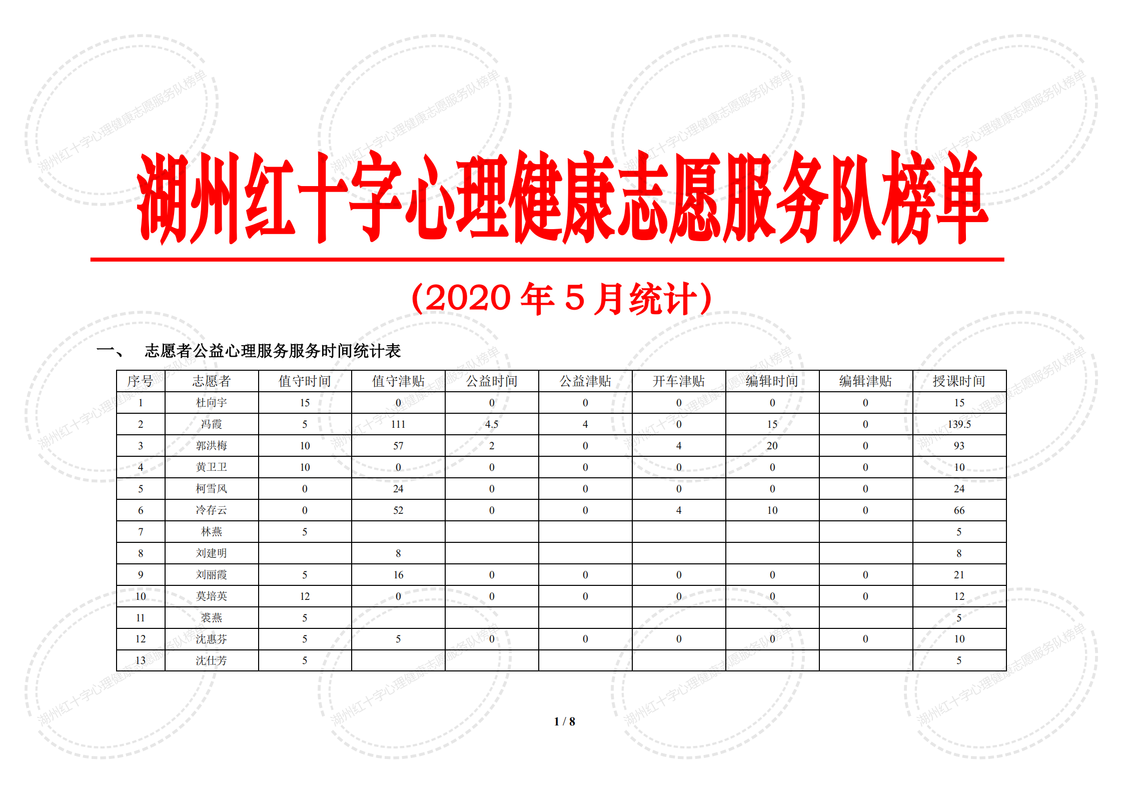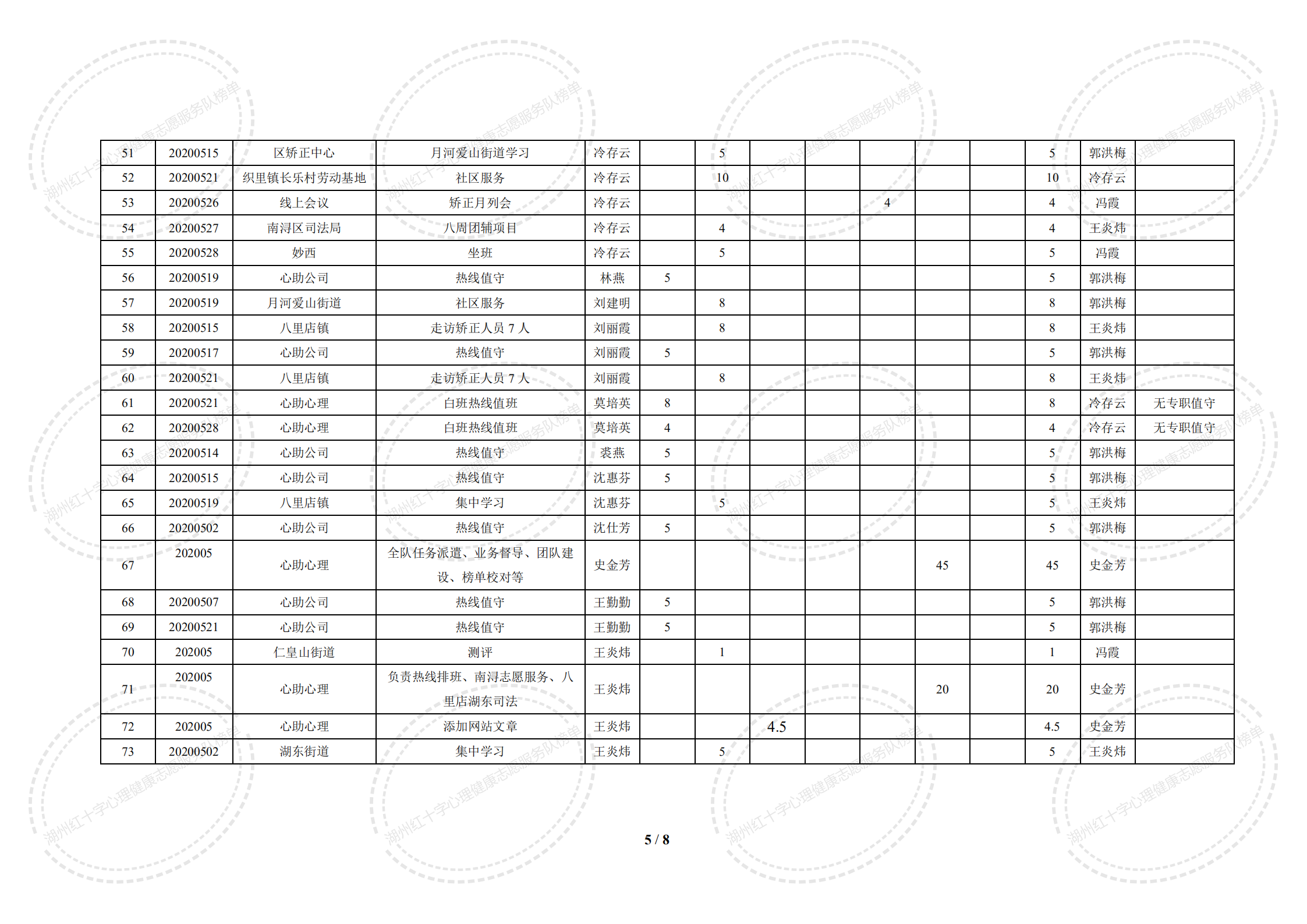 2020年5月湖州红十字心理健康志愿服务队榜单