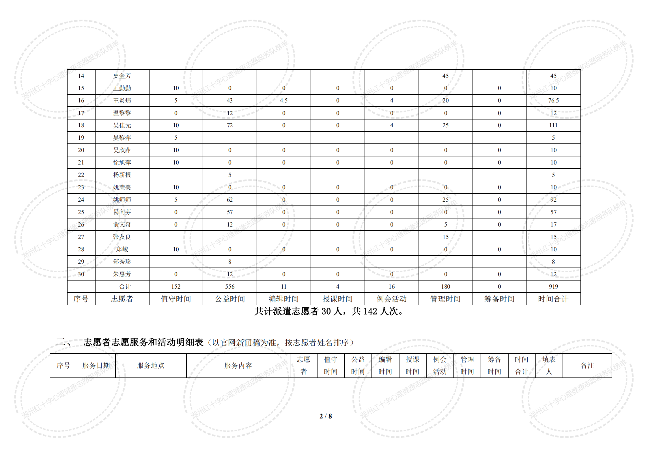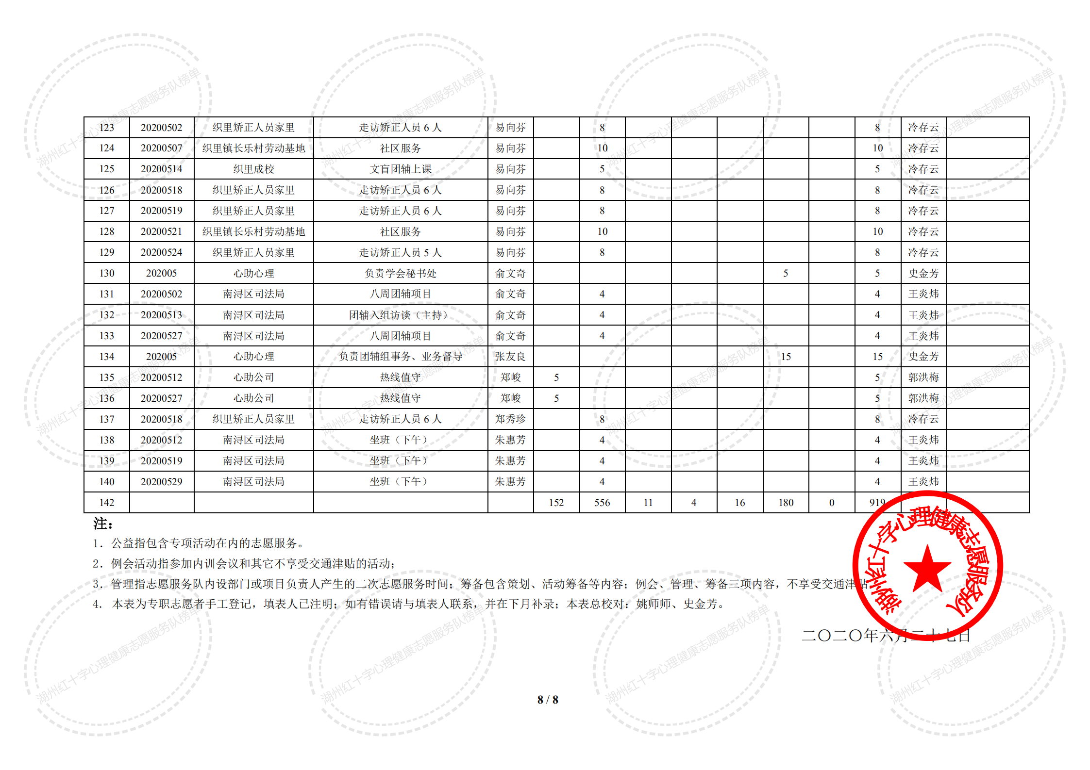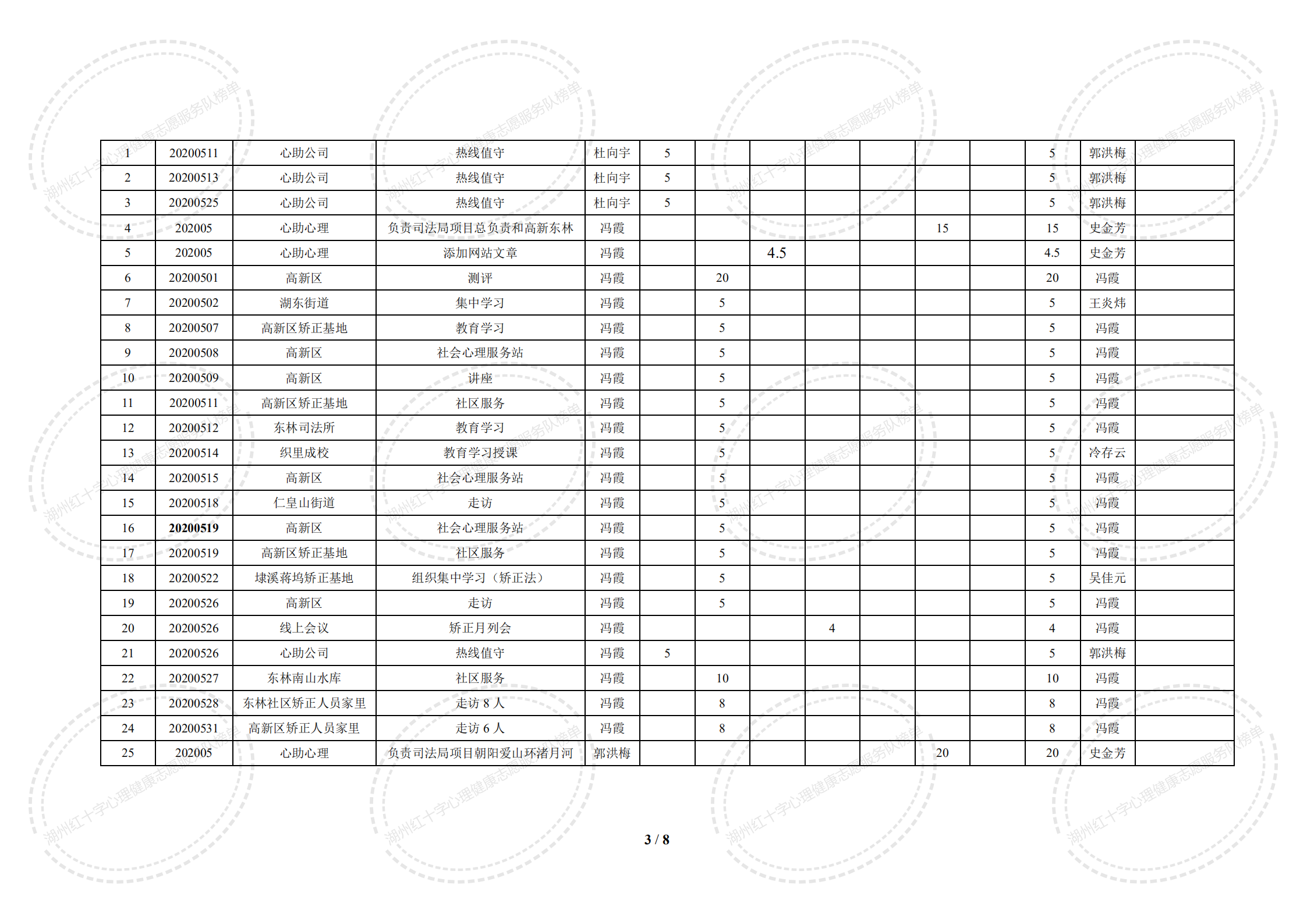 2020年5月湖州红十字心理健康志愿服务队榜单