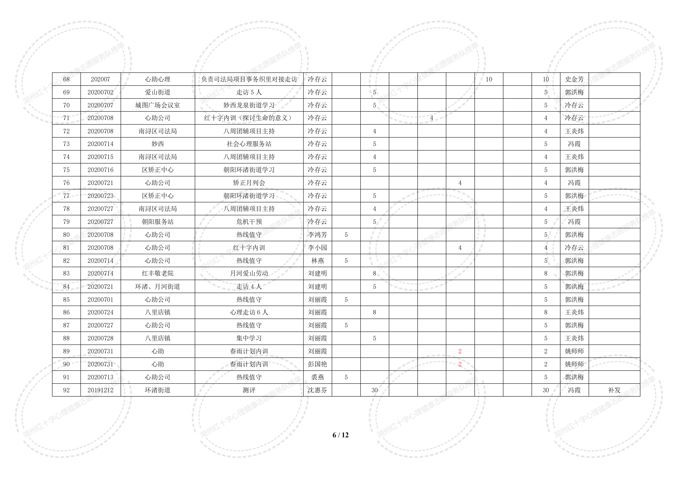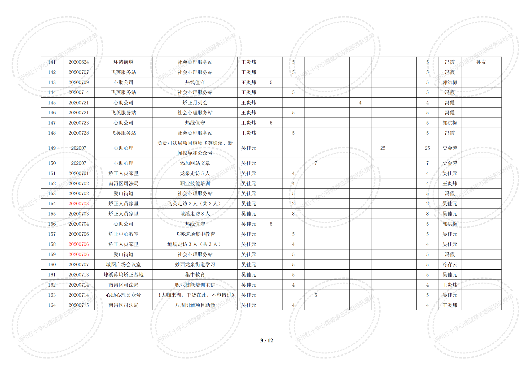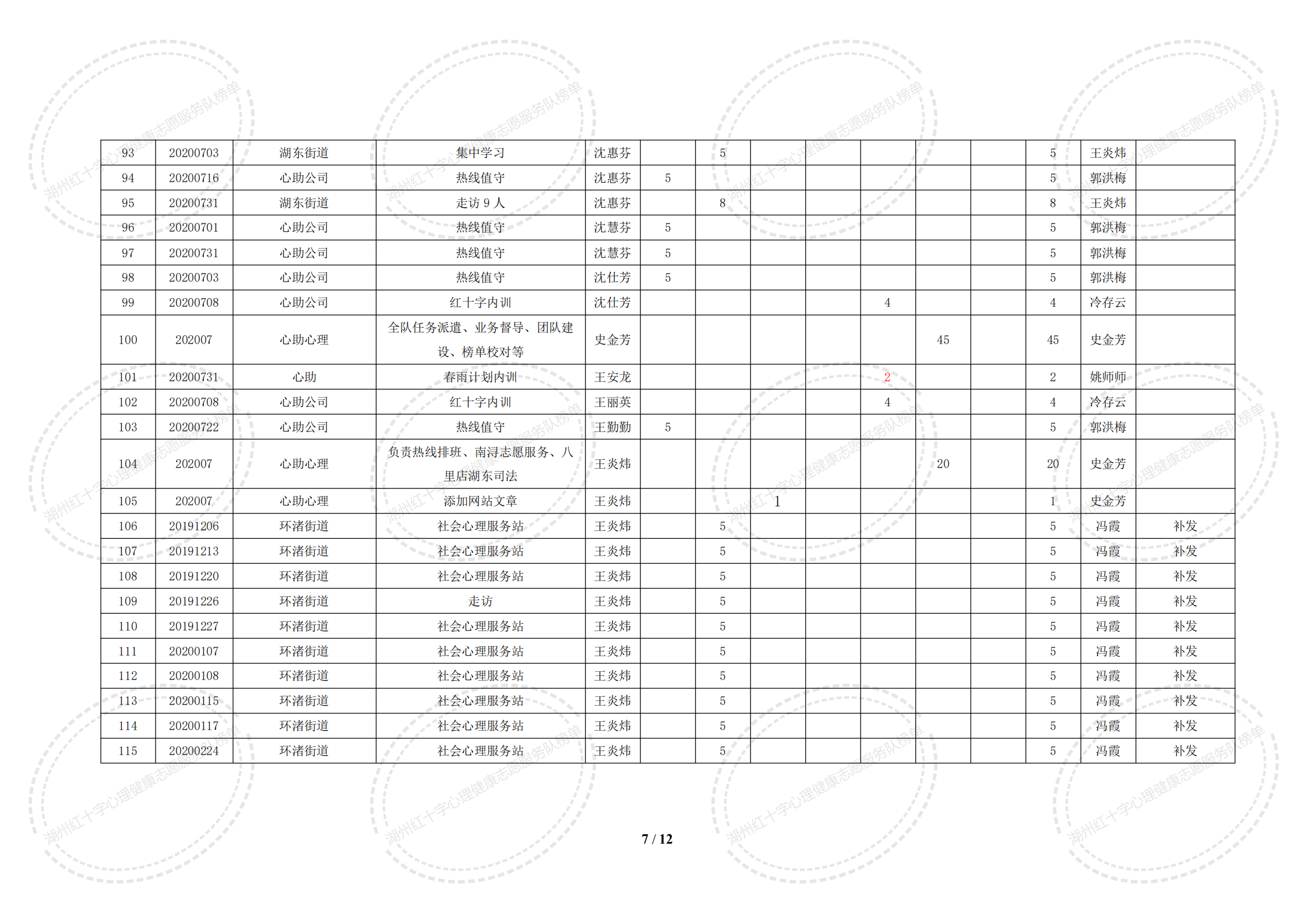 2020年7月湖州红十字心理健康志愿服务队榜单