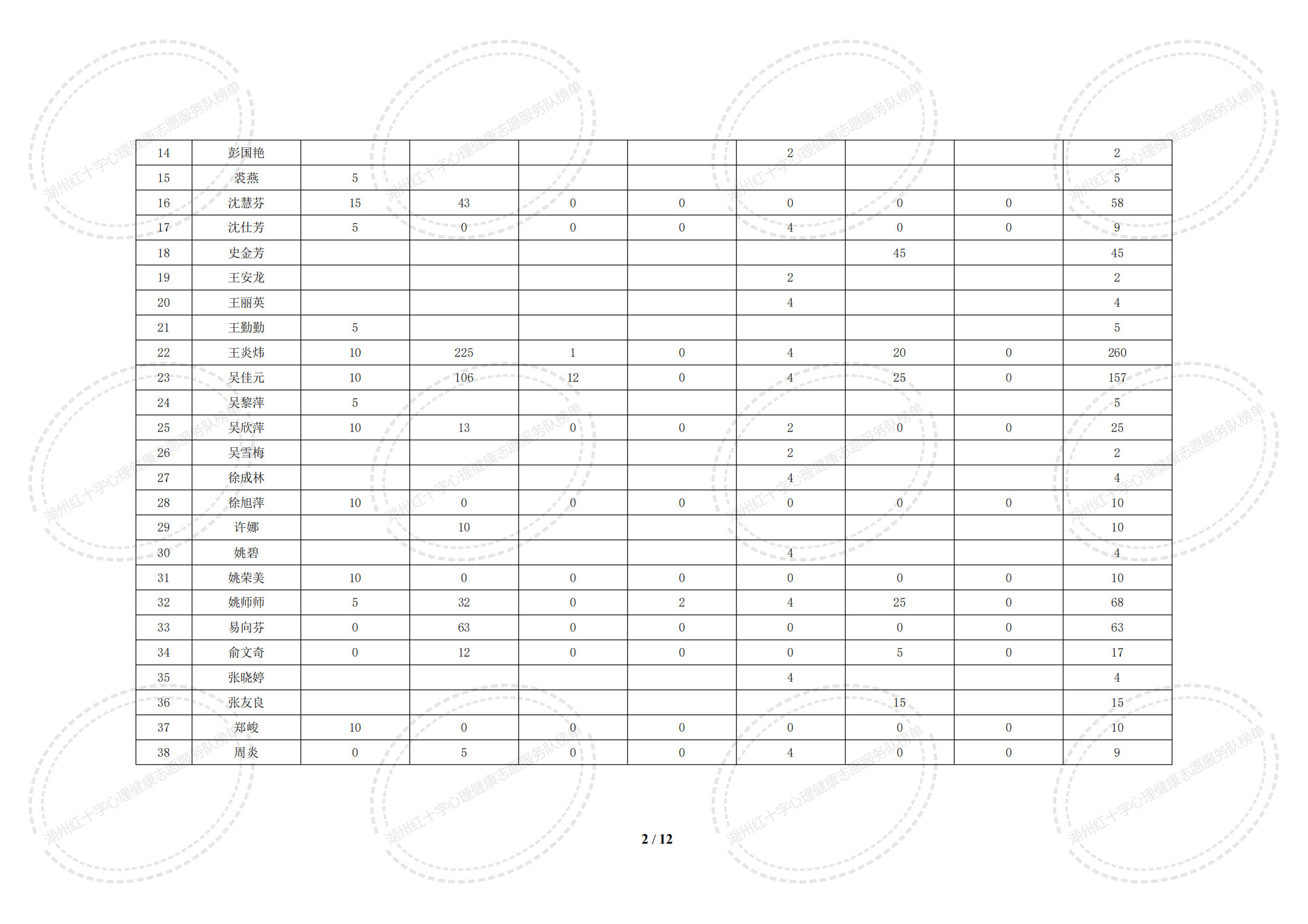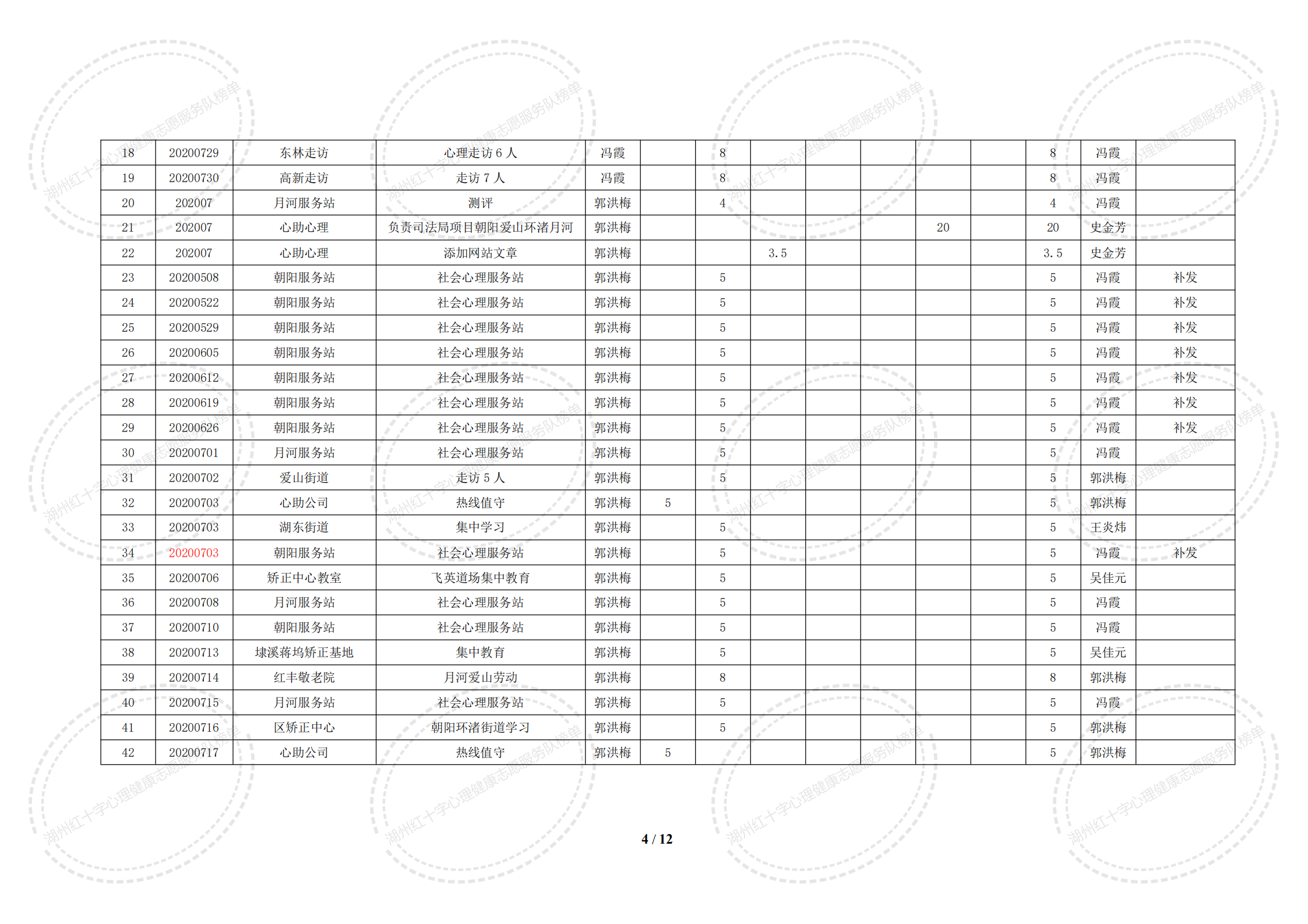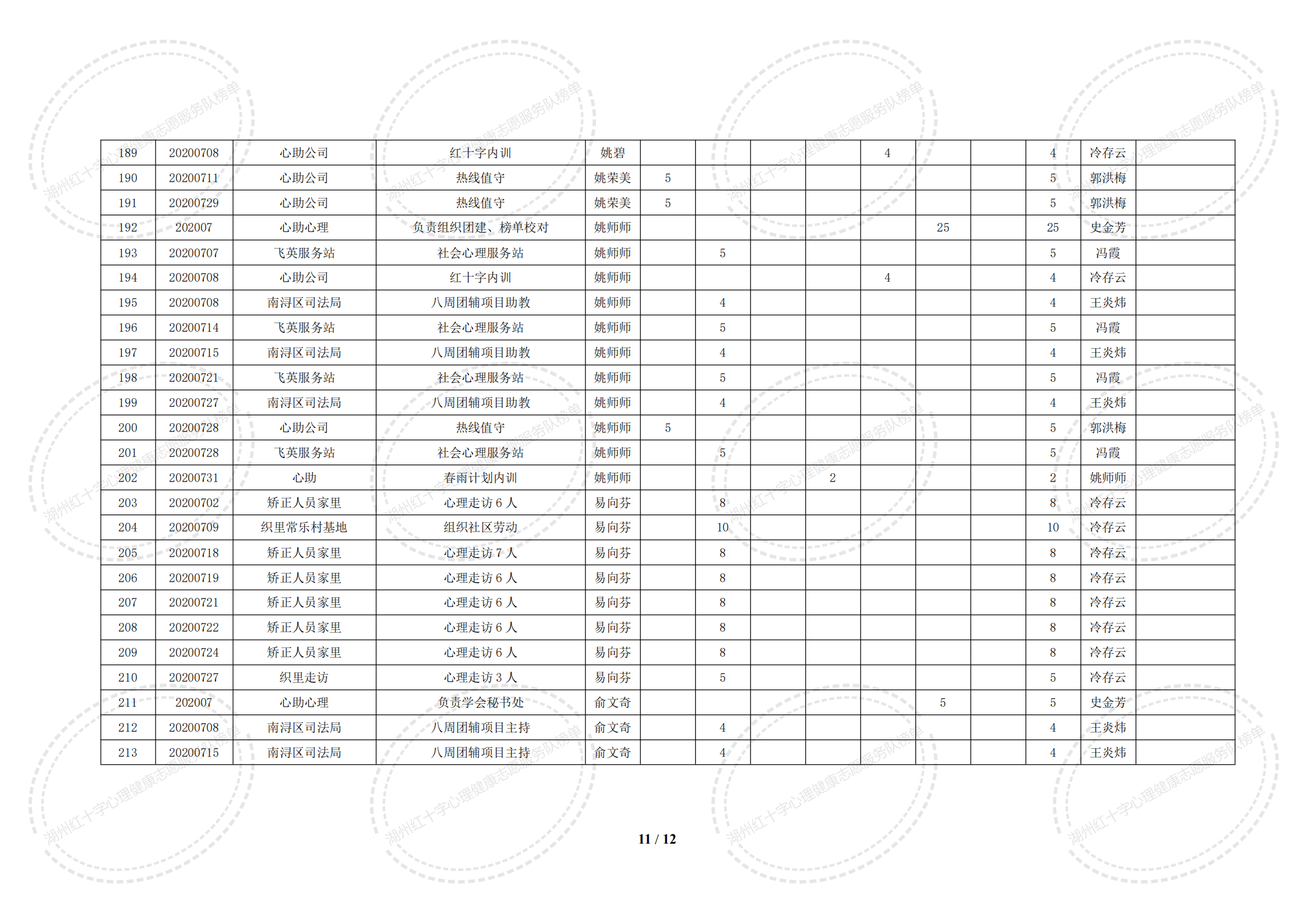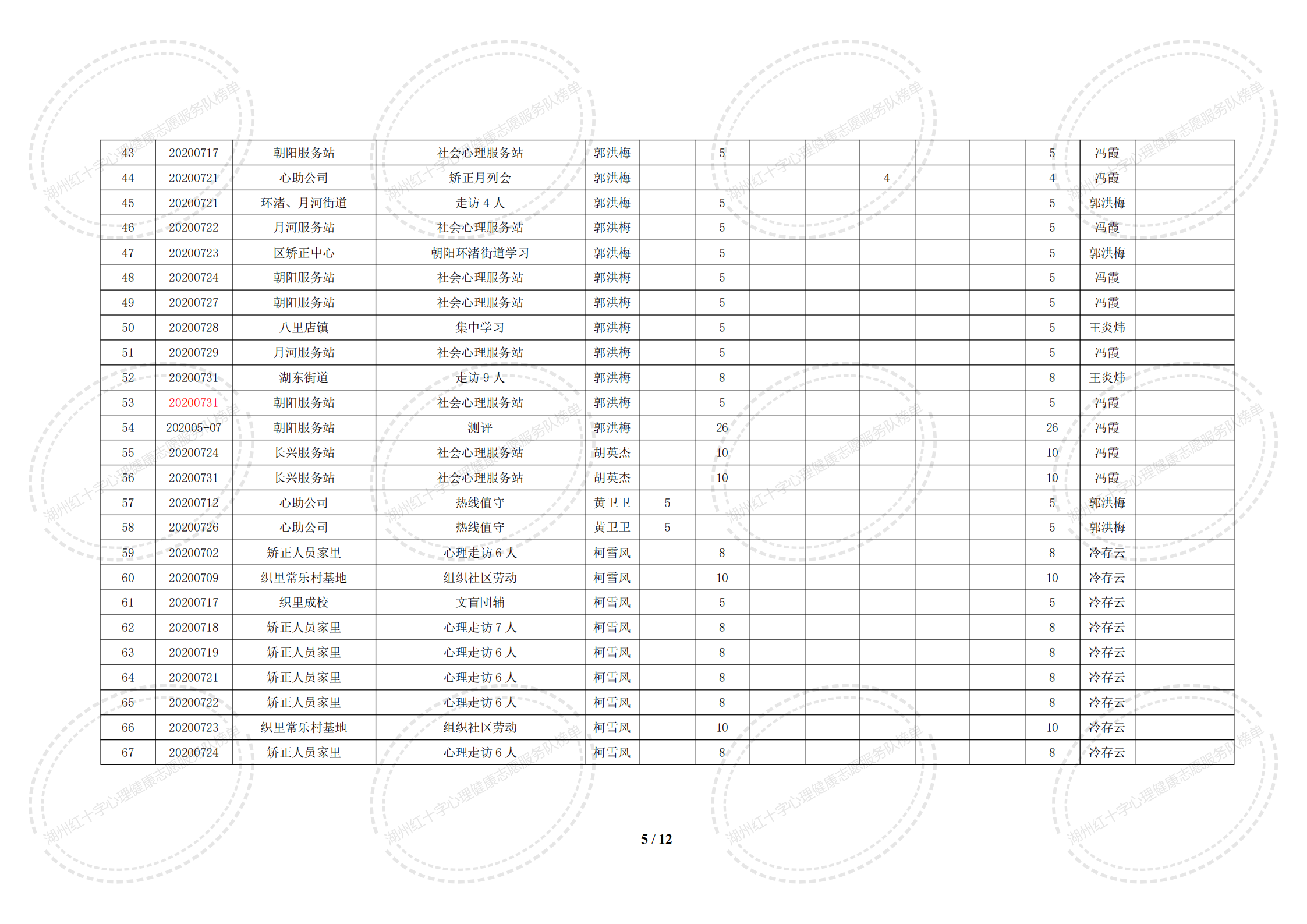 2020年7月湖州红十字心理健康志愿服务队榜单