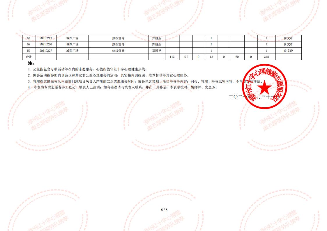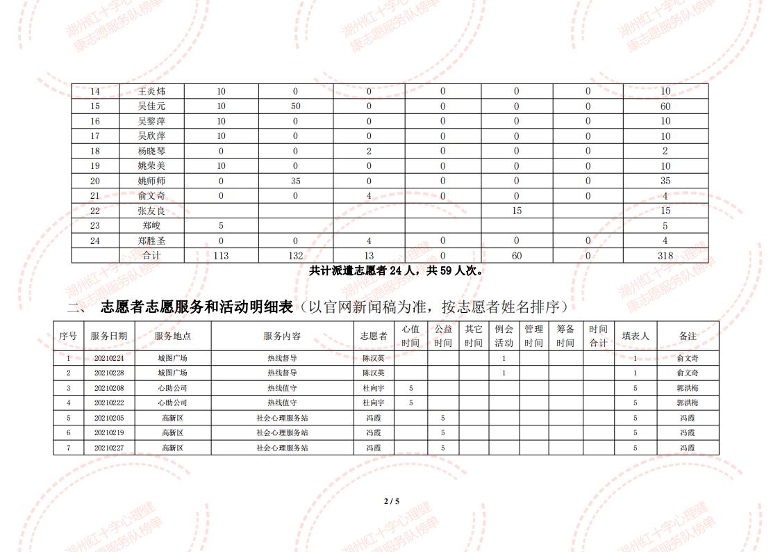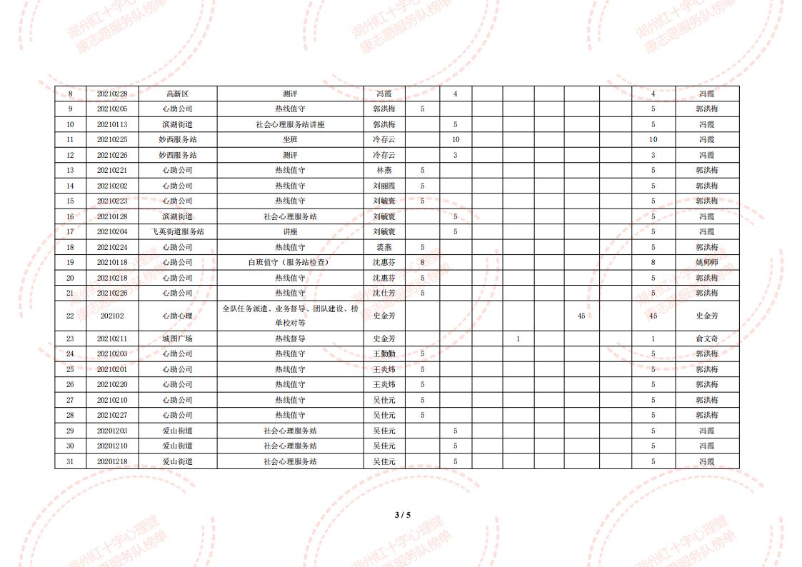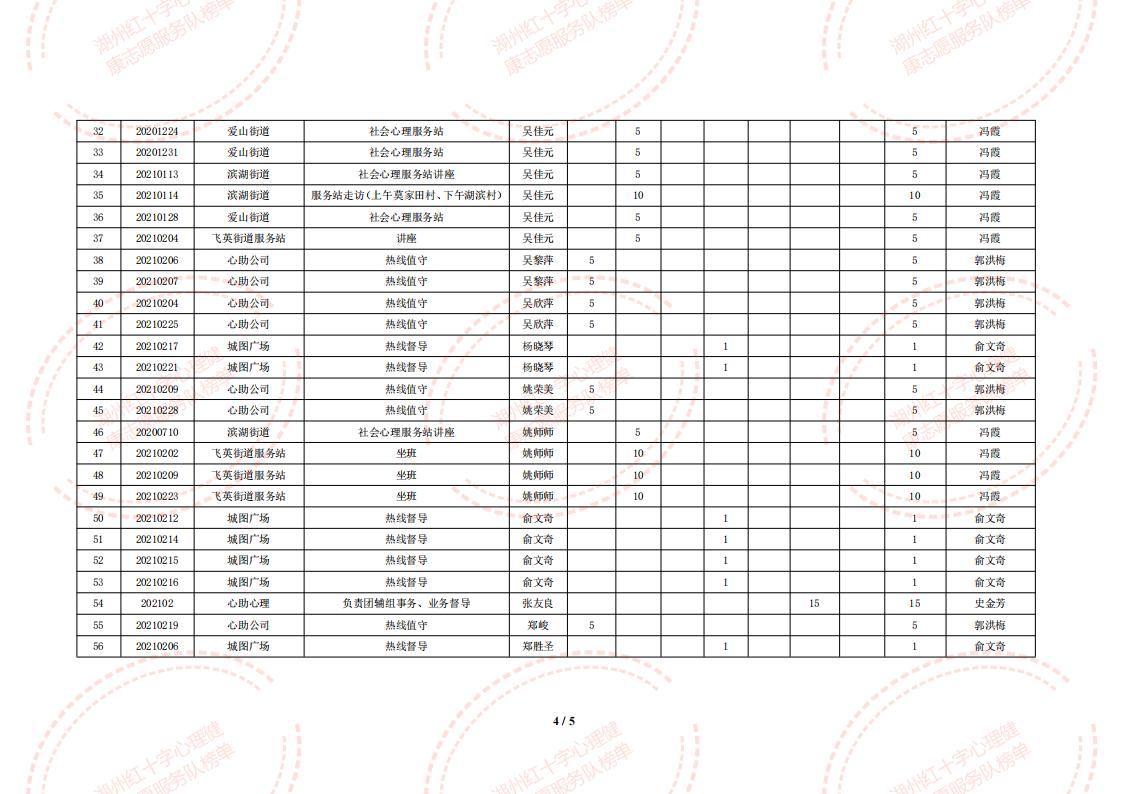 2021年02月湖州红十字心理健康志愿服务队榜单