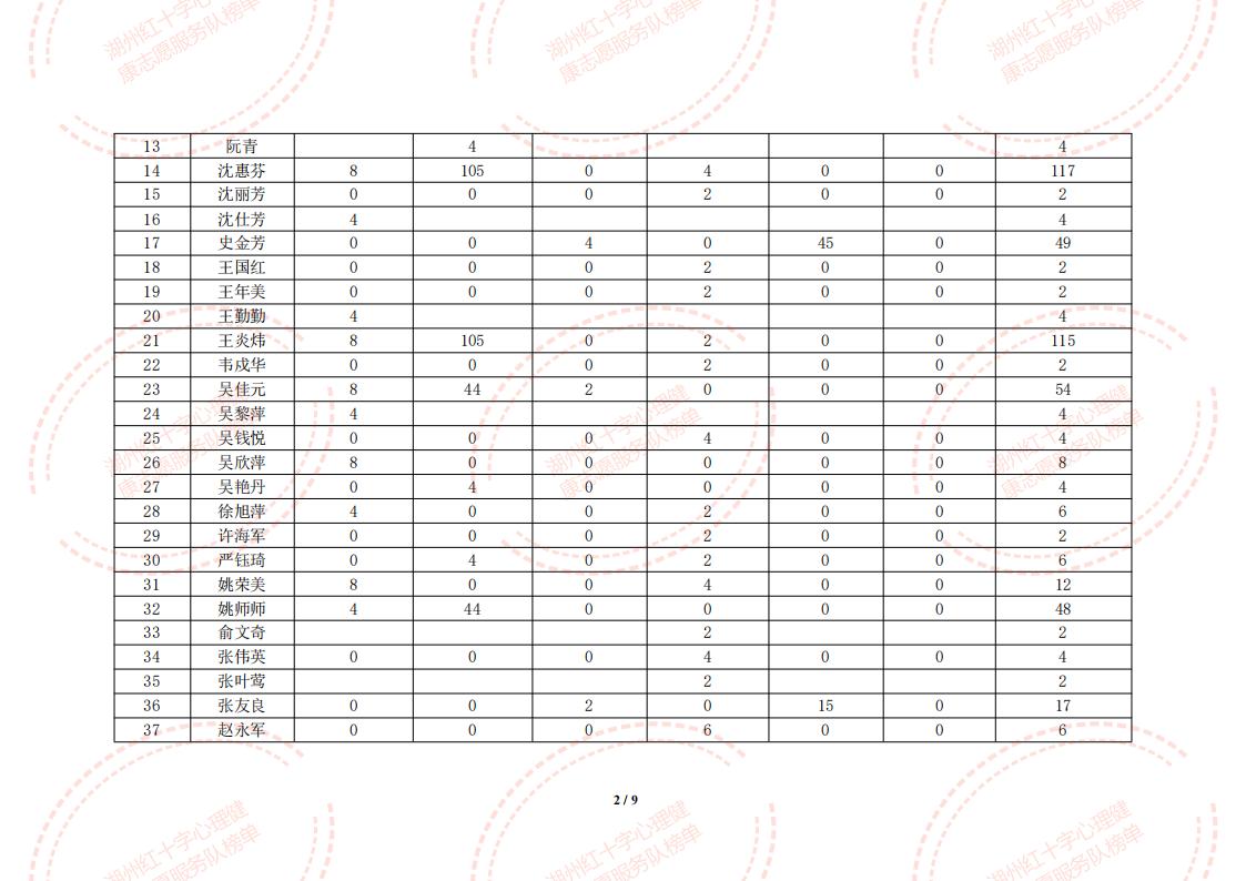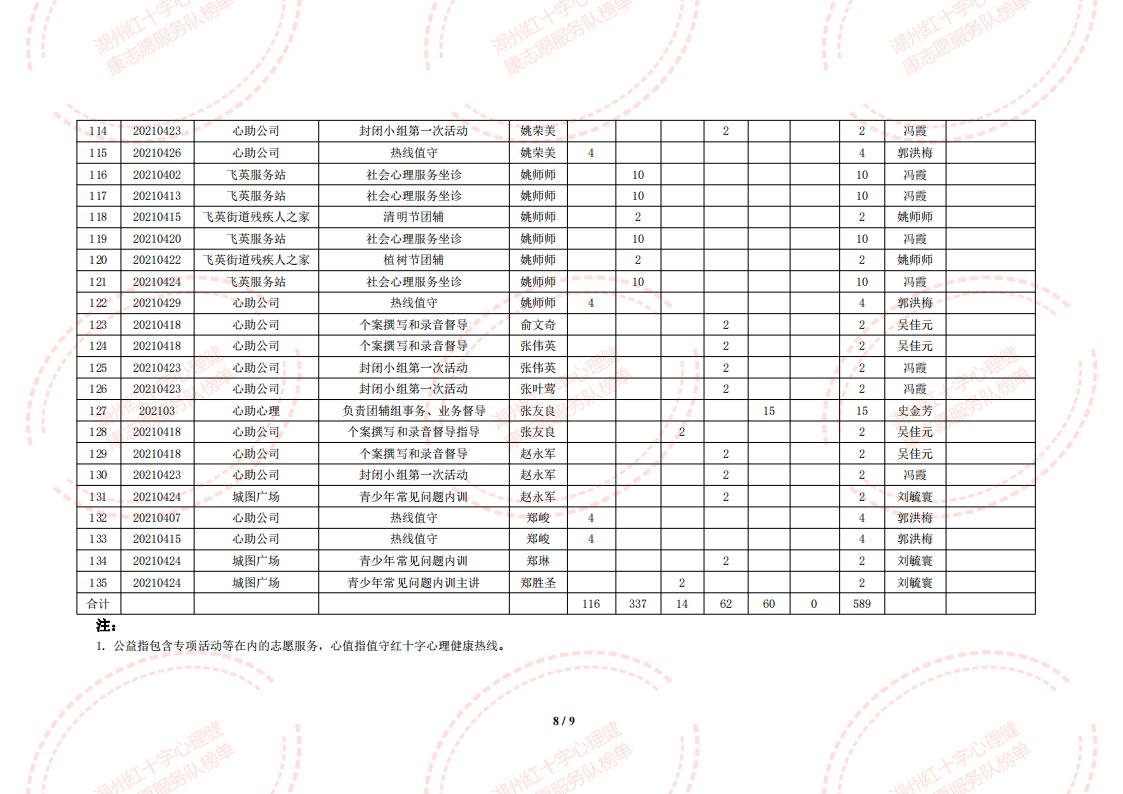 2021年04月湖州红十字心理健康志愿服务队榜单