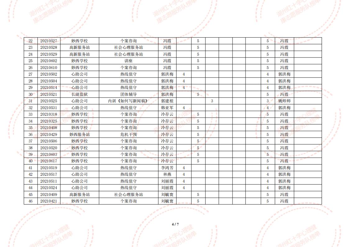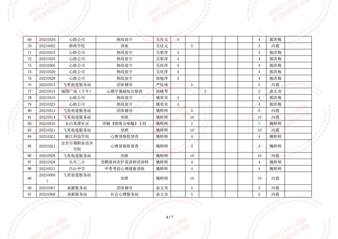 2021年05月湖州红十字心理健康志愿服务队榜单