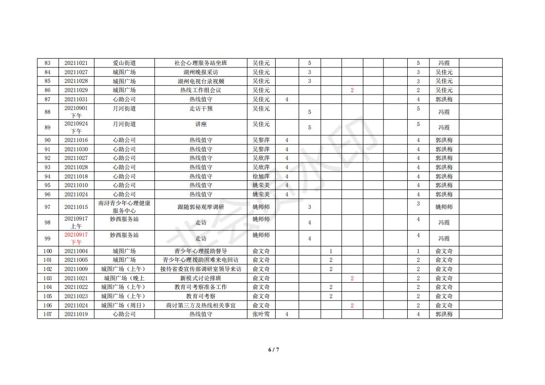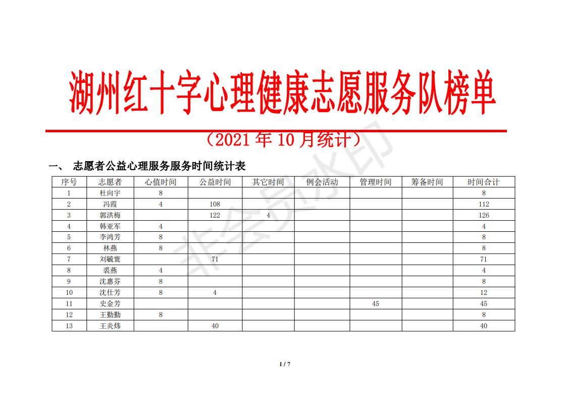 2021年10月湖州红十字心理健康志愿服务队榜单