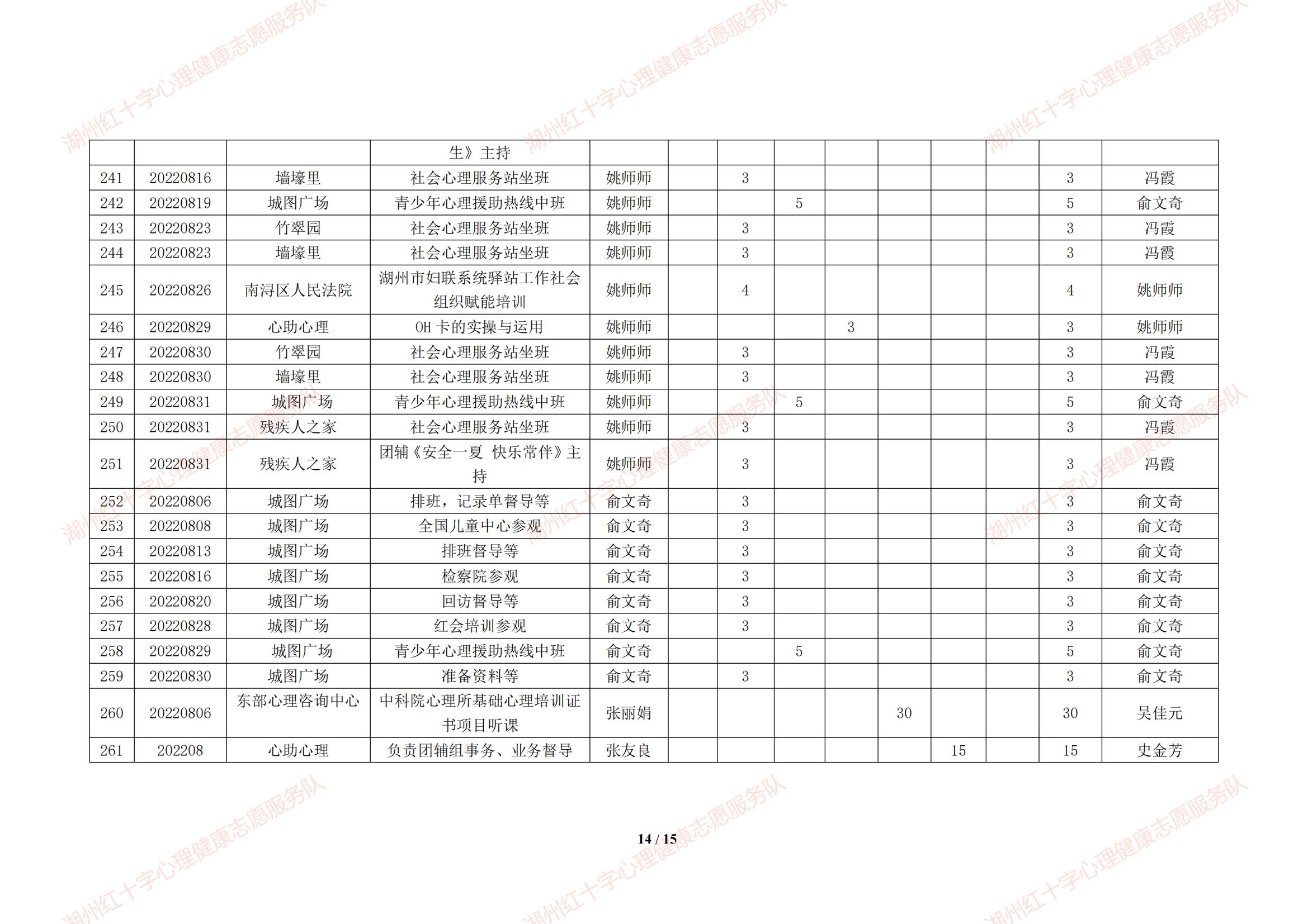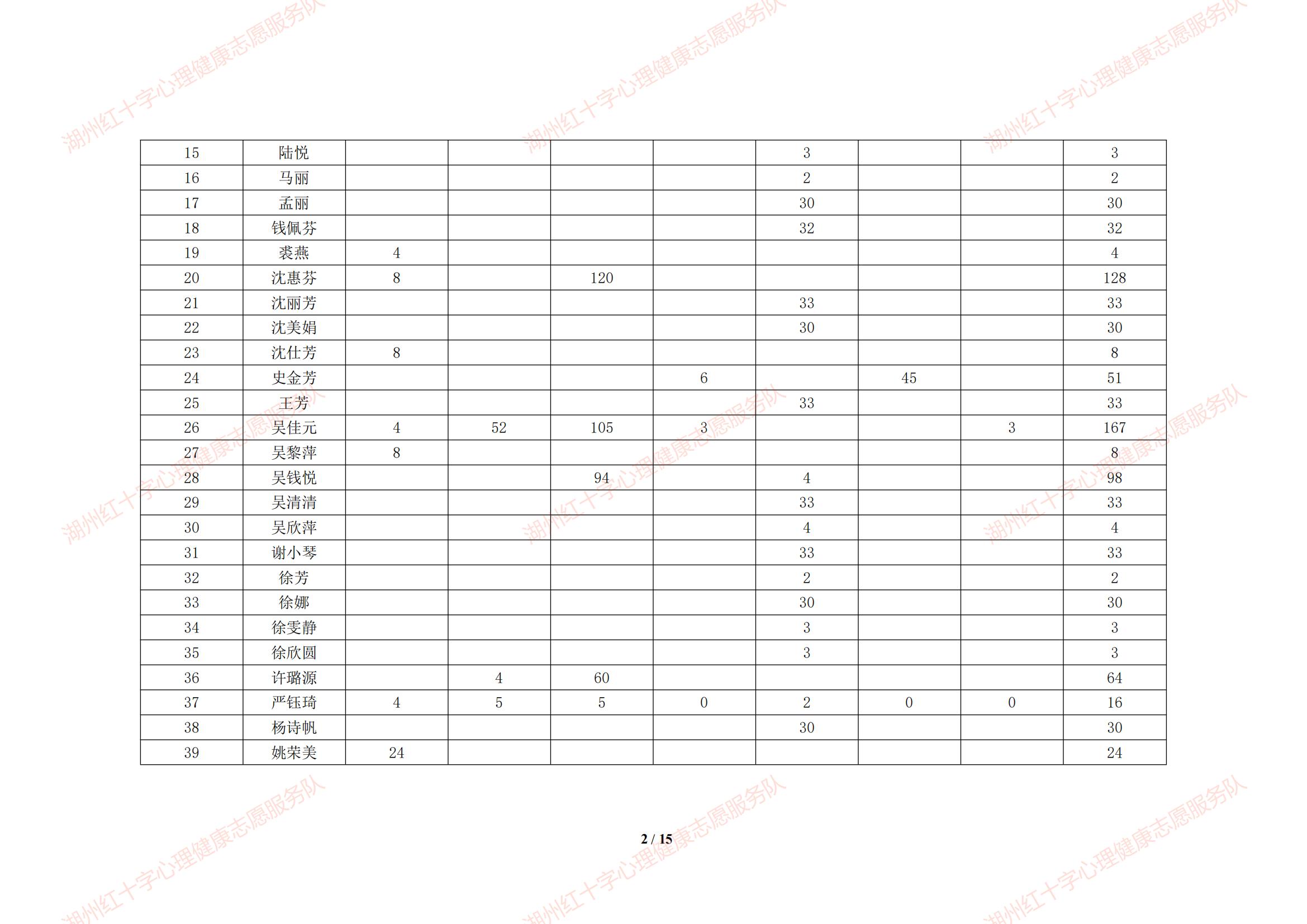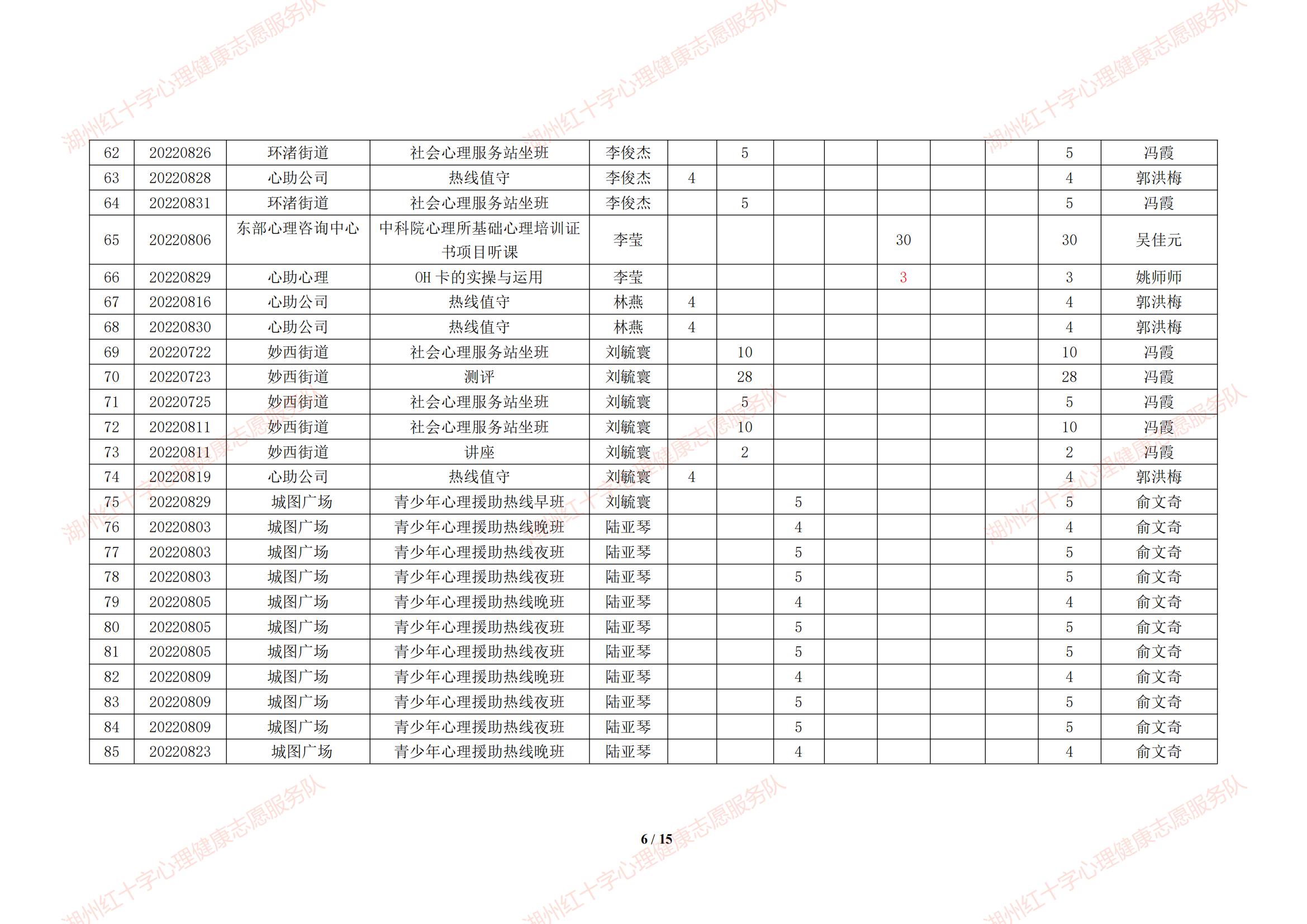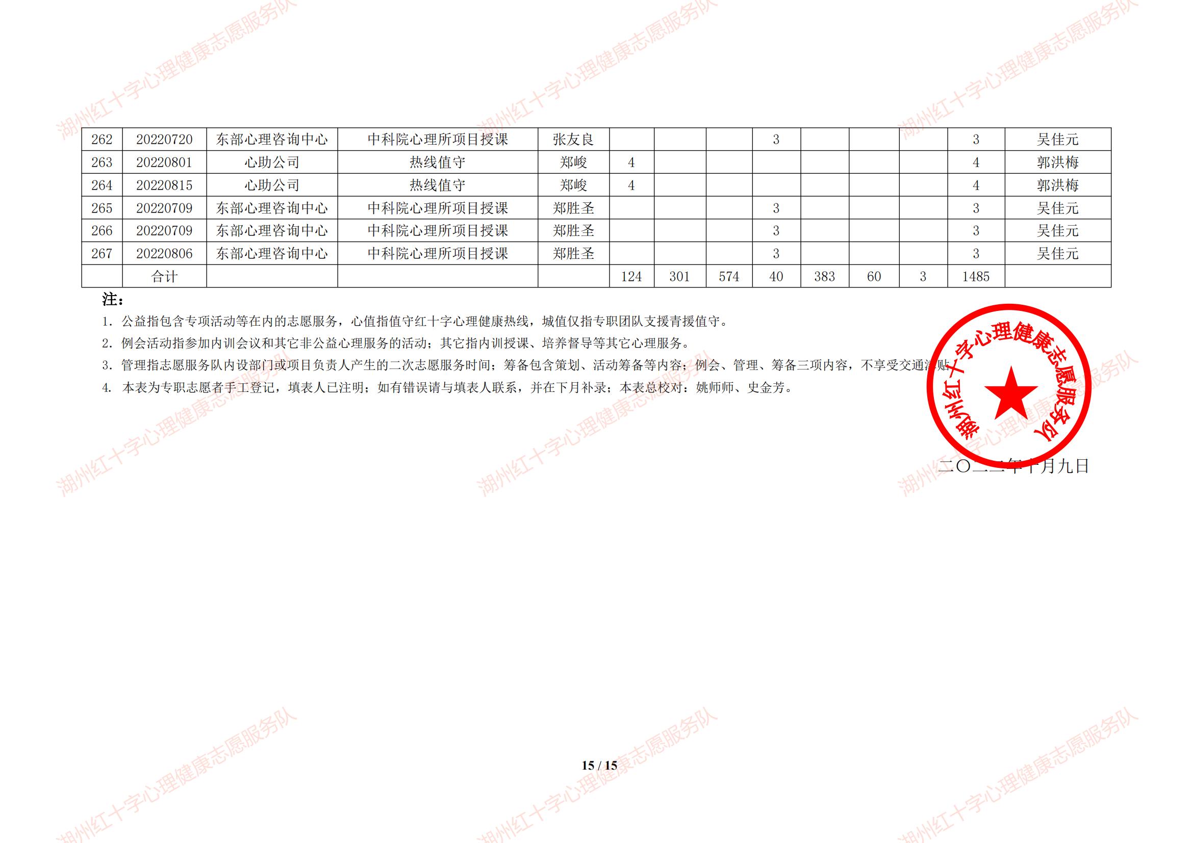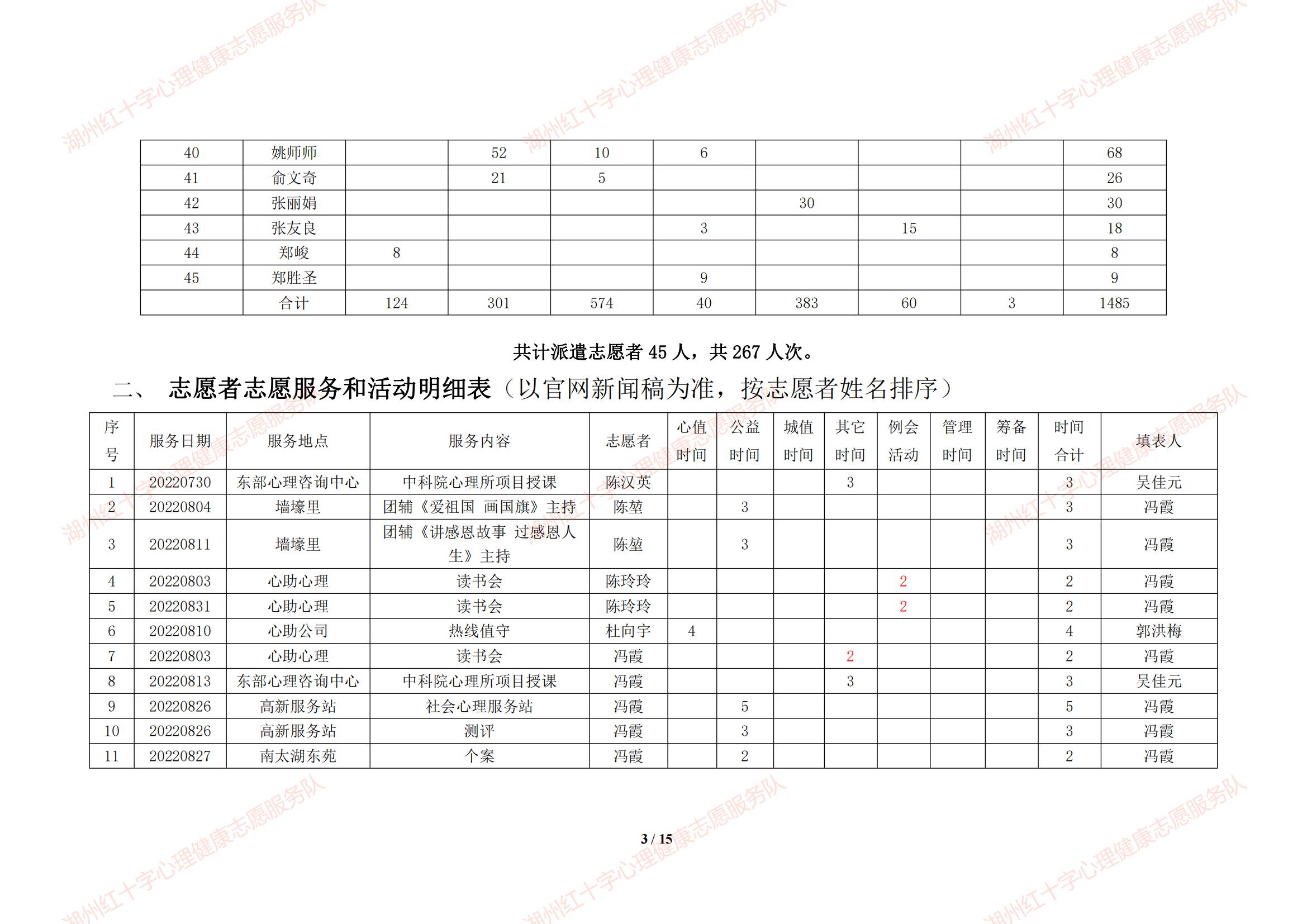 2022年8月湖州红十字心理健康志愿服务队榜单