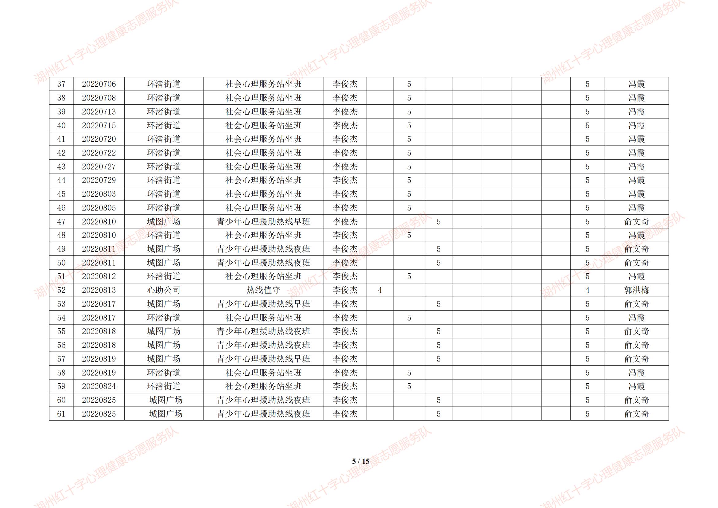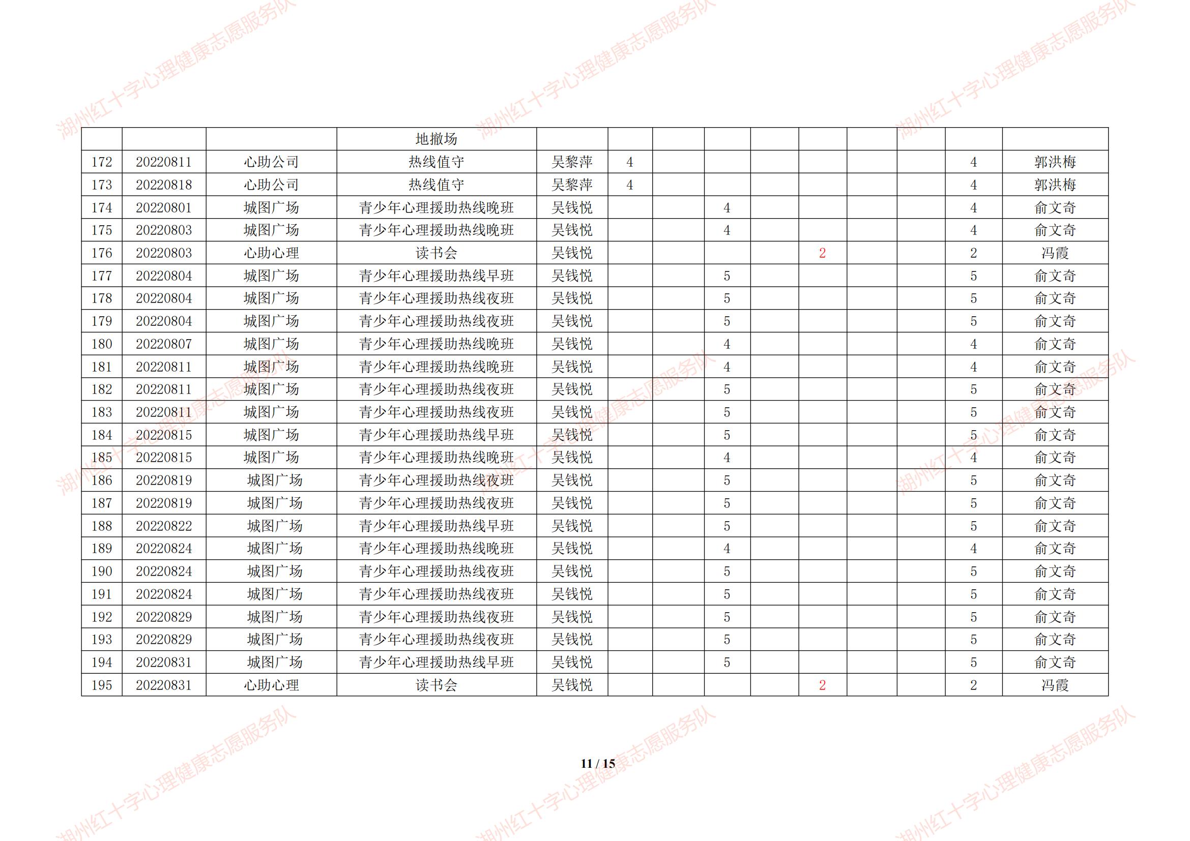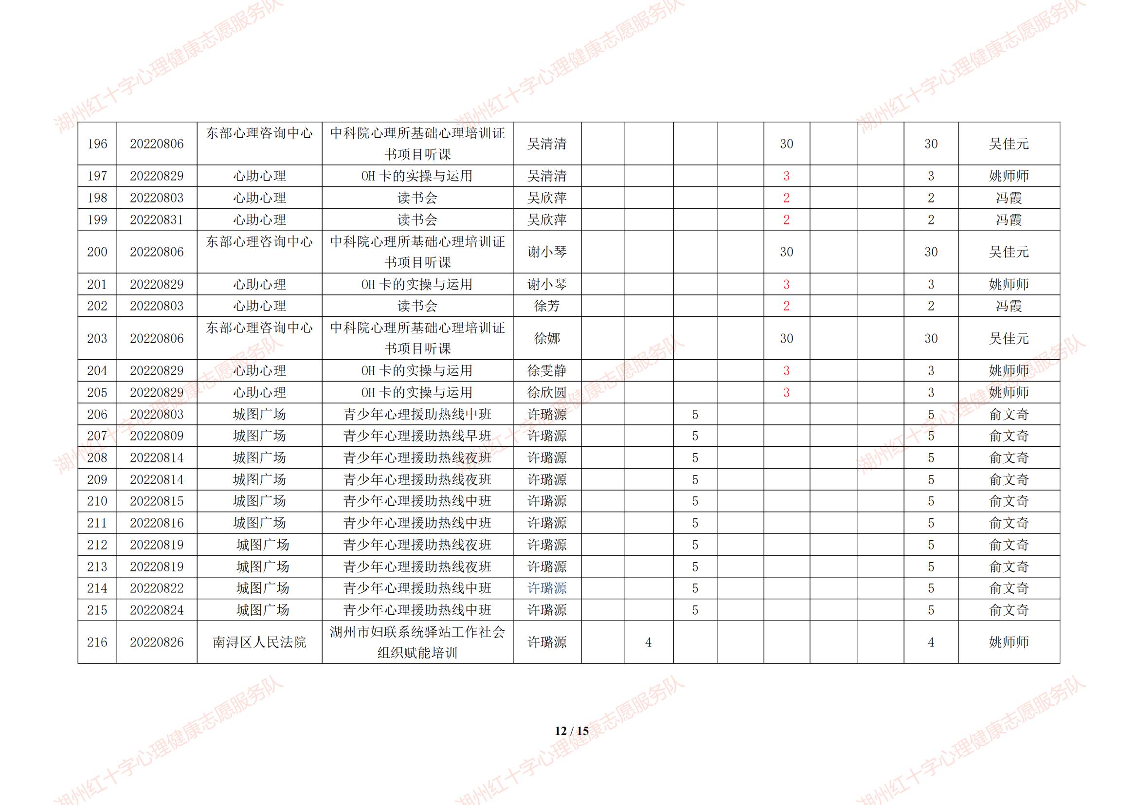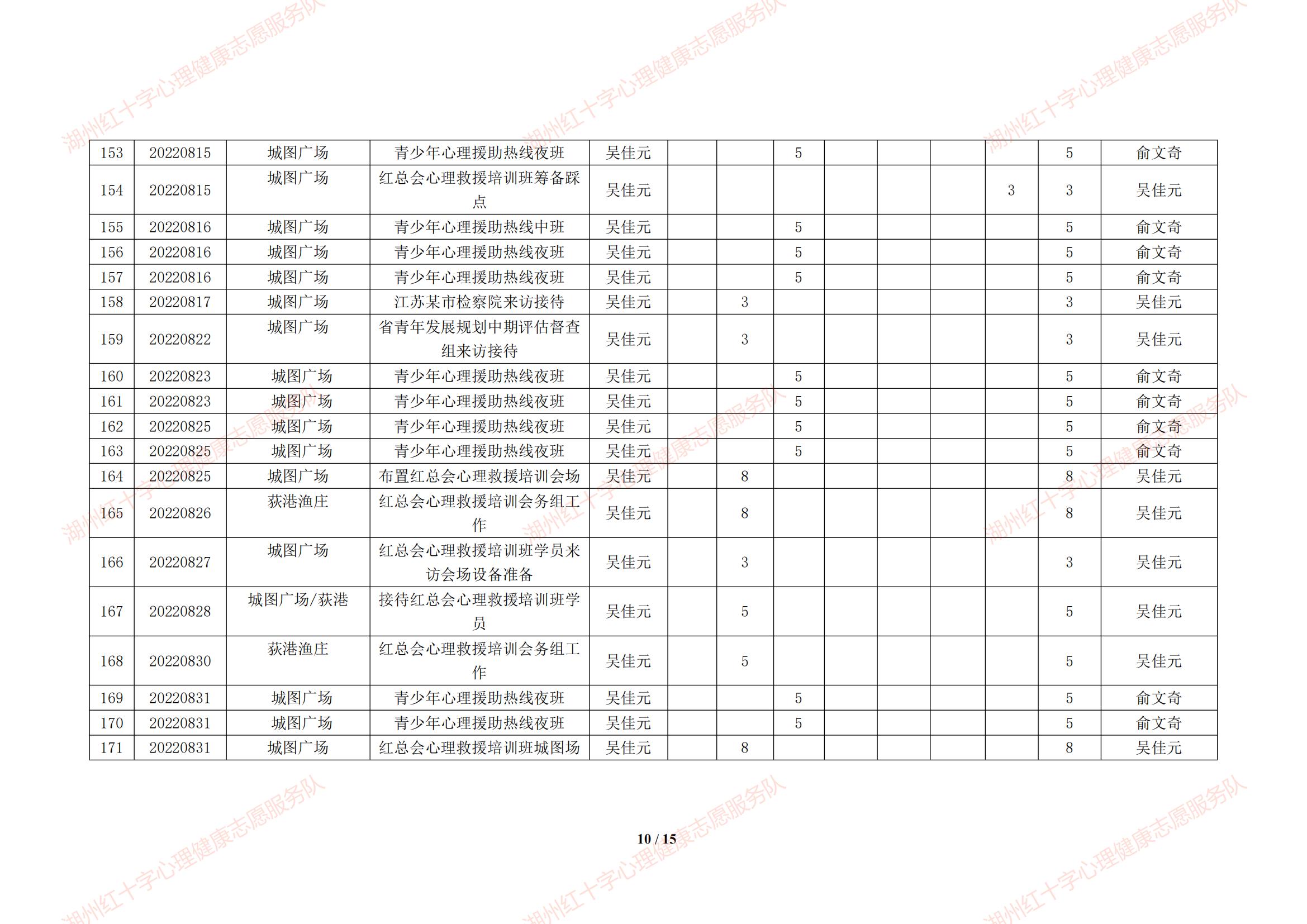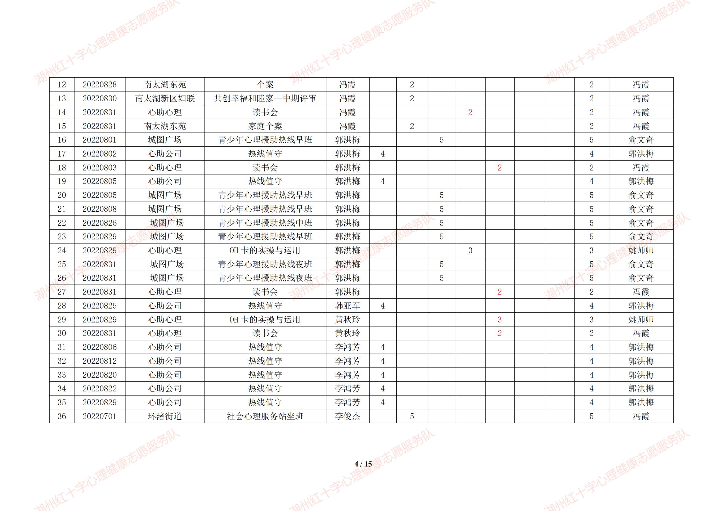 2022年8月湖州红十字心理健康志愿服务队榜单