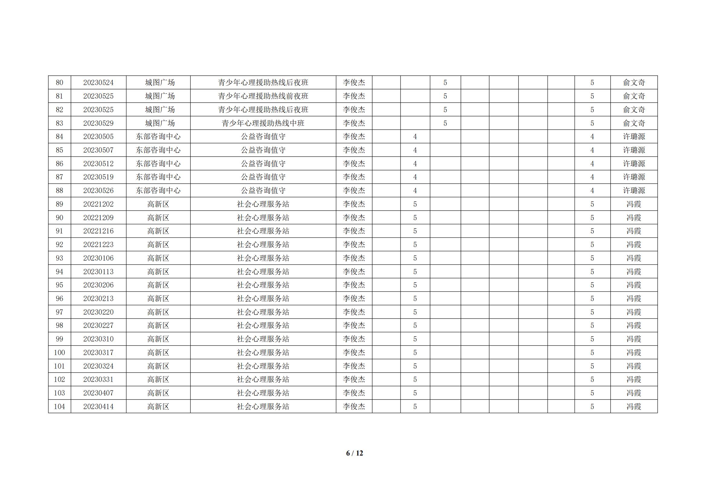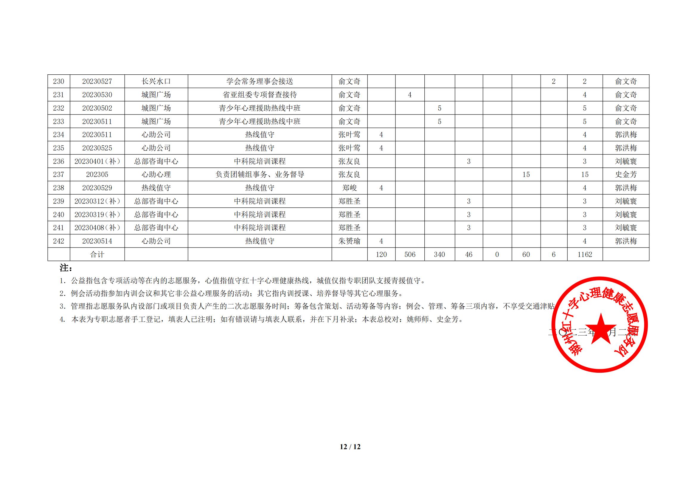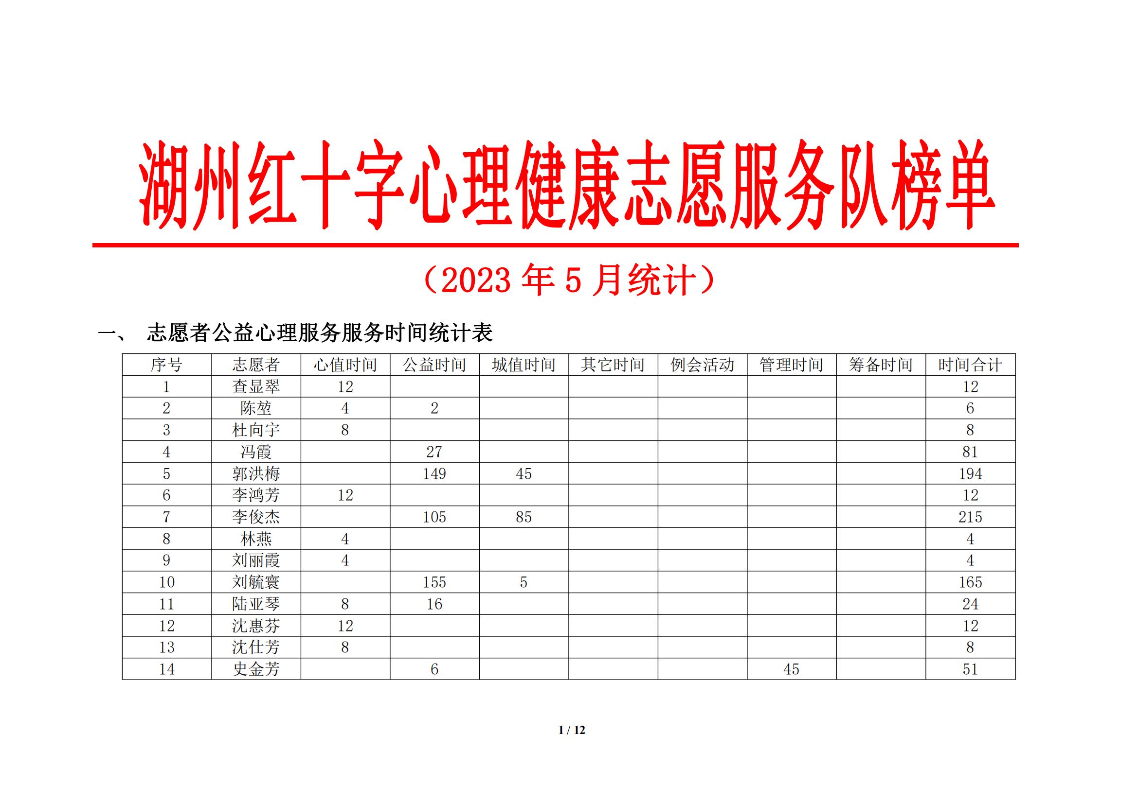 2023年5月湖州红十字心理健康志愿服务队榜单