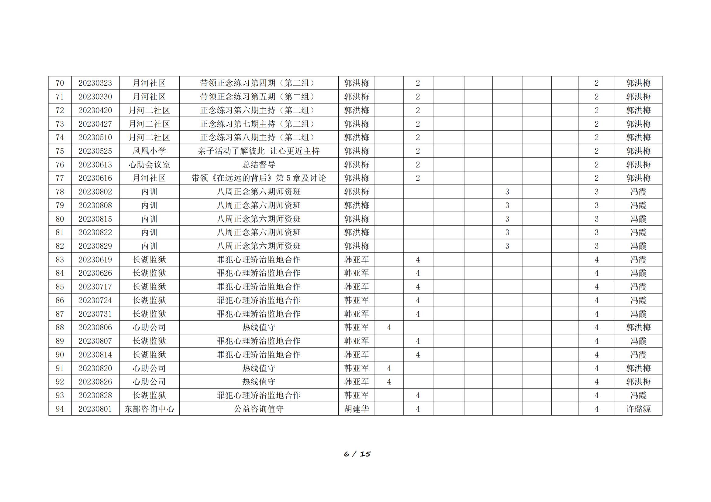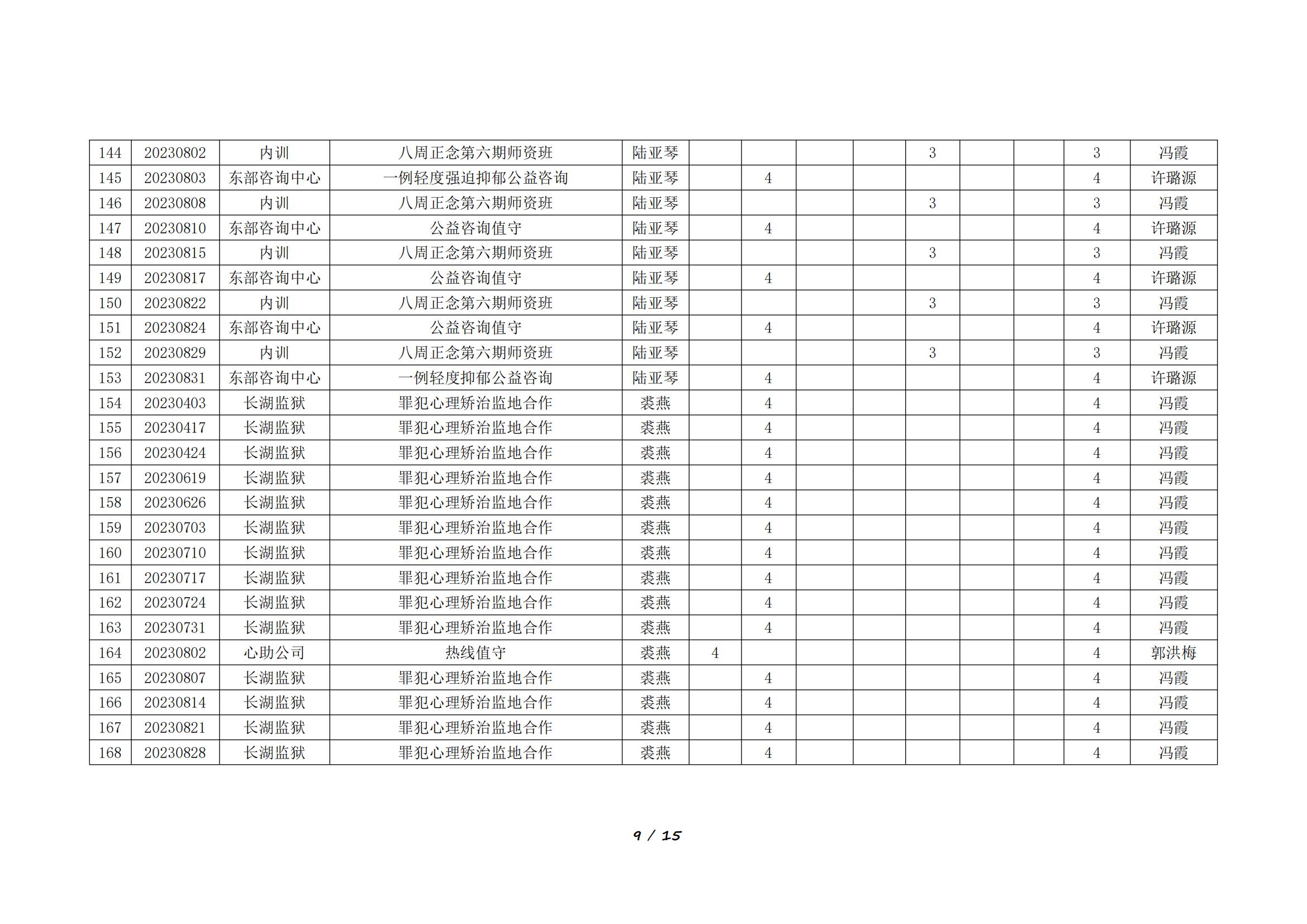 2023年8月湖州红十字心理健康志愿服务队榜单