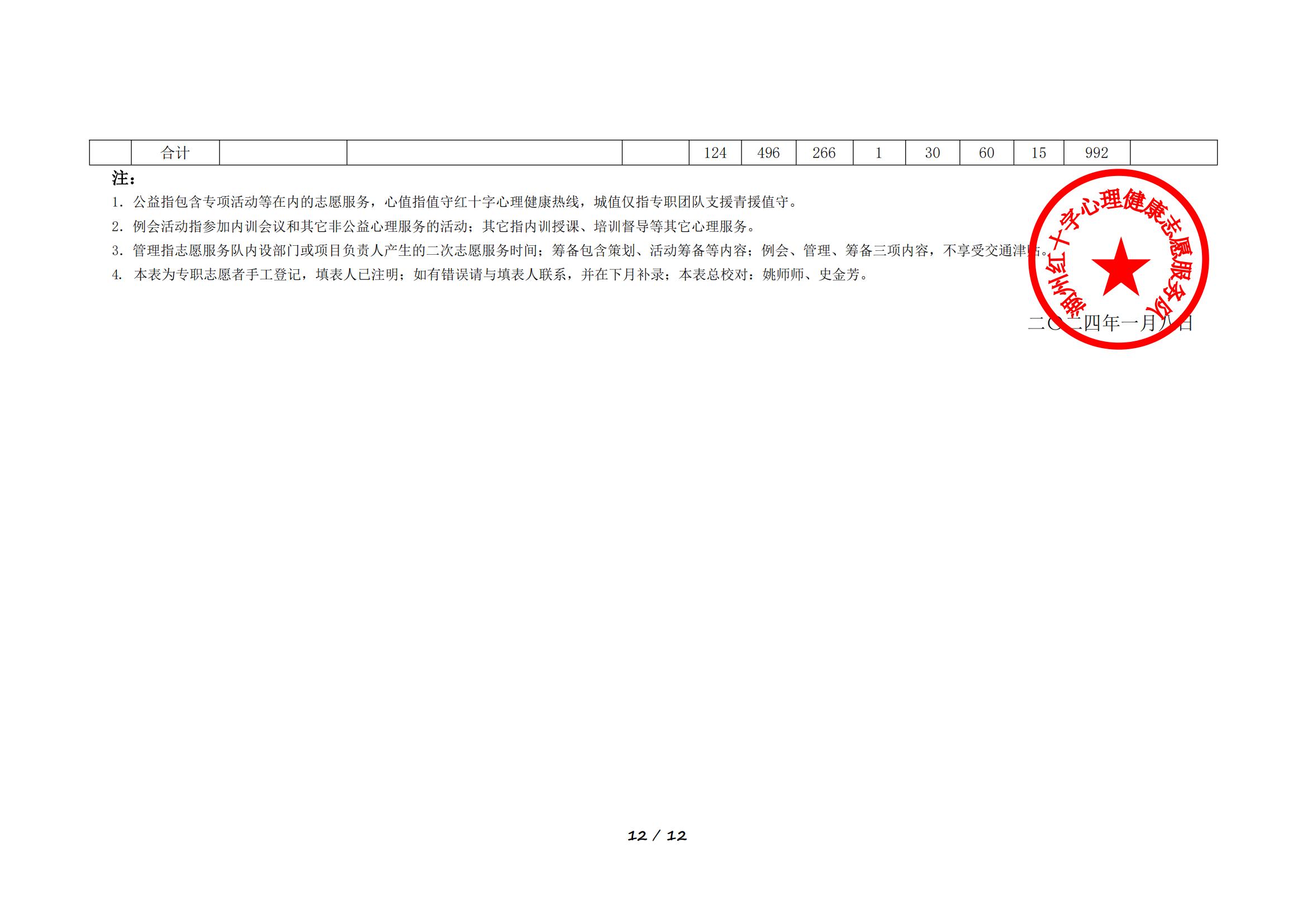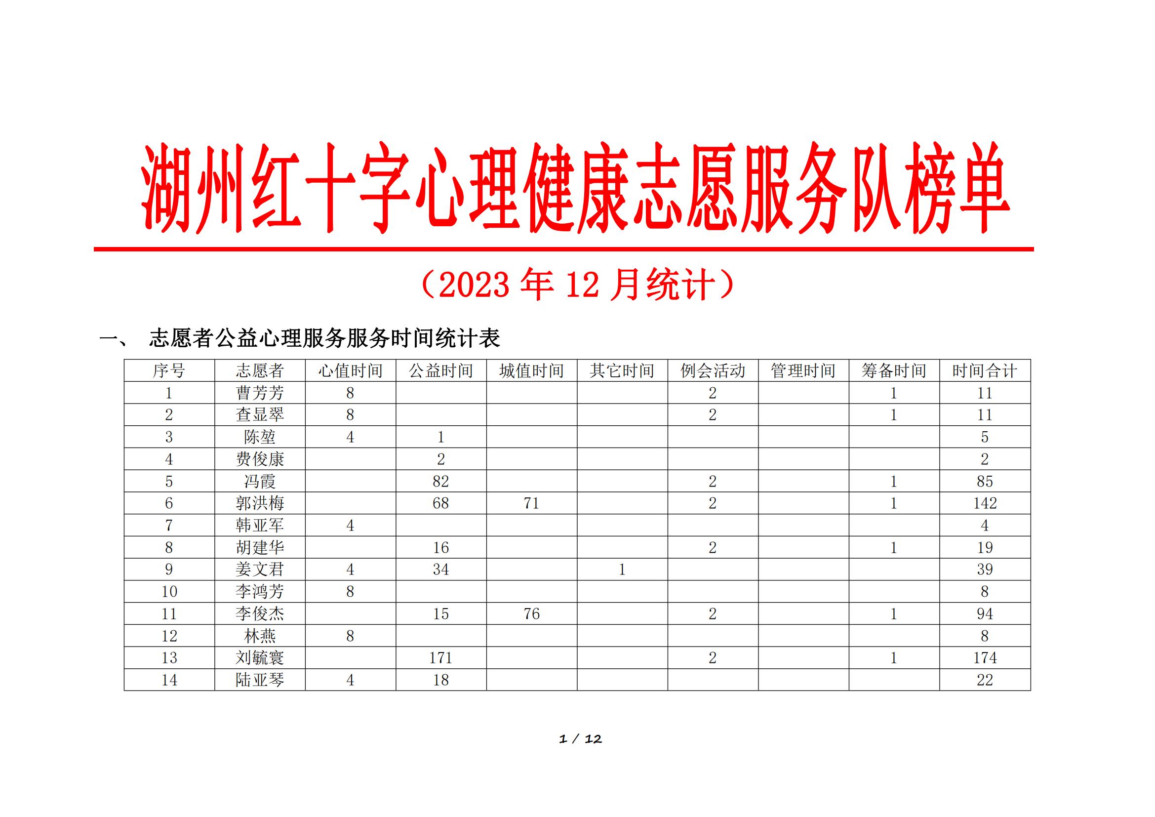 2023年12月湖州红十字心理健康志愿服务队榜单