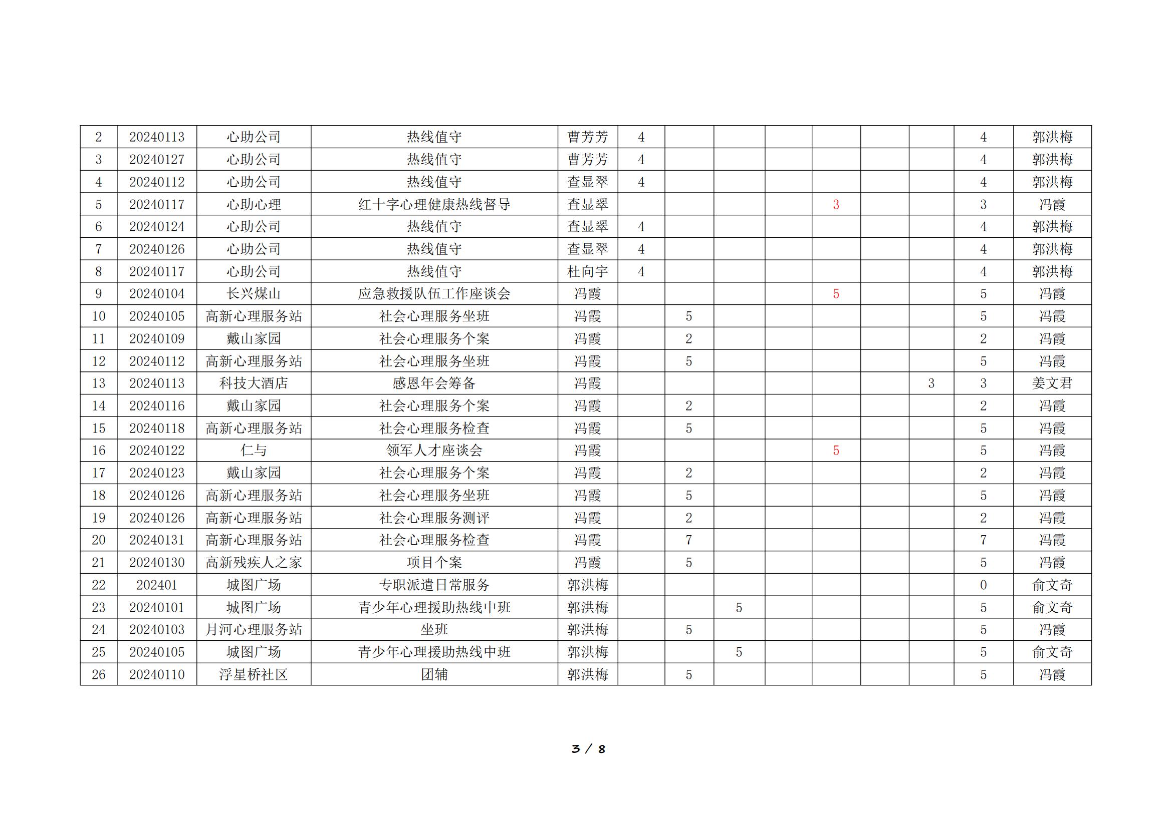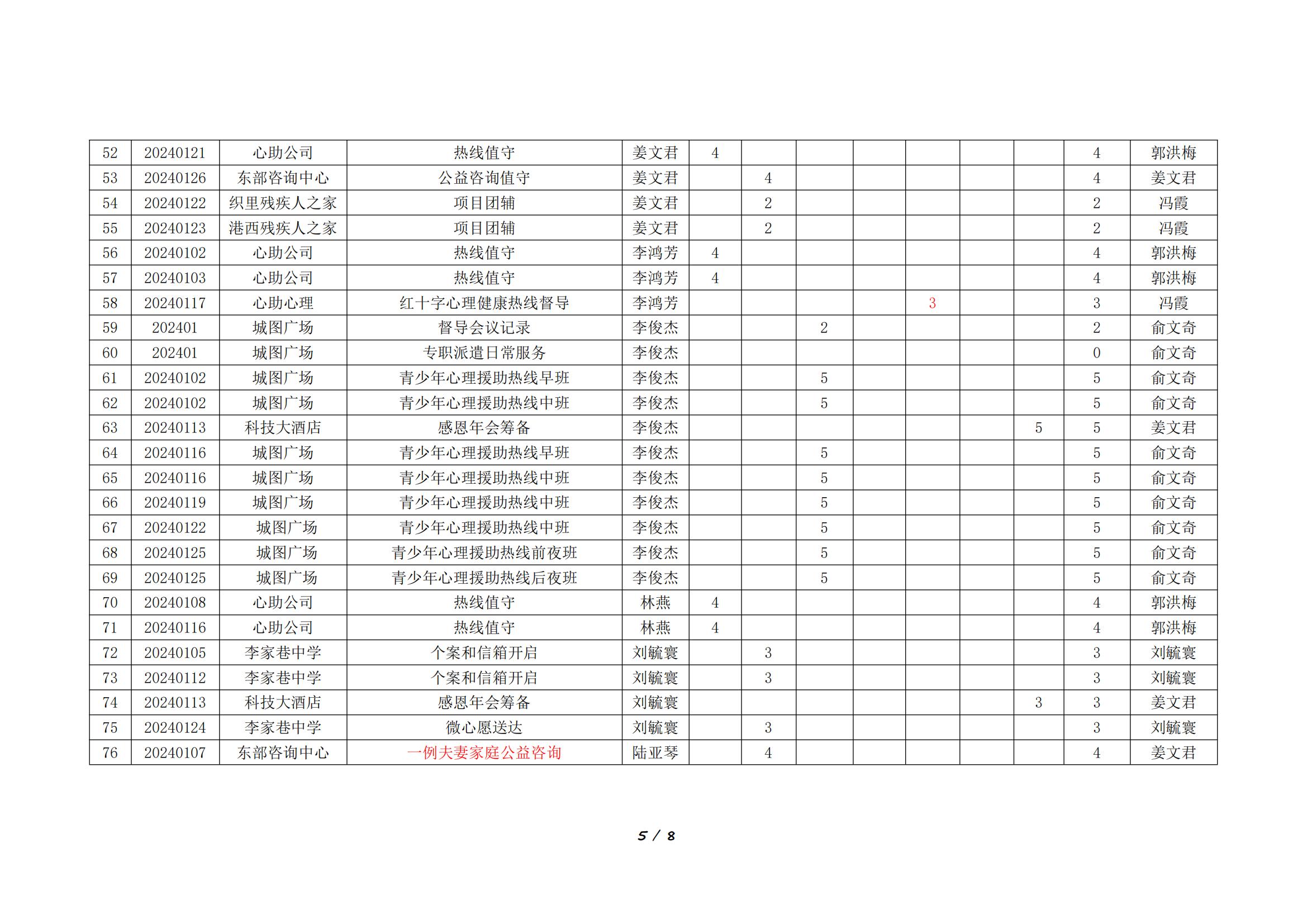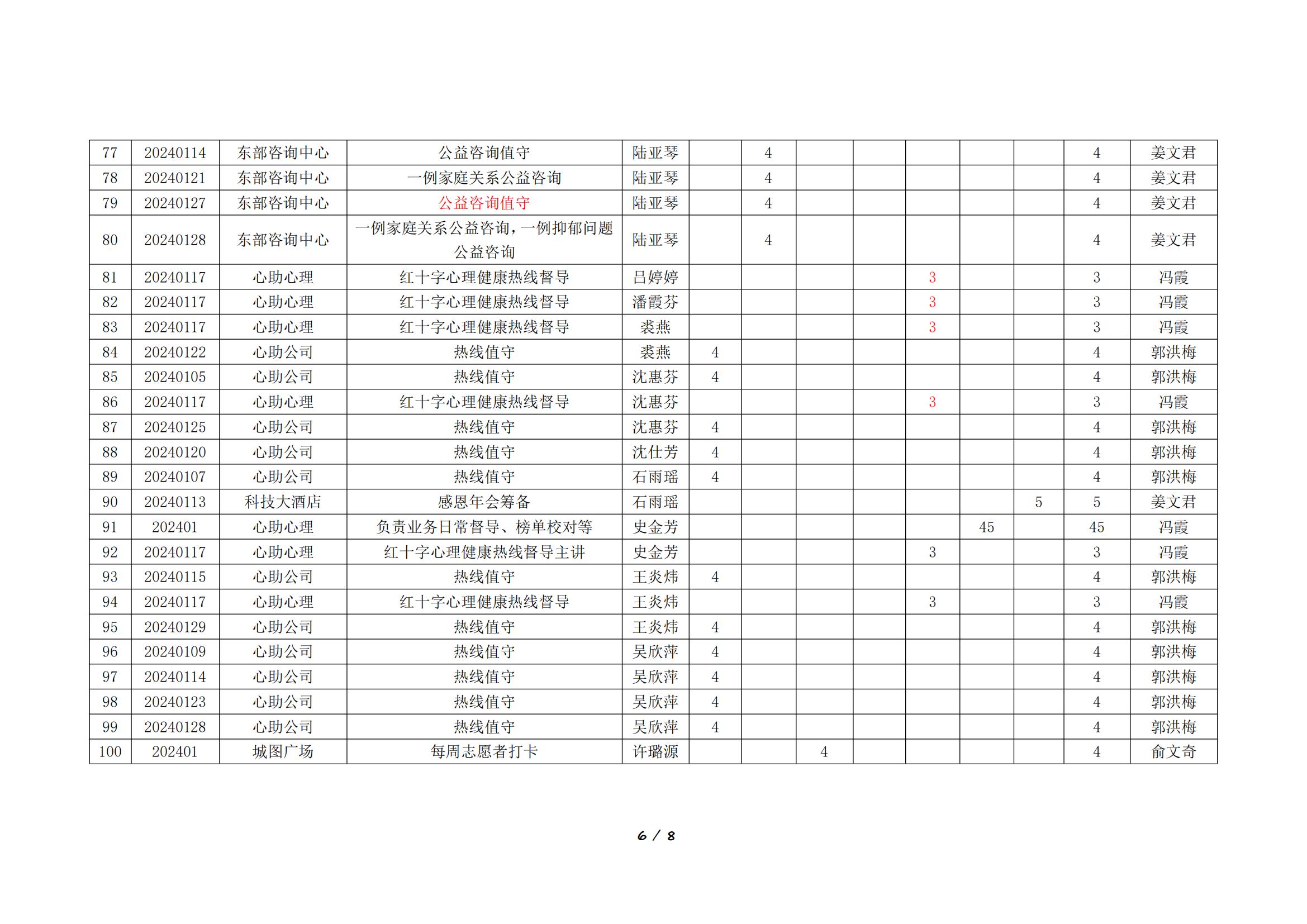 2024年1月湖州红十字心理健康志愿服务队榜单