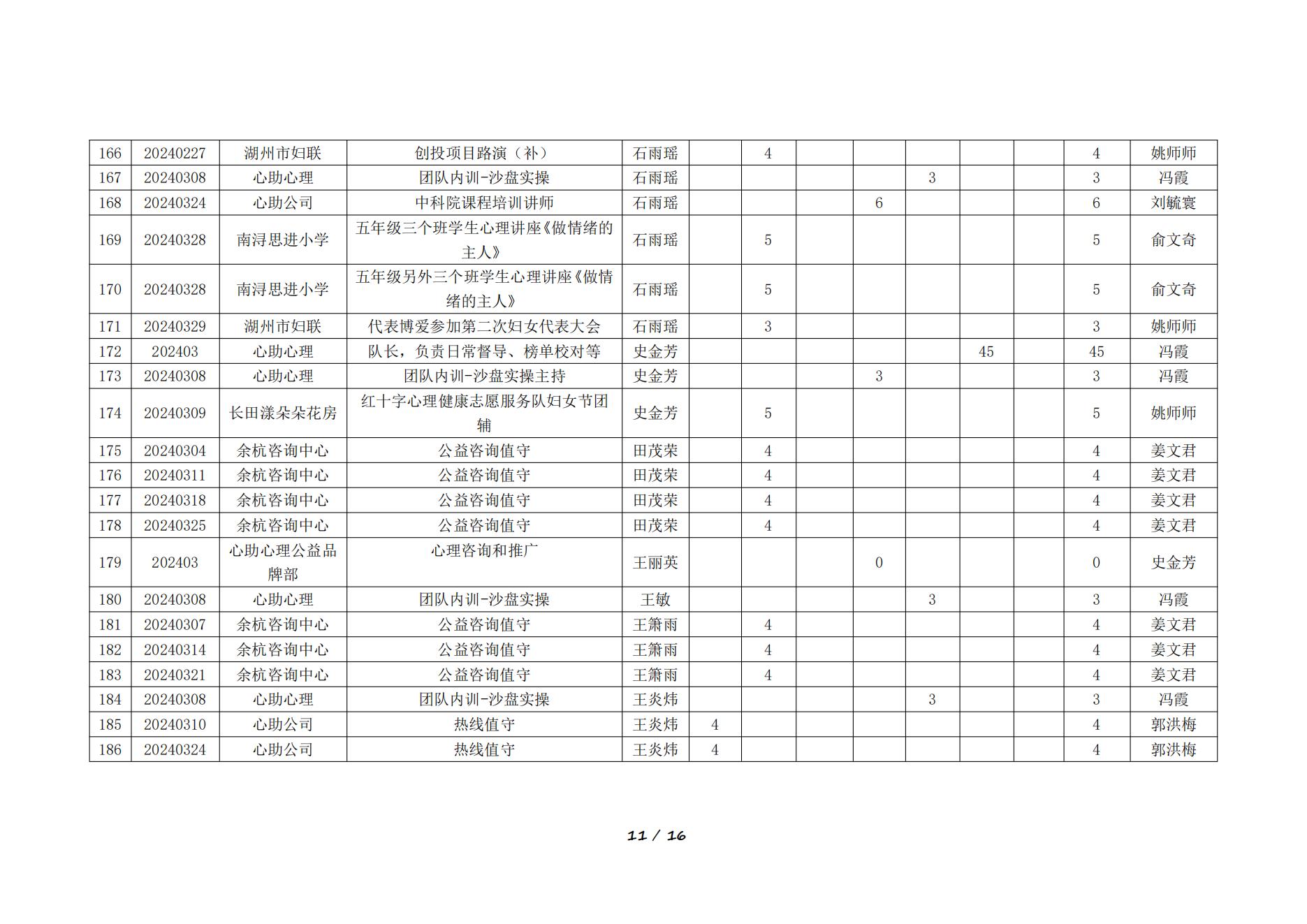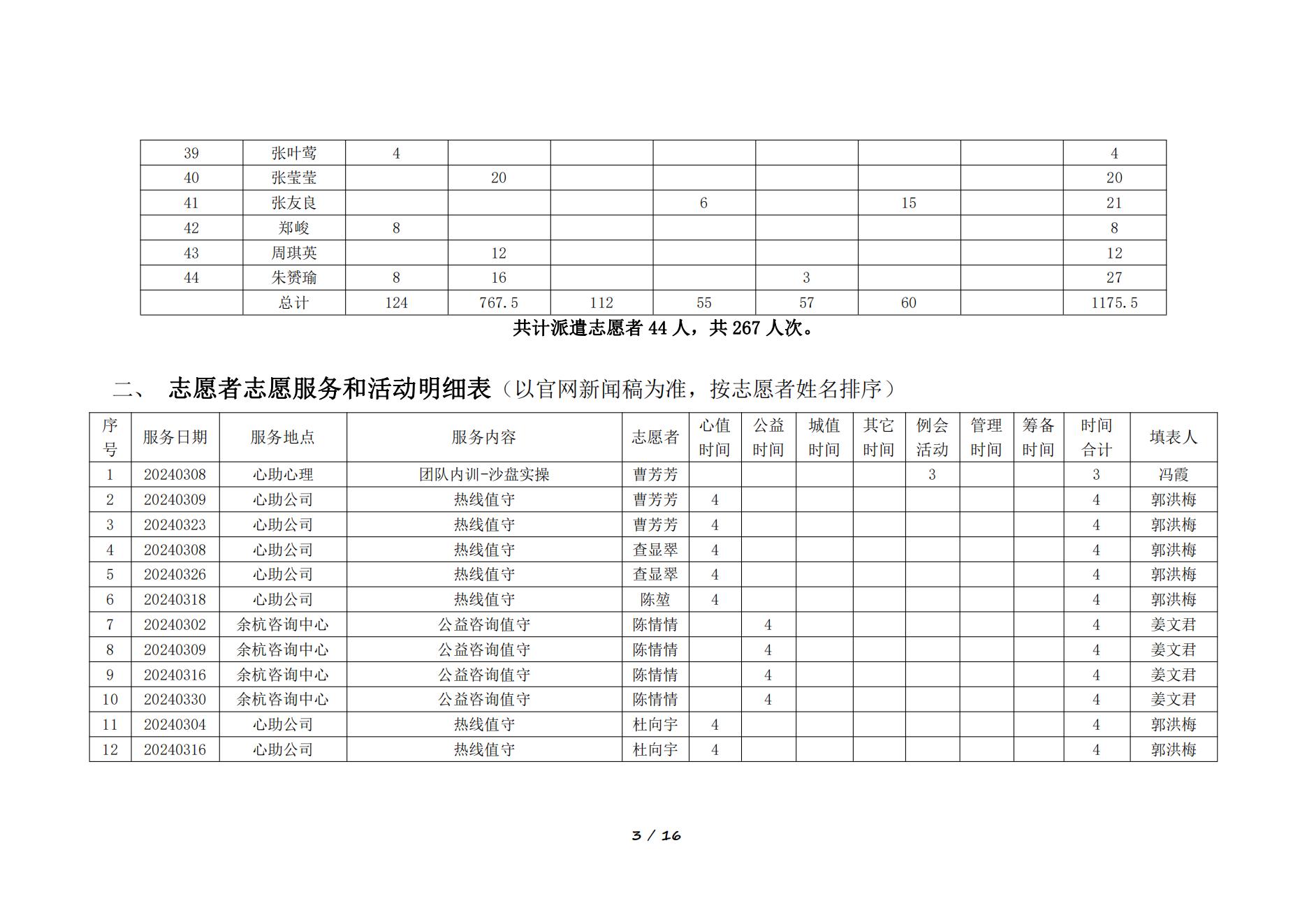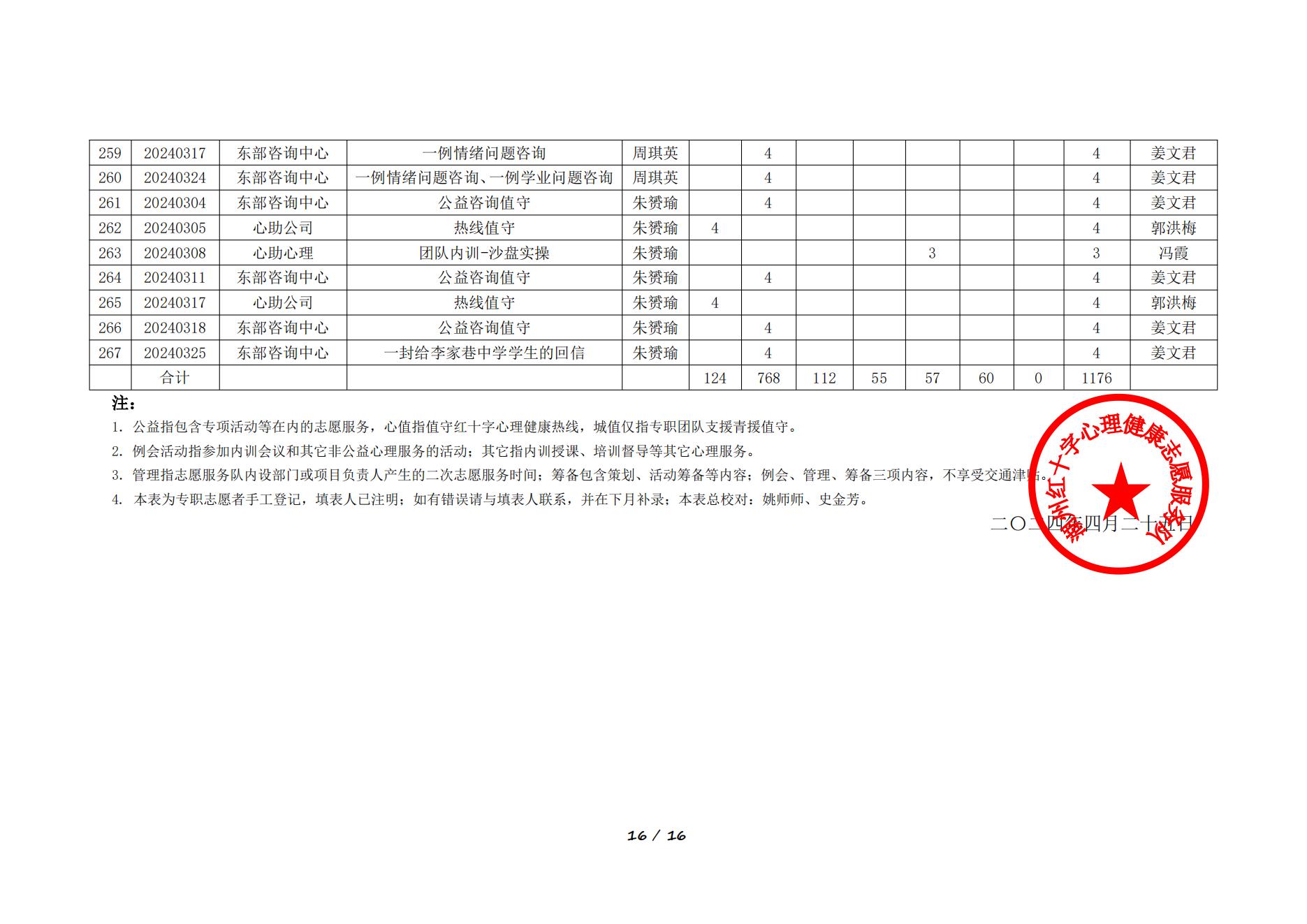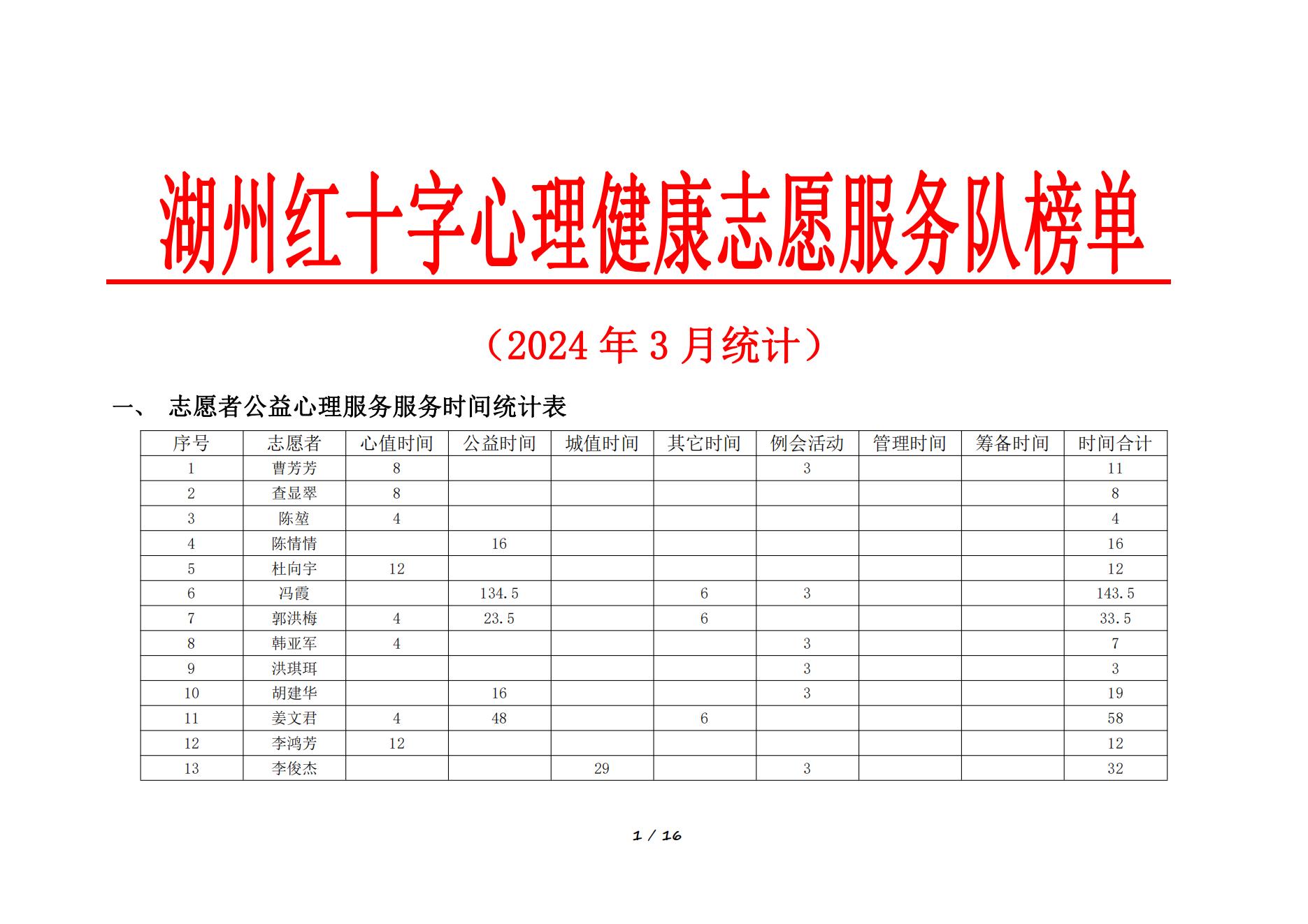 2024年3月湖州红十字心理健康志愿服务队榜单
