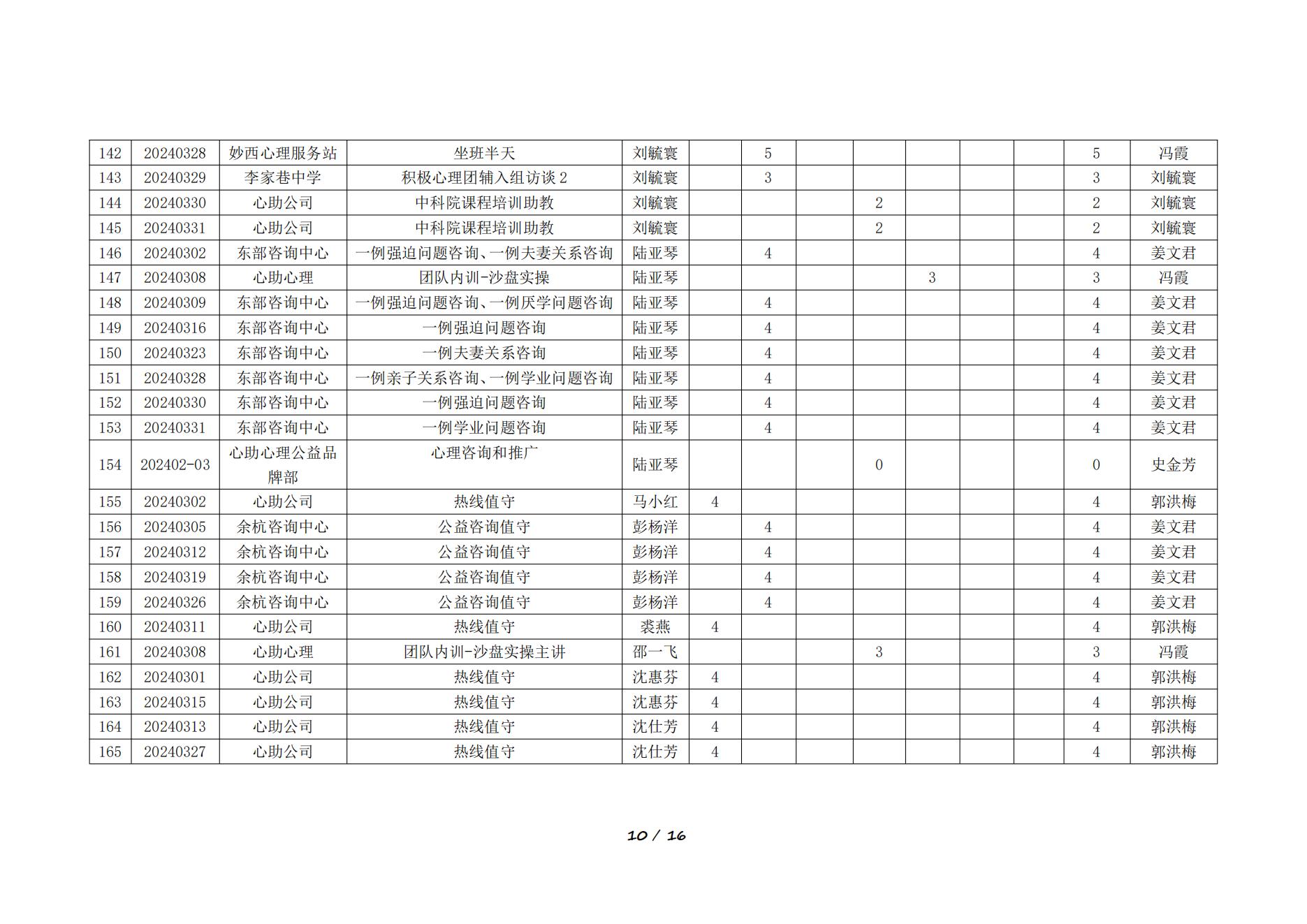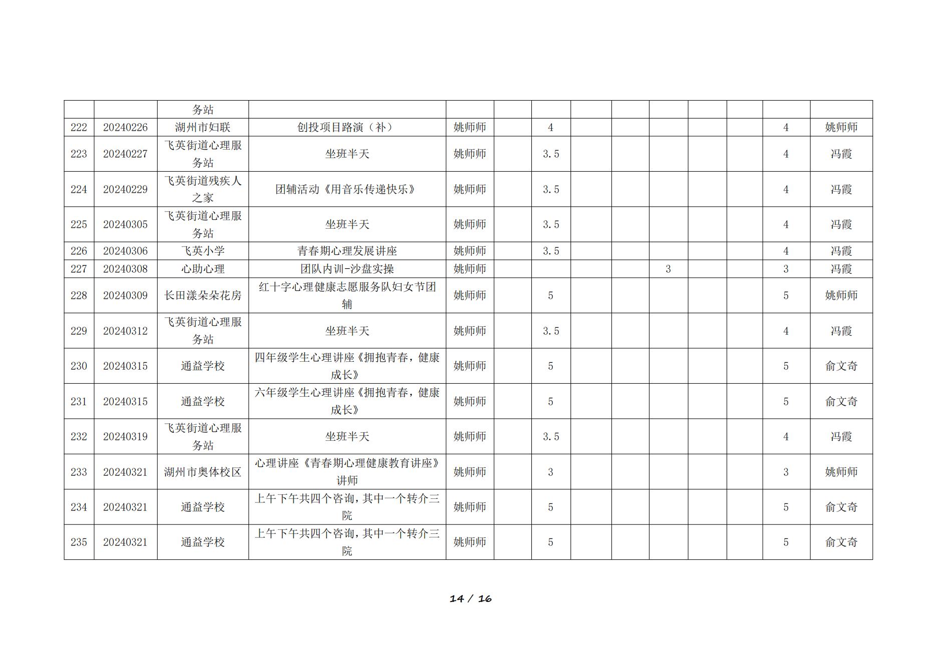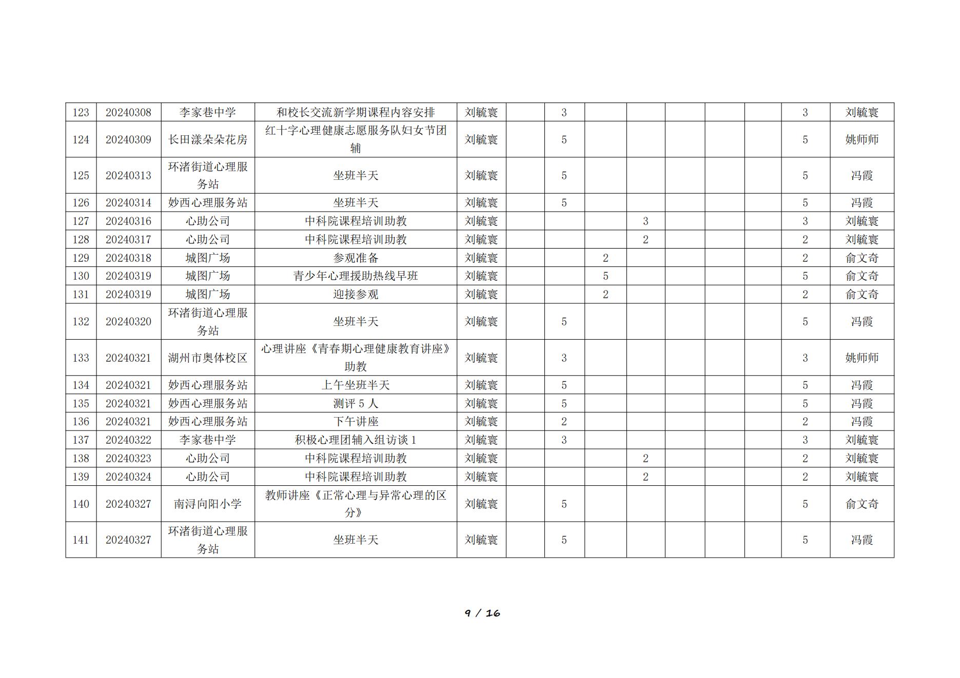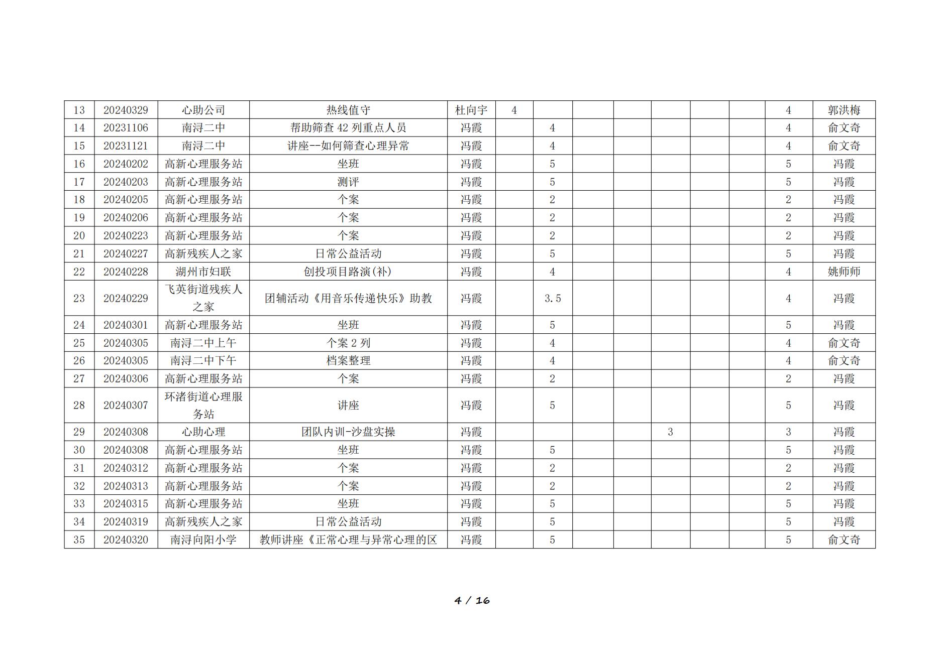 2024年3月湖州红十字心理健康志愿服务队榜单