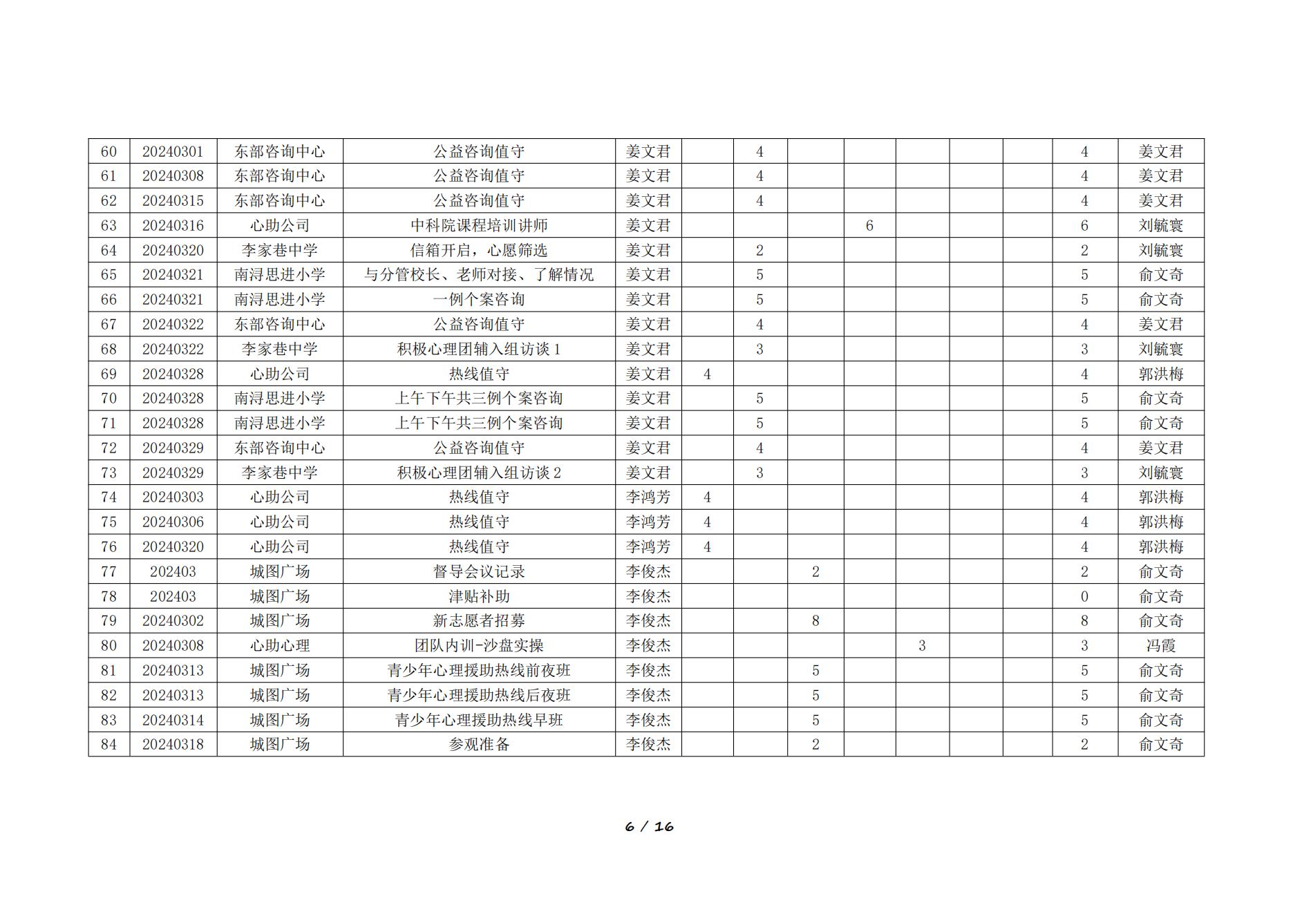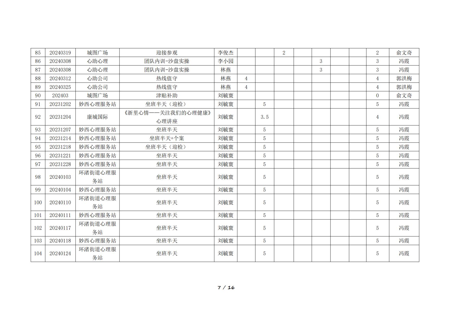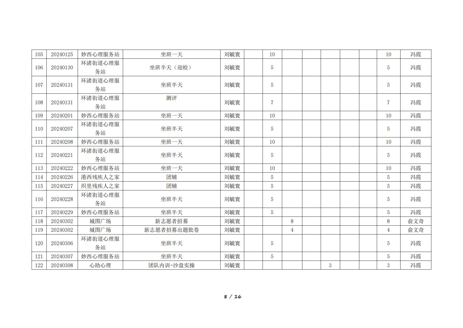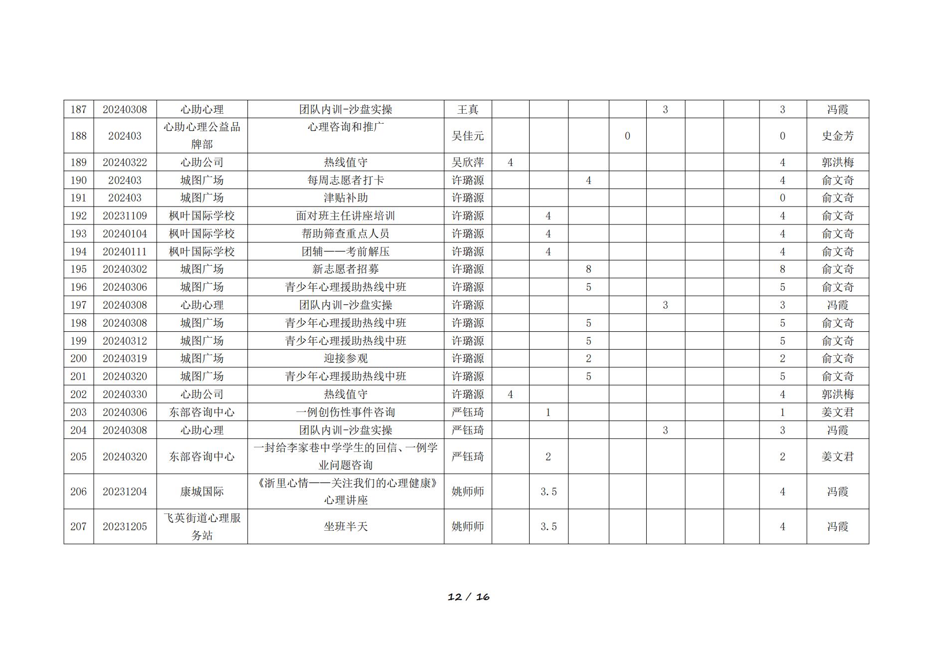 2024年3月湖州红十字心理健康志愿服务队榜单