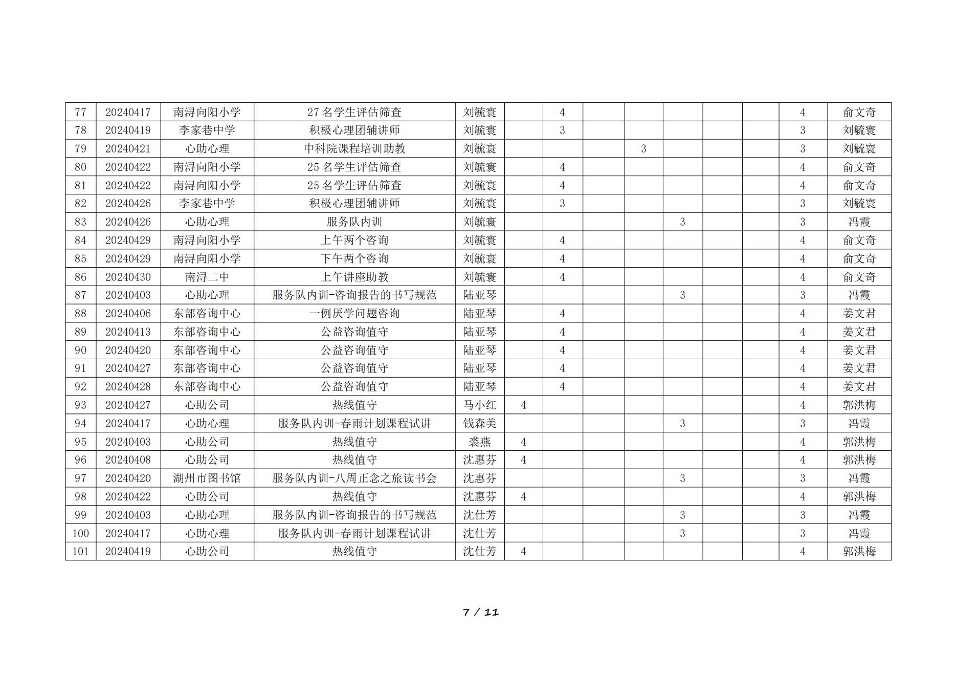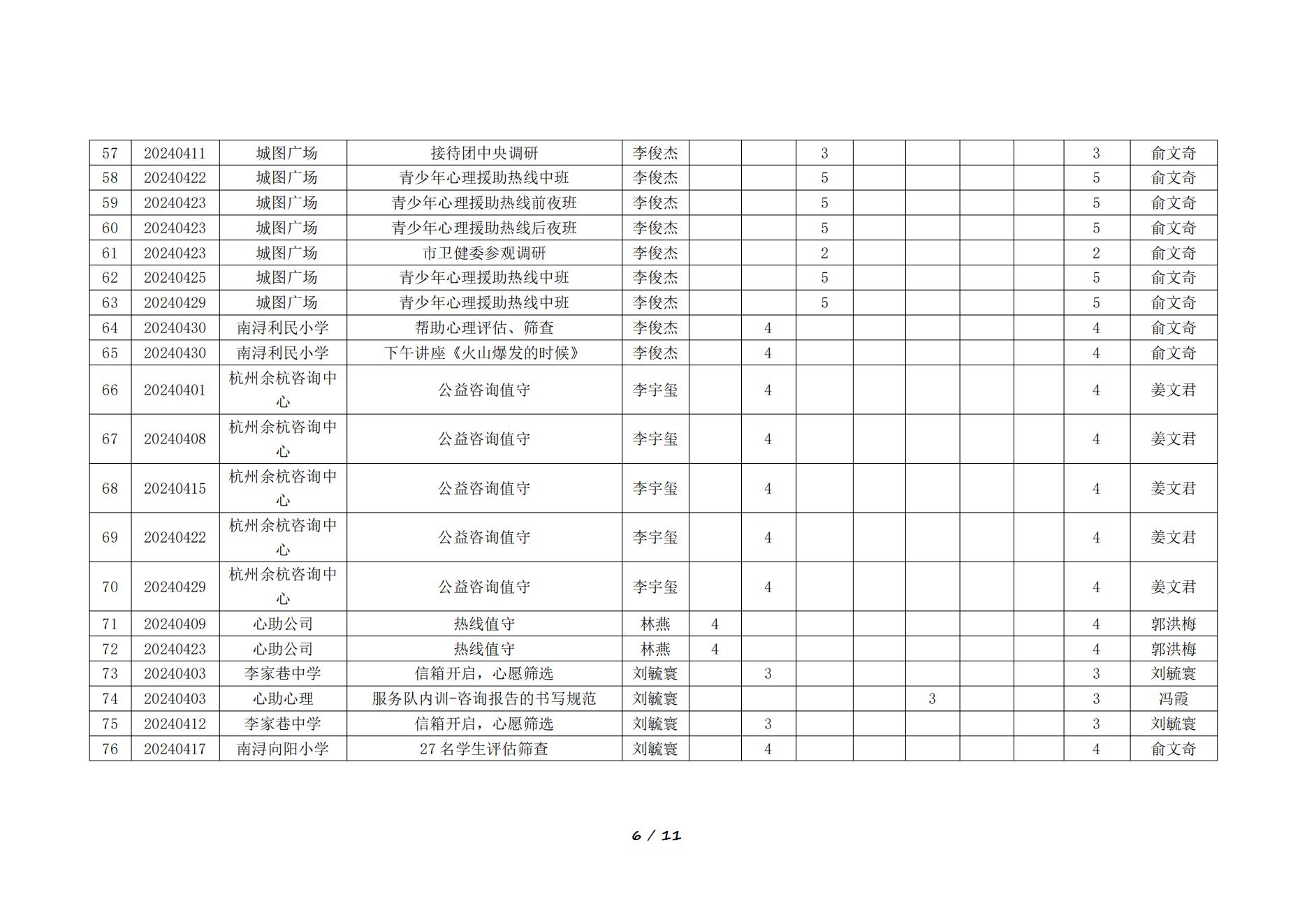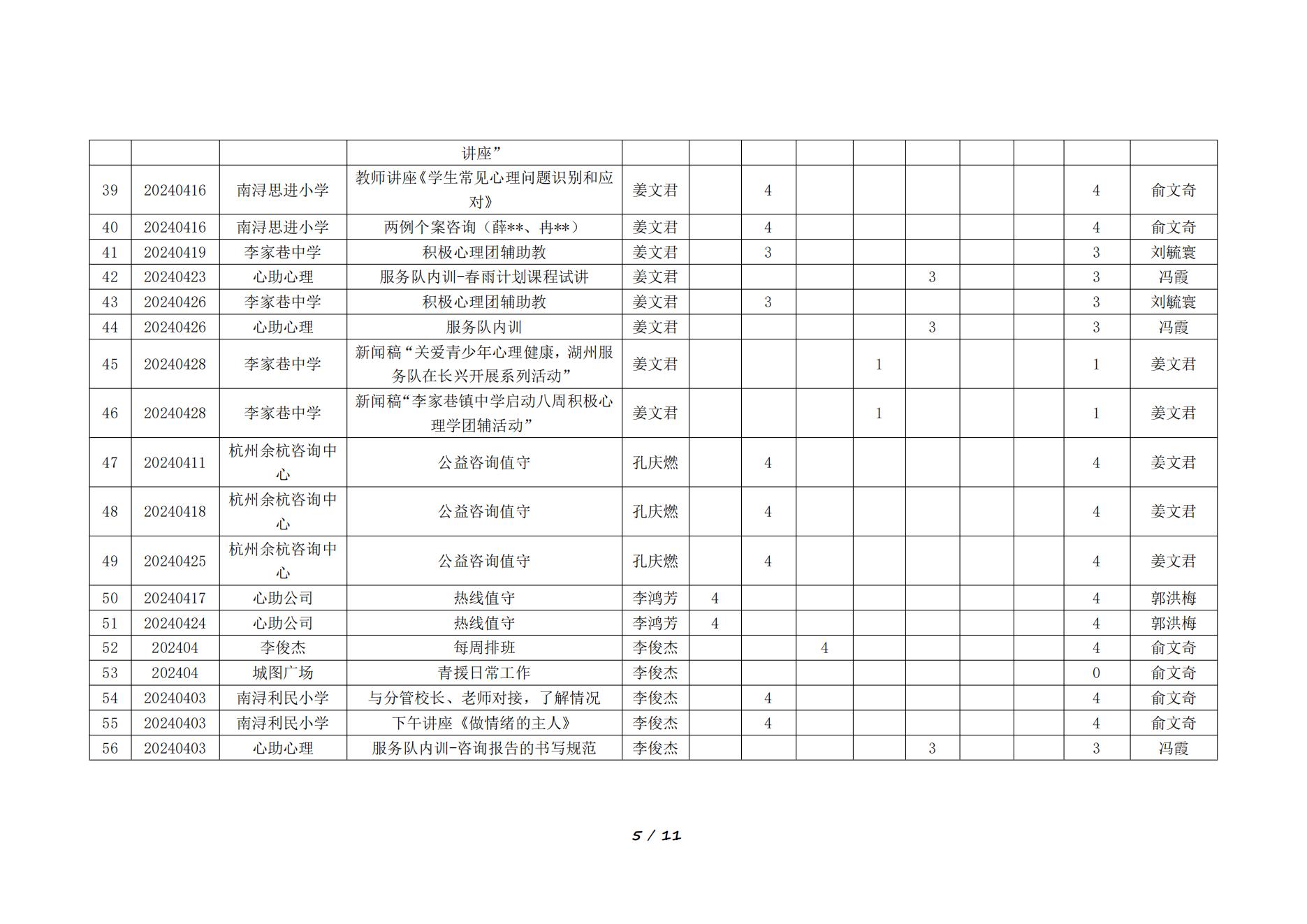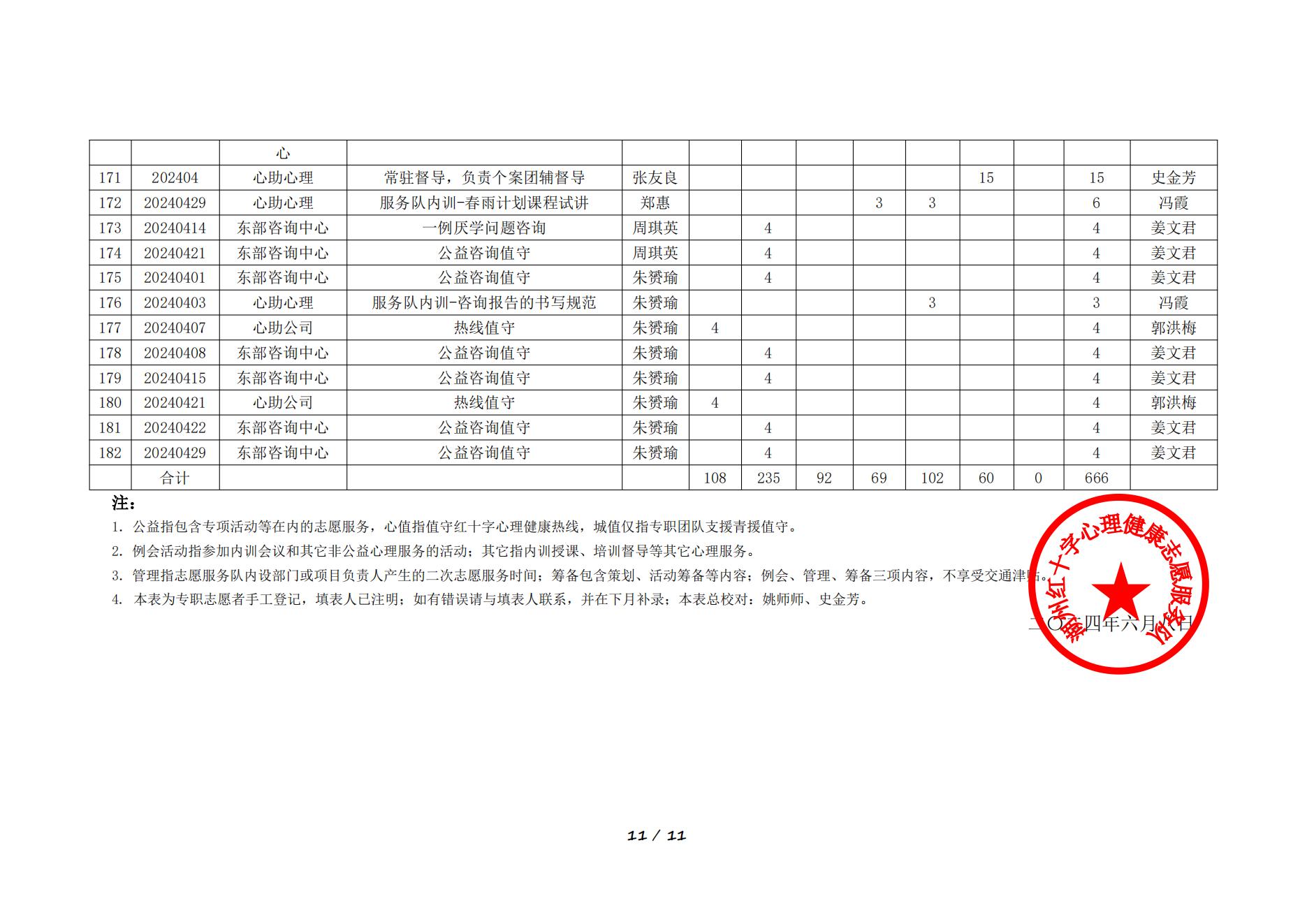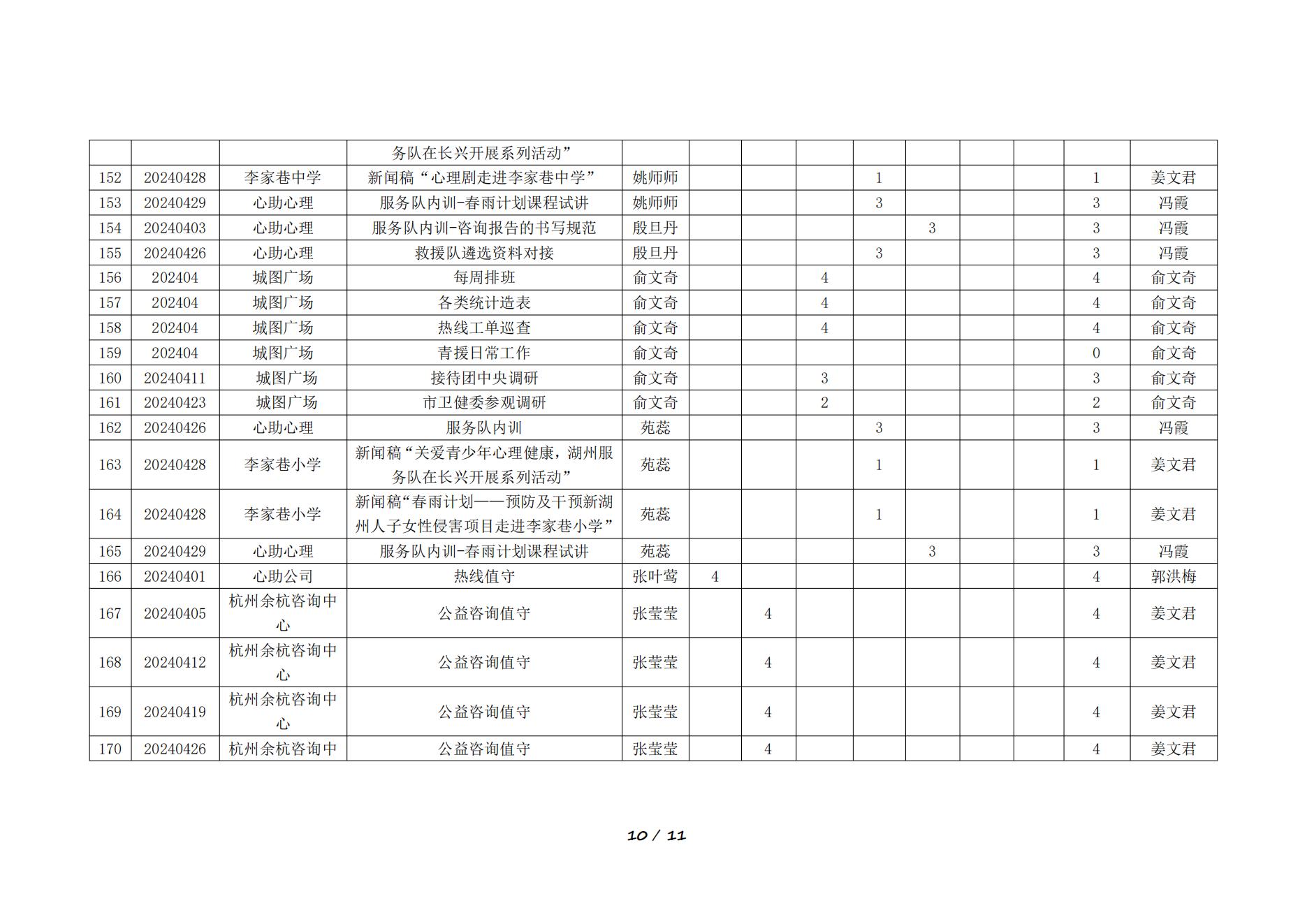 2024年4月湖州红十字心理健康志愿服务队榜单