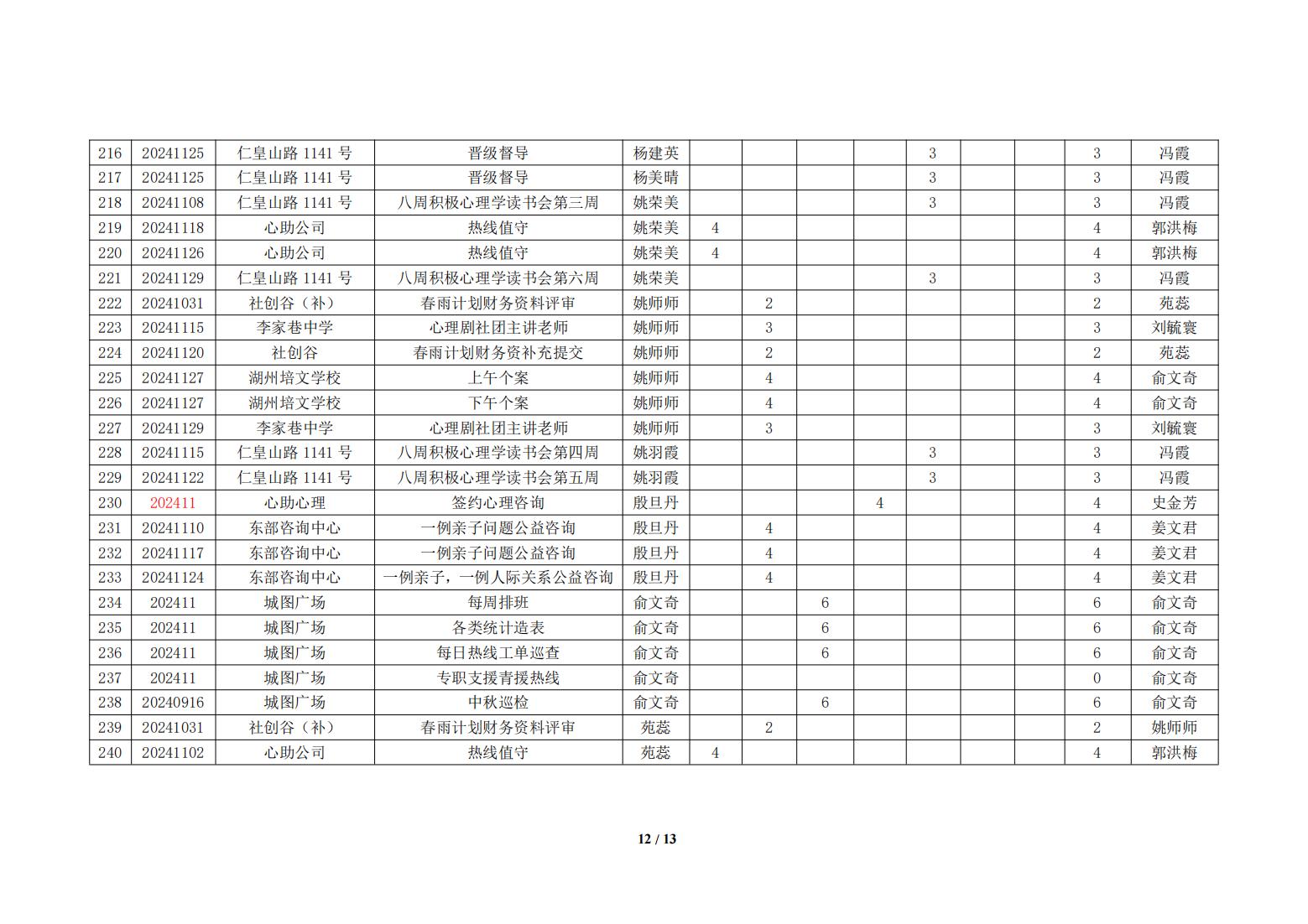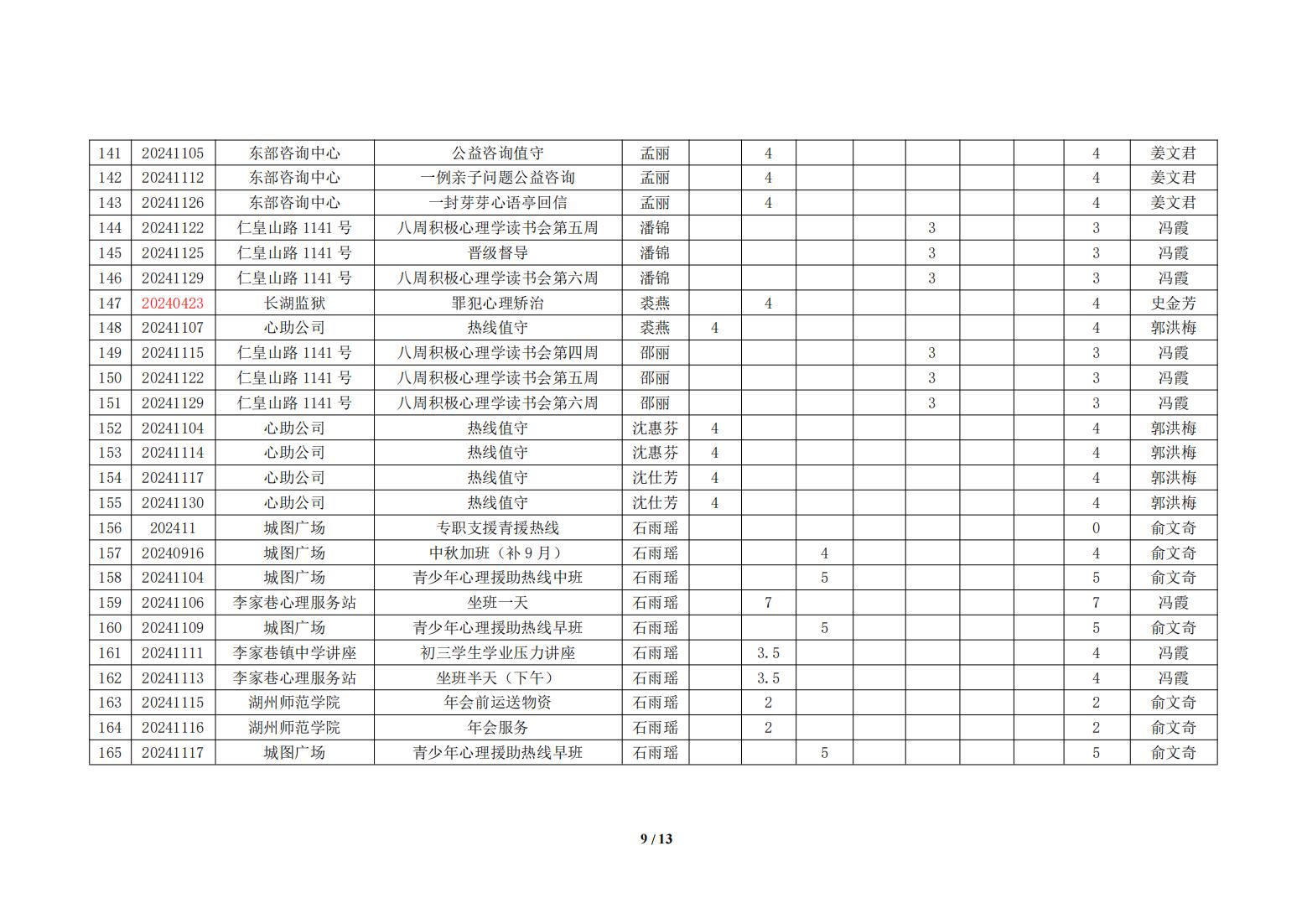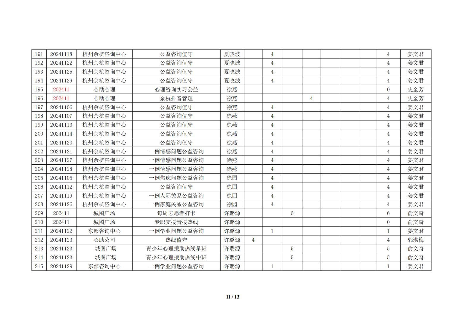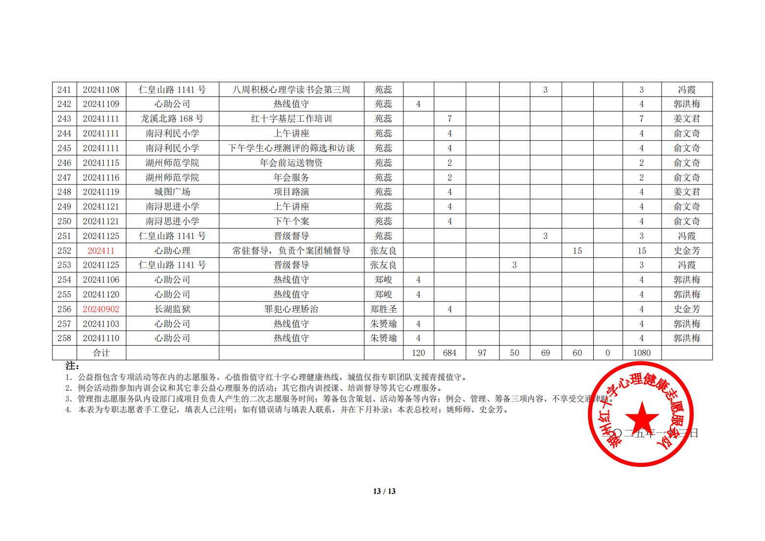 2024年11月湖州红十字心理健康志愿服务队榜单