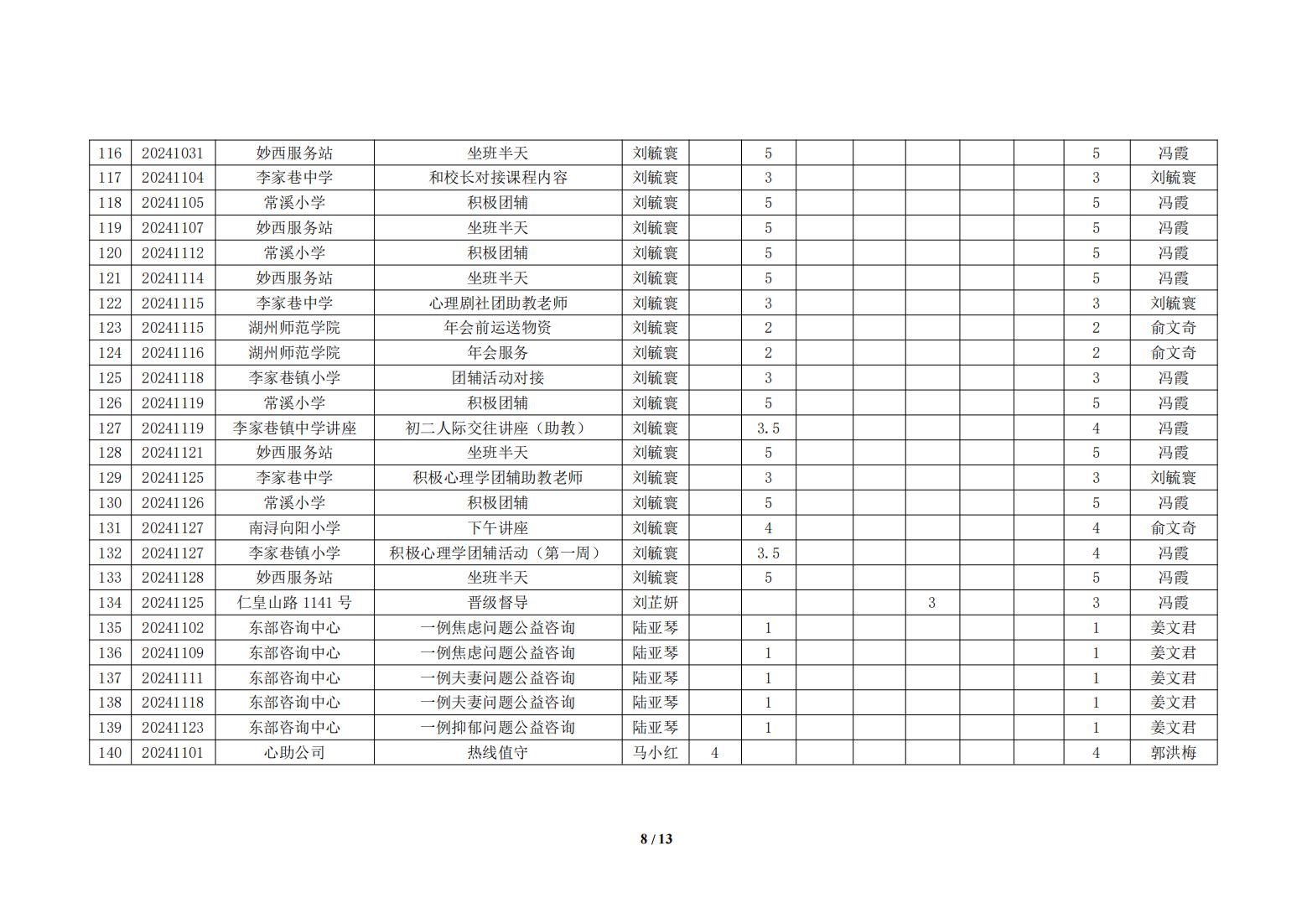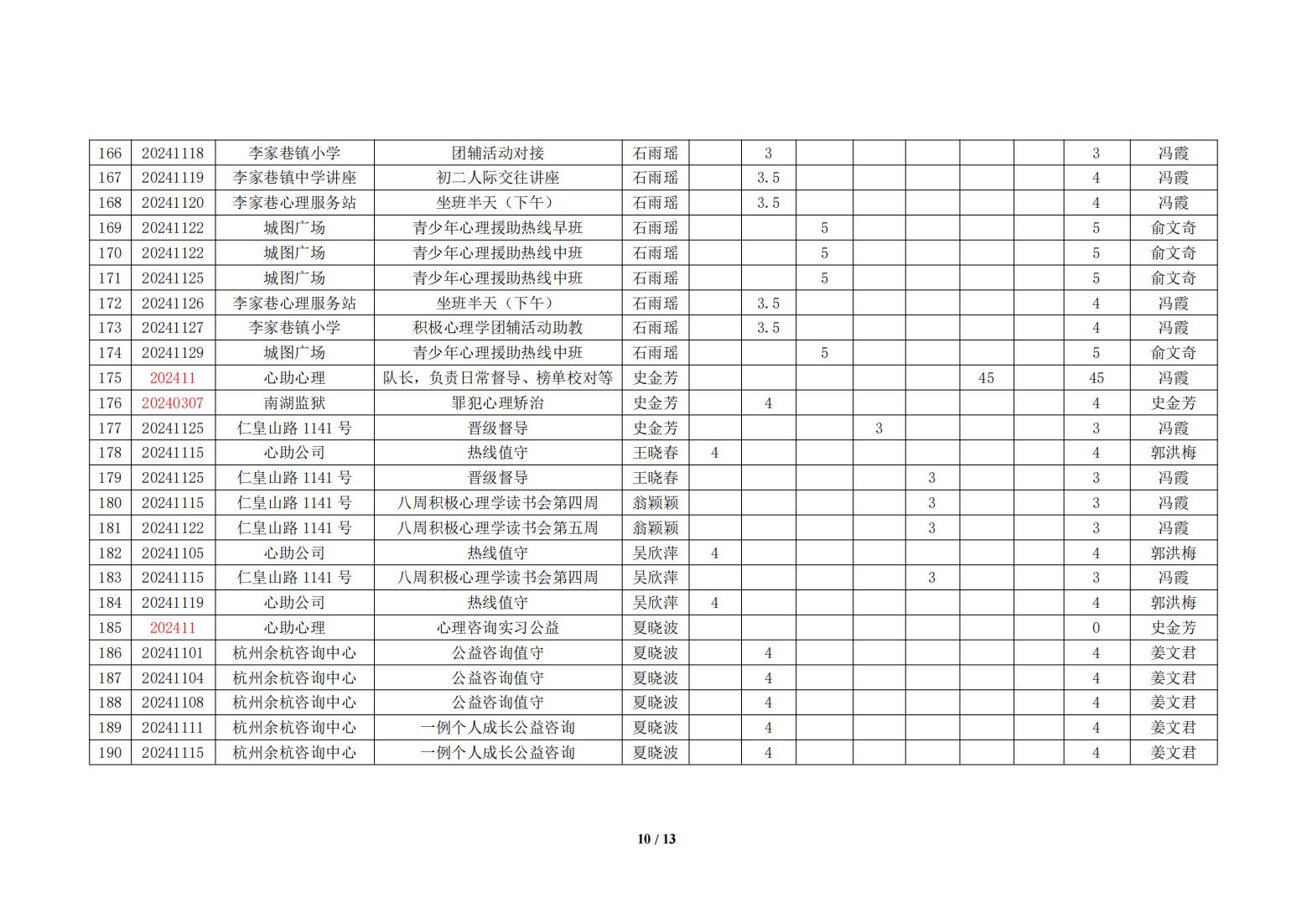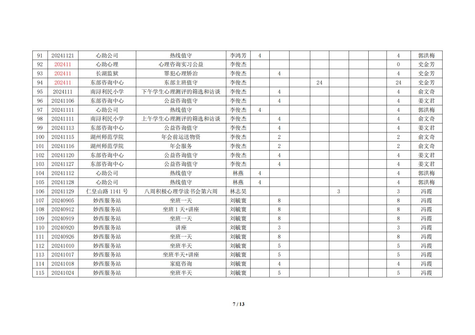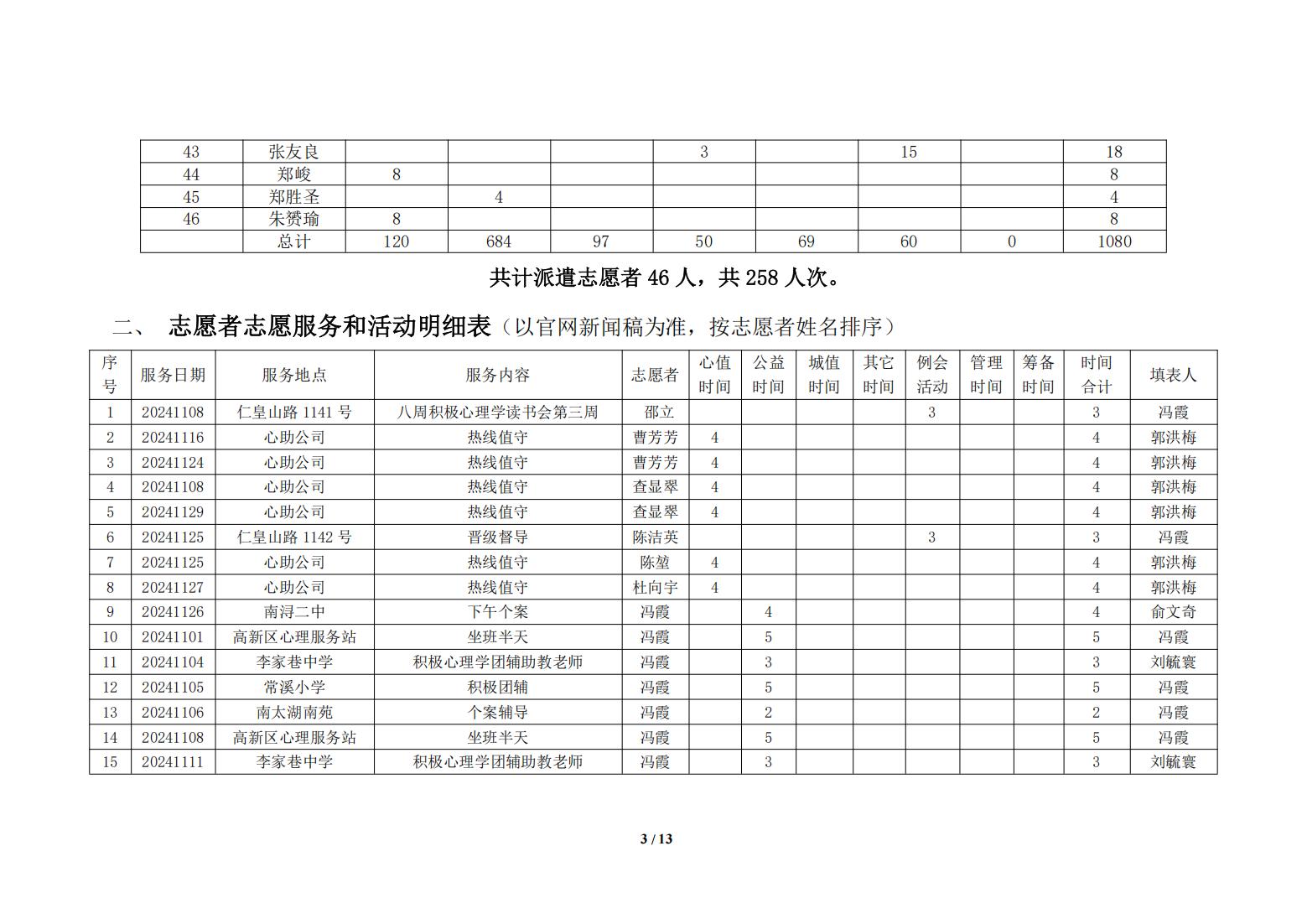 2024年11月湖州红十字心理健康志愿服务队榜单