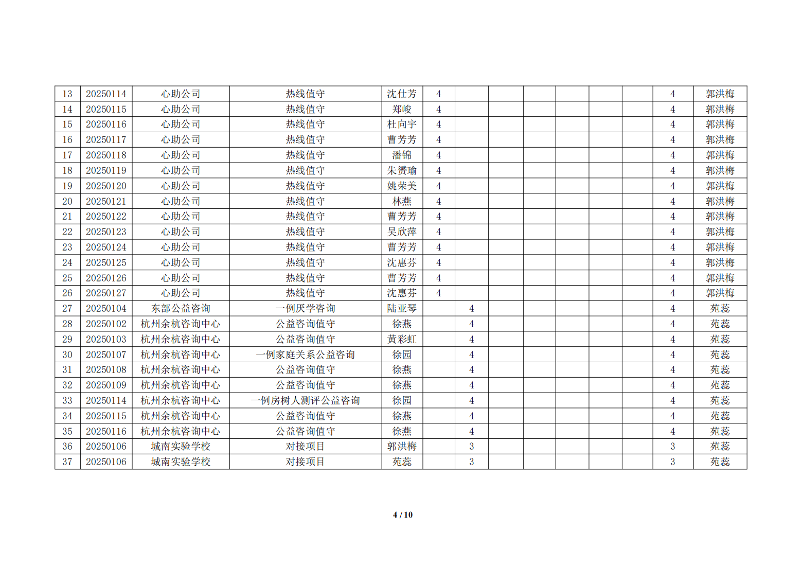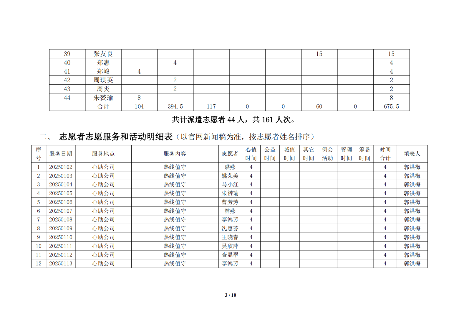 湖州红十字心理健康志愿服务队2025年1月份榜单