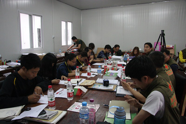 第二天一大早,队员们便开始走村串户,过塌方路段,趟汹涌山洪,徒步到社区、村组、灾民安置点等处开展调查工作,了解当地的总体受灾情况和学校及师生分布情况等第一手资料,制定具体的工作方案,然后有针对性地对学校师生进行心理干预和辅导,帮助他们尽快走出地震的阴影。