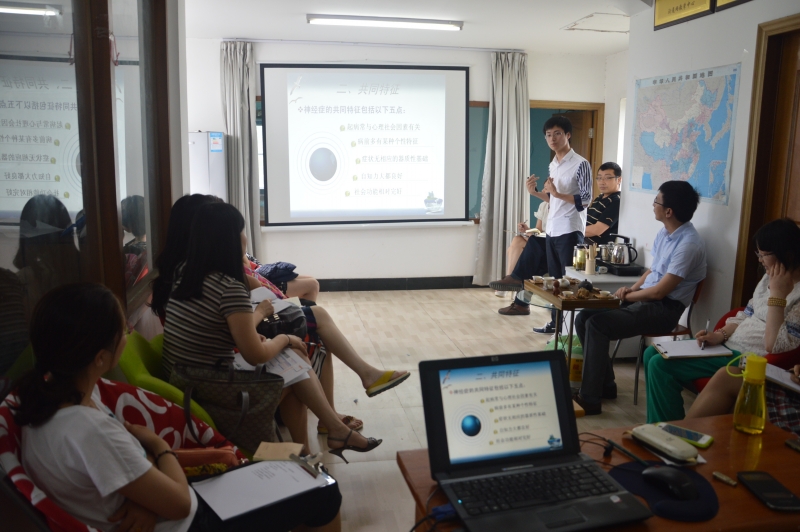 7月13号,浙江省(湖州市)红十字心理应急救援队心理热线平台在湖州心助心理咨询公司举办了2014年6月月例会暨神经症知识讲座。会议由热线负责人史金芳主持,心理救援队成员、湖州第三人民医院王兴医生应邀主讲,热线志愿服务队18名心理咨询师参加了会议和培训。