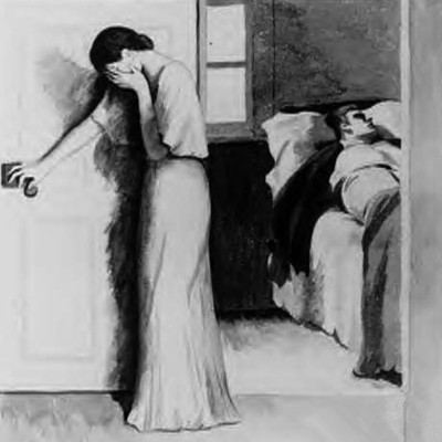 C、关心--丈夫病重躺在床上,可能即将死去.