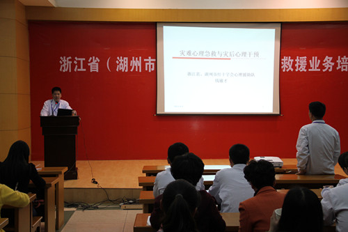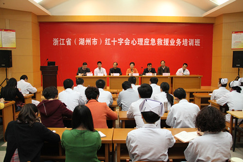 4月9日-10日,浙江省(湖州市)红十字会心理应急救援队培训会在湖召开,38位专业心理专家和7位社会心理工作志愿者接受了红十字运动相关知识介绍,以及心理干预、现场应急救护等方面的专业培训。