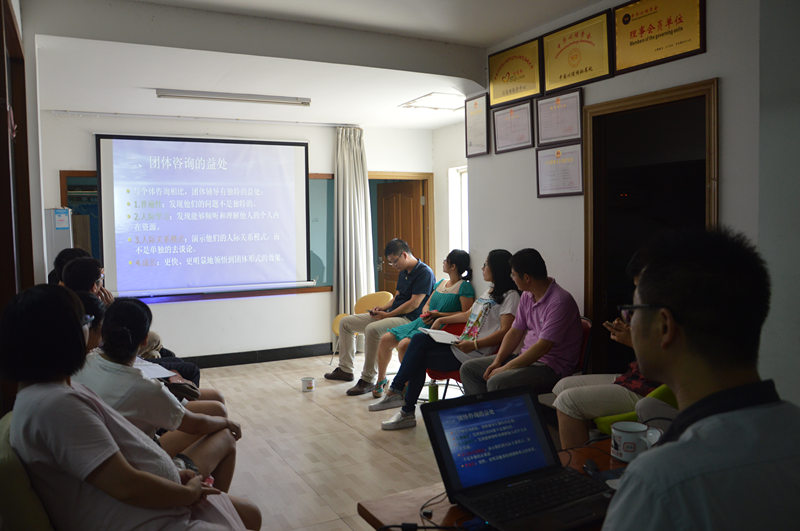 2015年8月2日湖州红十字心理健康志愿服务队在湖州心助心理咨询服务有限公司开展非结构式团体心理辅导活动,由志愿者朱平良老师授课,活动旨在与志愿者成员分享邵教授曾主持的非结构式团体心理辅导工作坊内容。