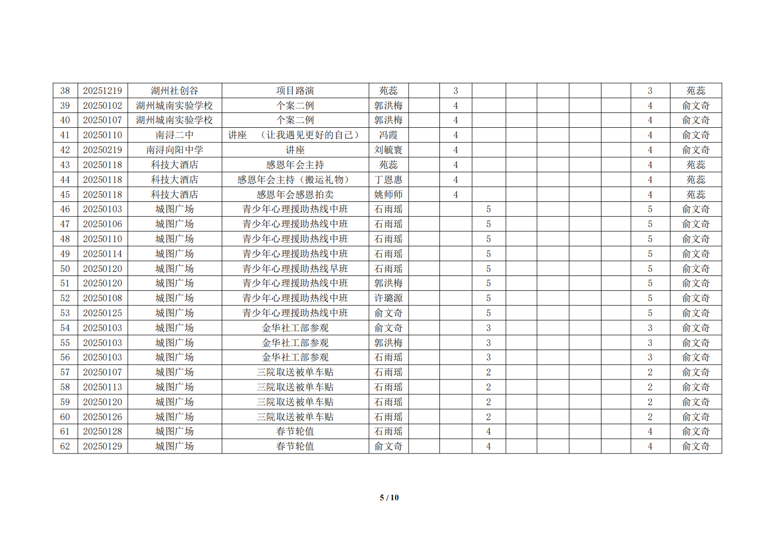 湖州红十字心理健康志愿服务队2025年1月份榜单