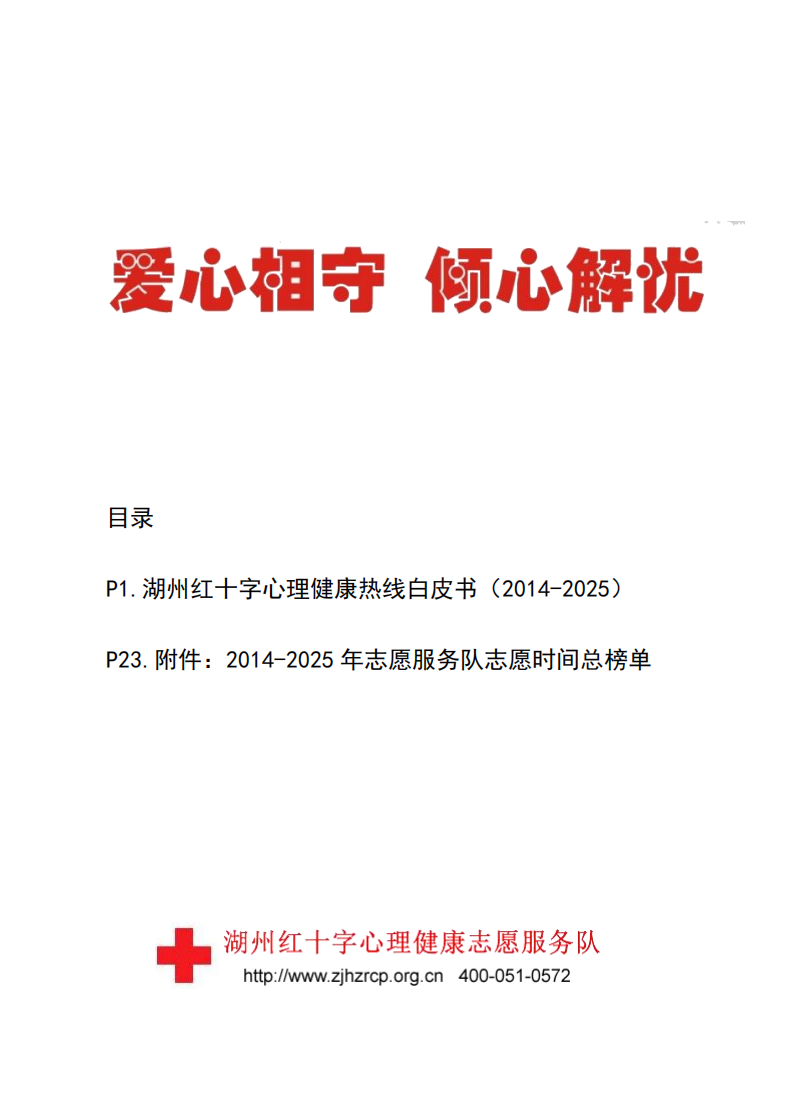 湖州红十字心理健康热线白皮…