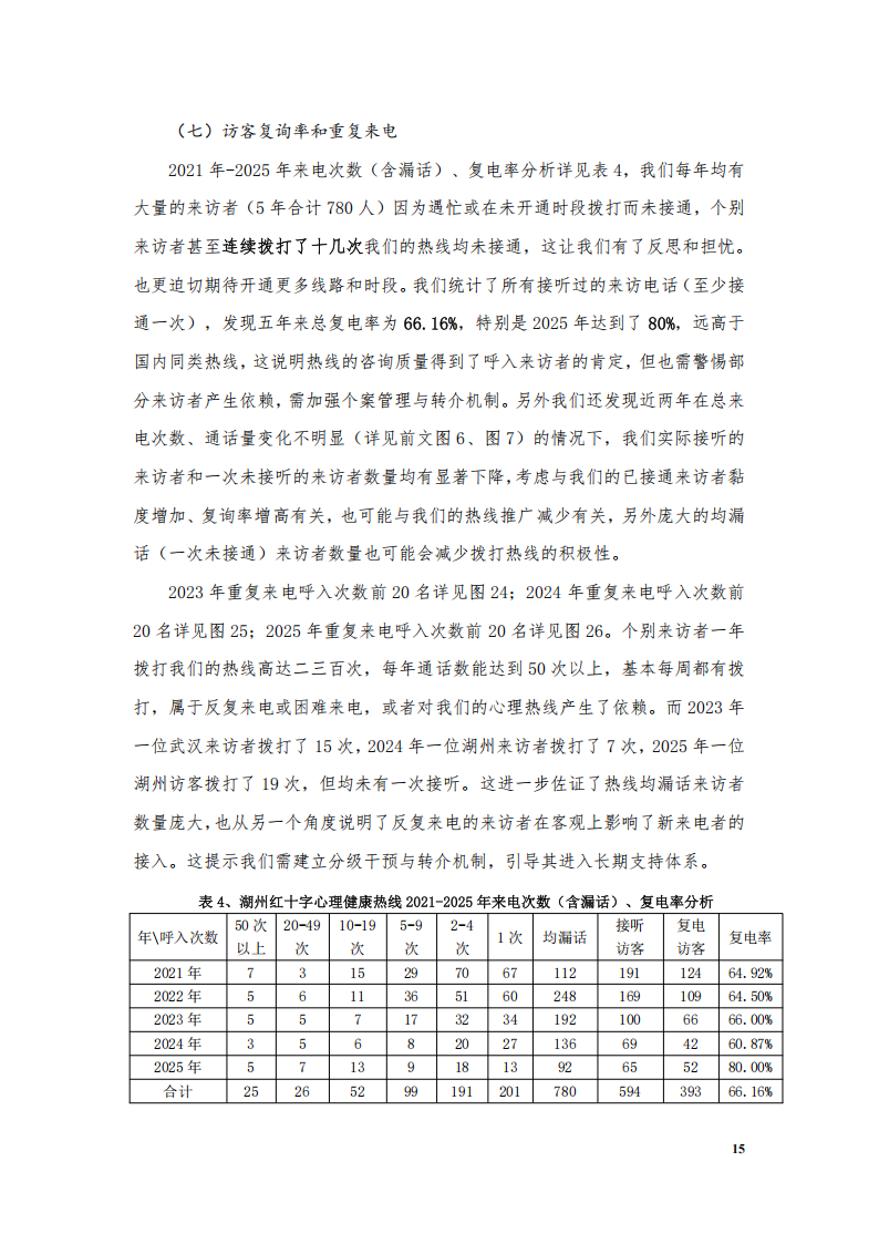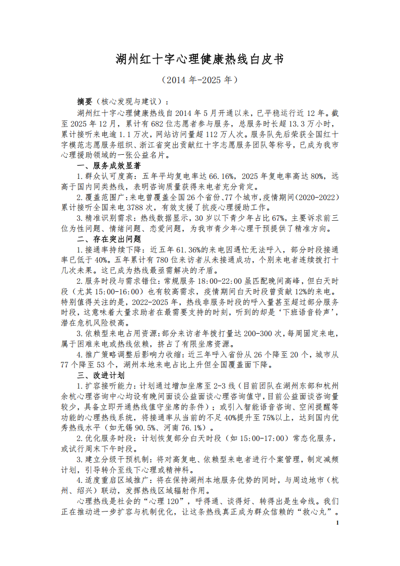 湖州红十字心理健康热线白皮书(2014-2025)