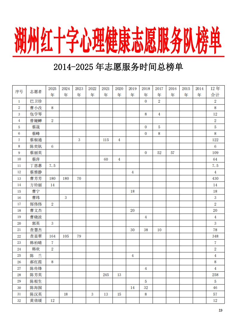2014-2023十年志愿服务队志愿…